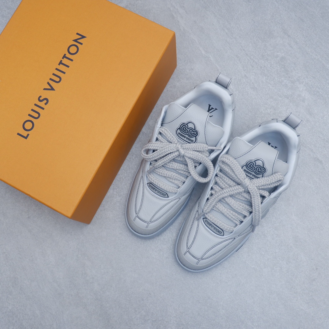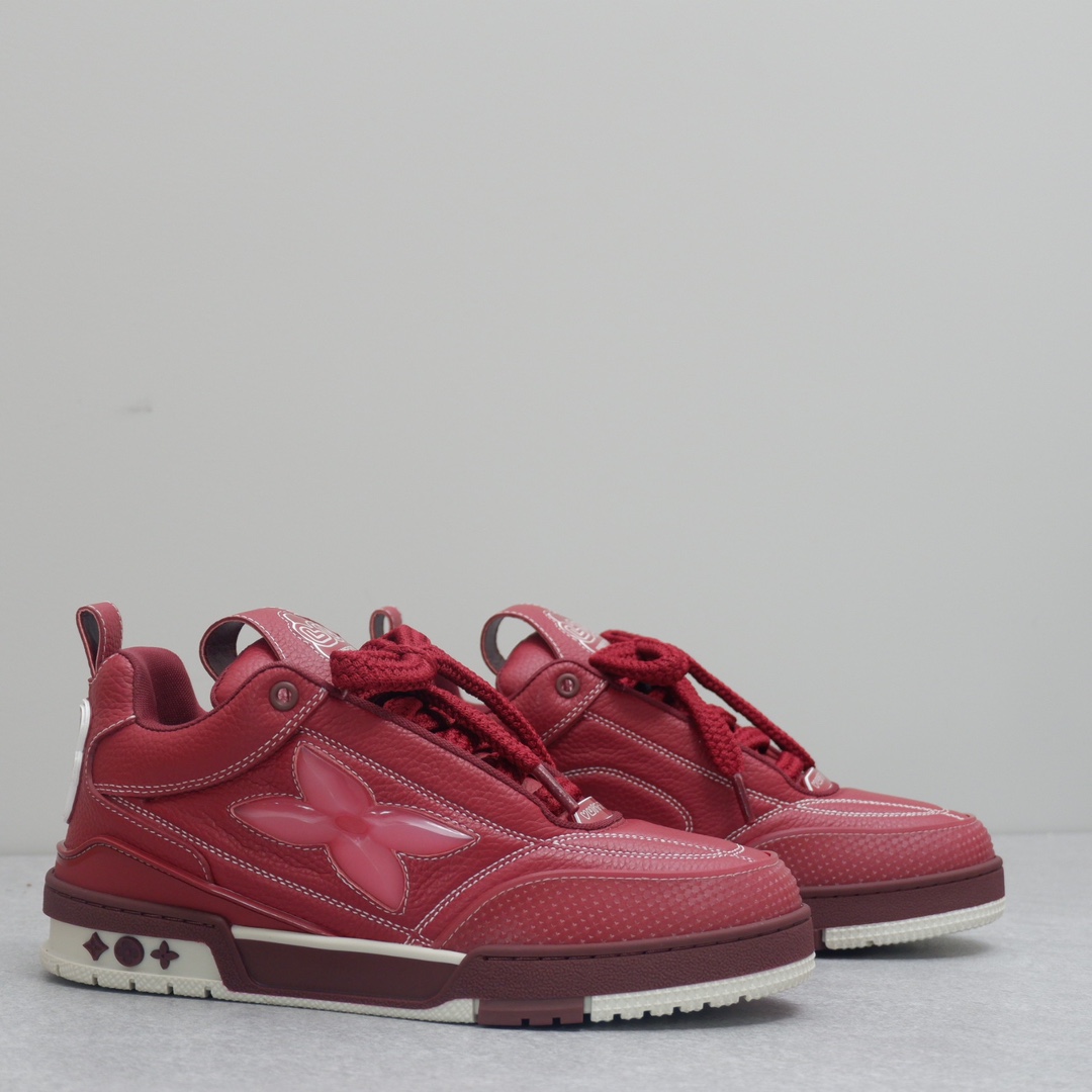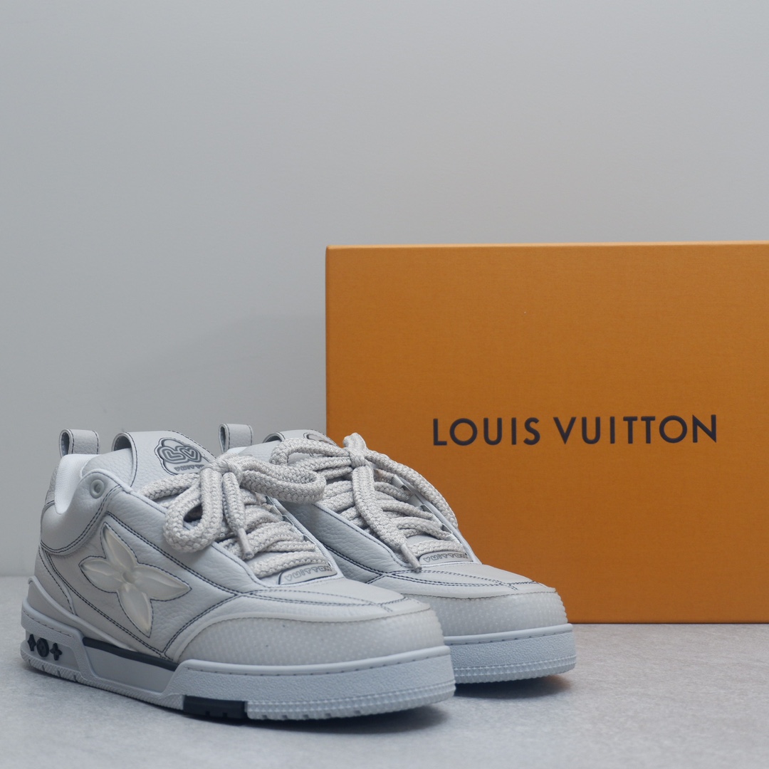 路易威* #系列运动鞋 全皮的表面比以前的第一代skate更细致,侧边四叶草的镶嵌也是别有用心,细节是感太强了,以粒面牛皮革焕新呈现。大号Monogram花卉绽放一侧,加垫鞋领和鞋舌援引滑板鞋设计