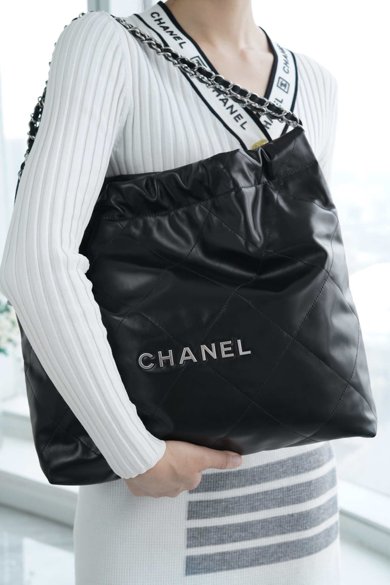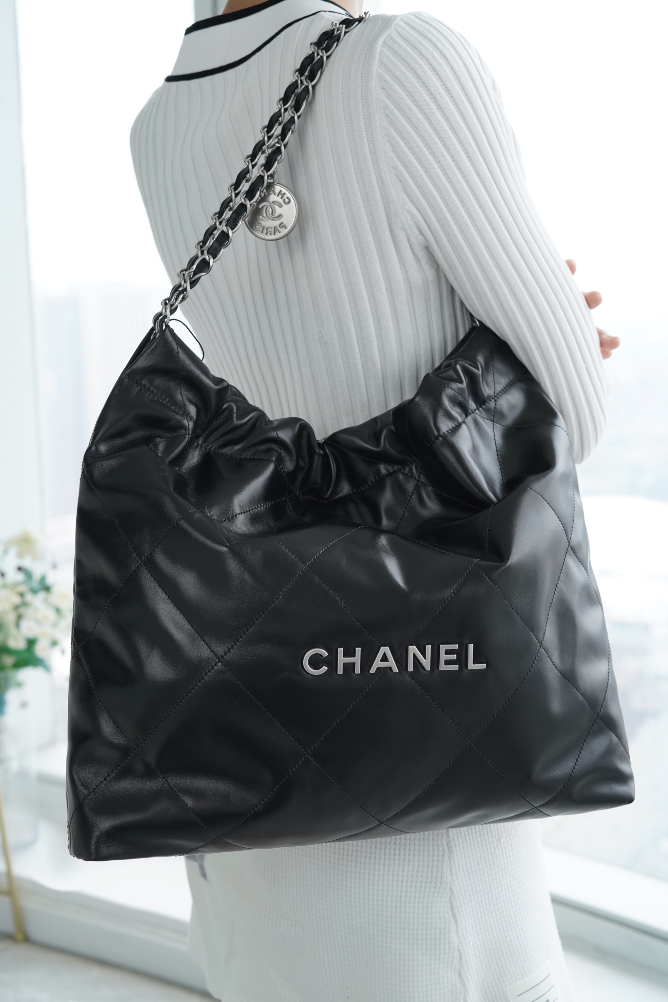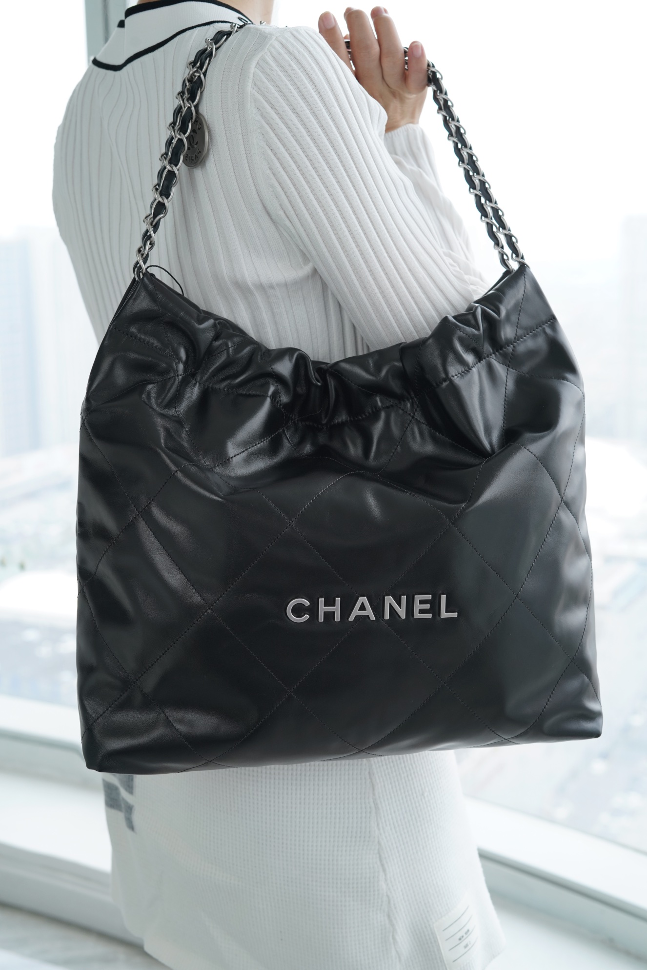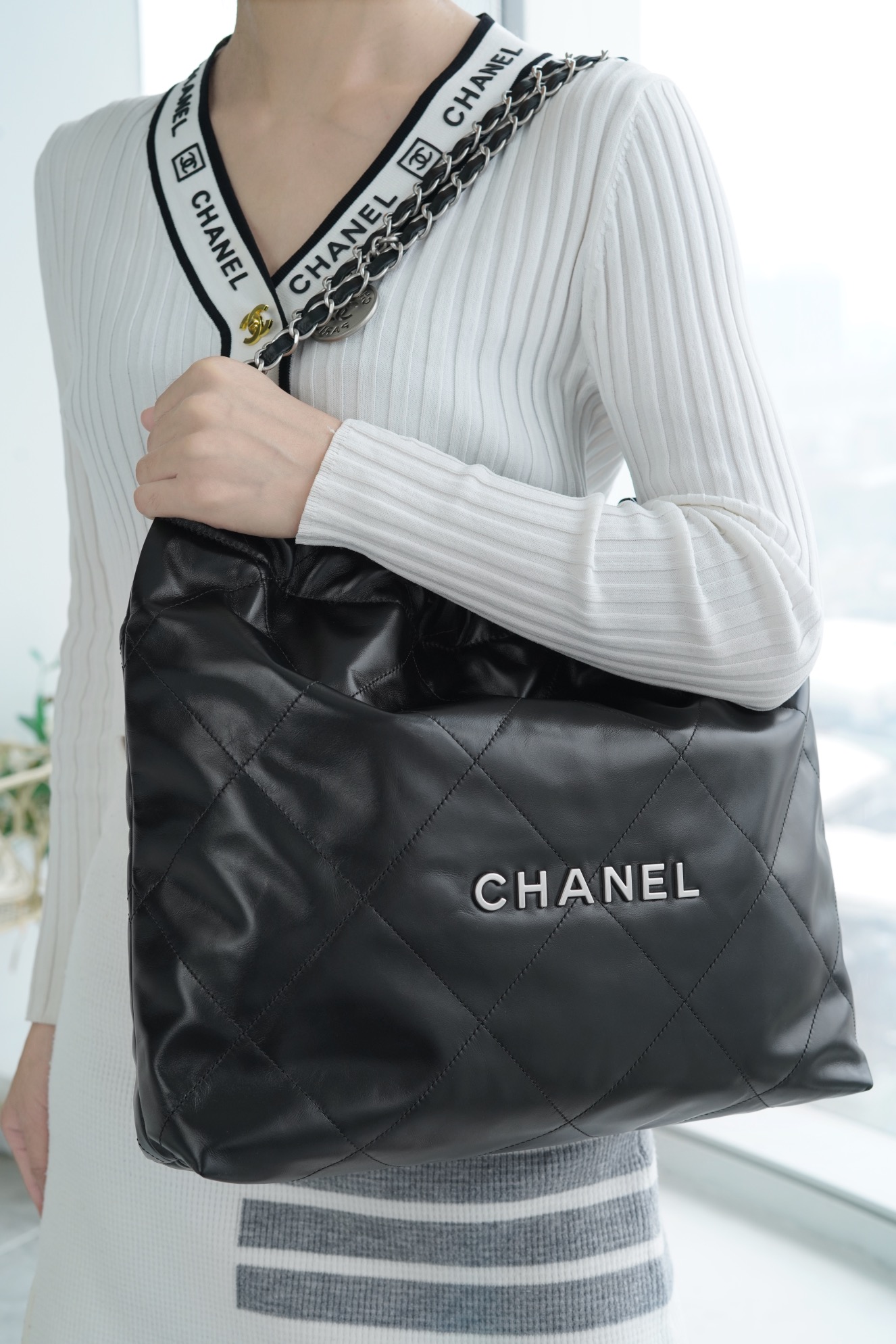 简简单单的外观却藏着不少设计师的高级设计,镂空的chanel logo,小小的点缀让整体气质提高了不止一个Level,满满的复古情怀,松松垮垮的慵懒感! ??