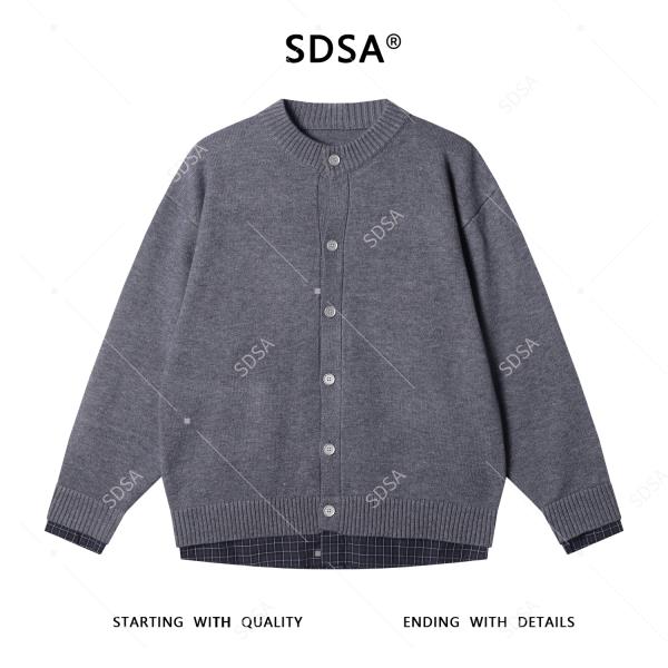 SDSA男士秋冬新款痞帅男装韩版下摆拼接开衫毛衣休闲针织衫百搭