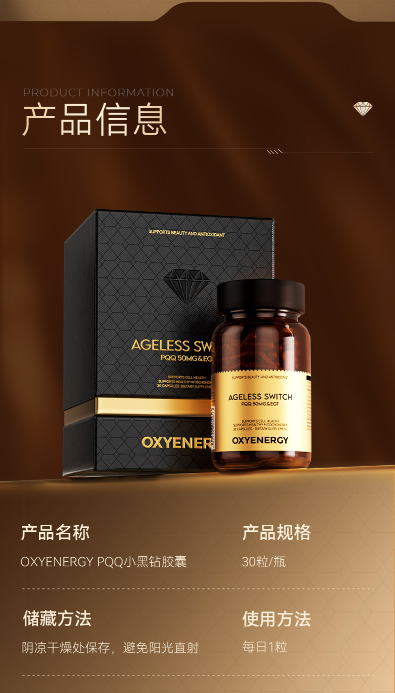 OXYENERGY氧气能量3.0PQQ小黑钻麦角硫因胶囊进口奢养体验30粒/瓶