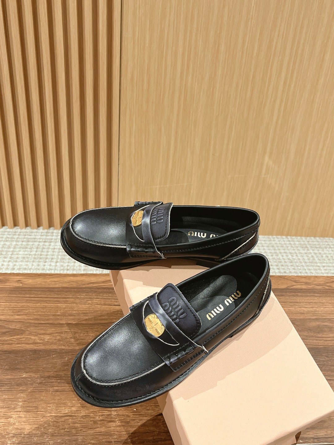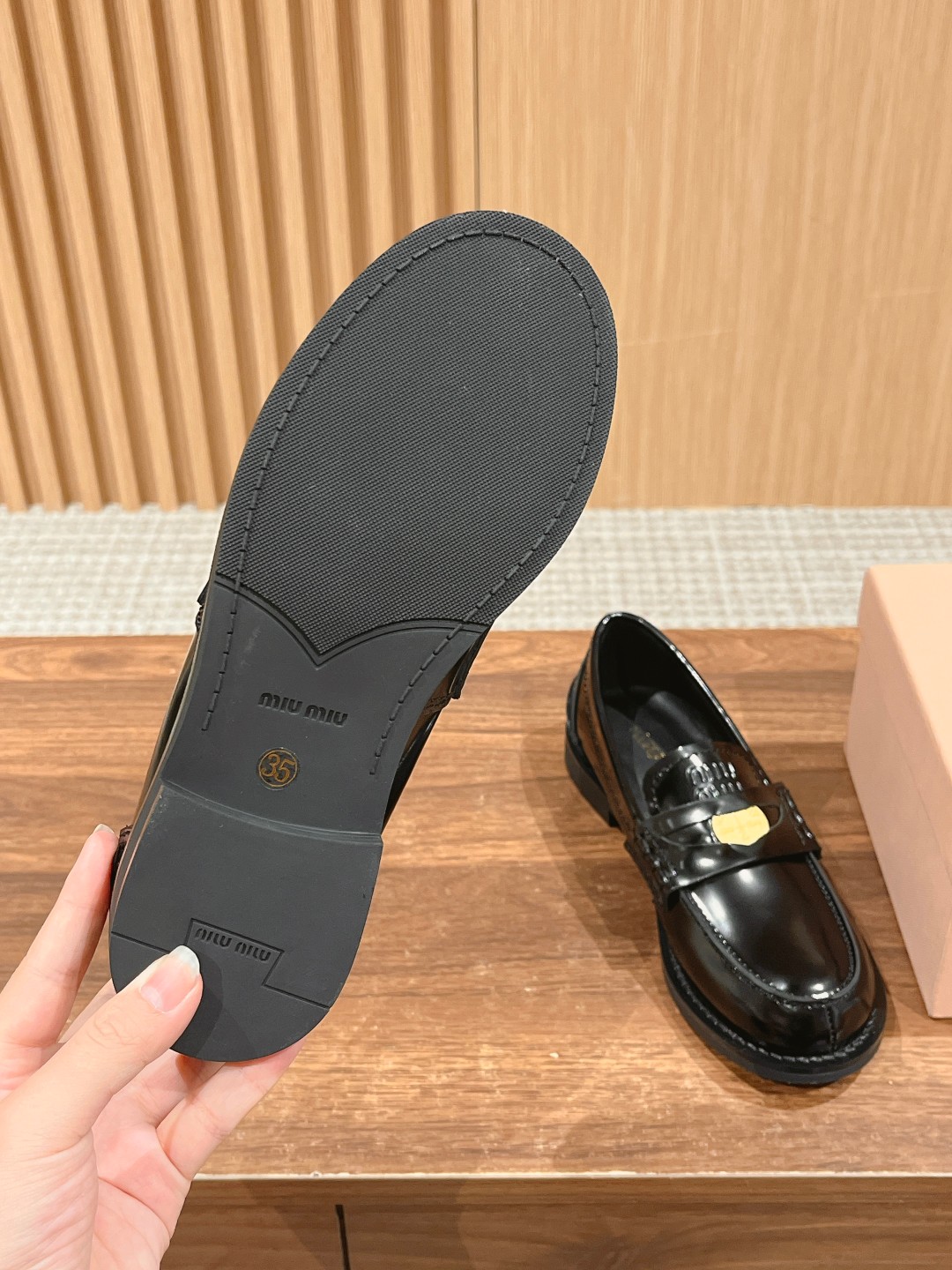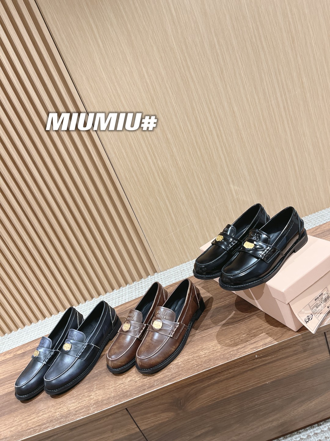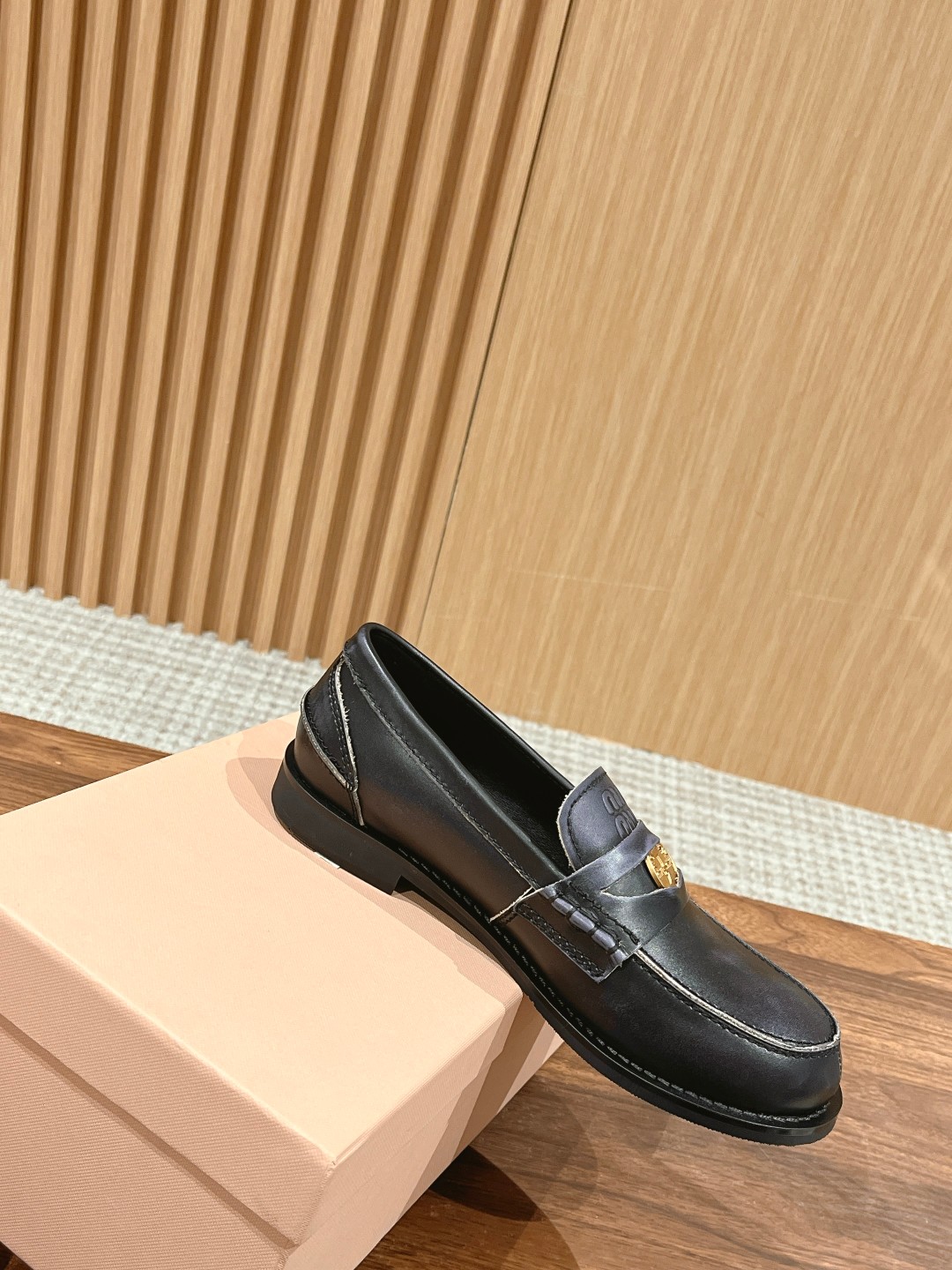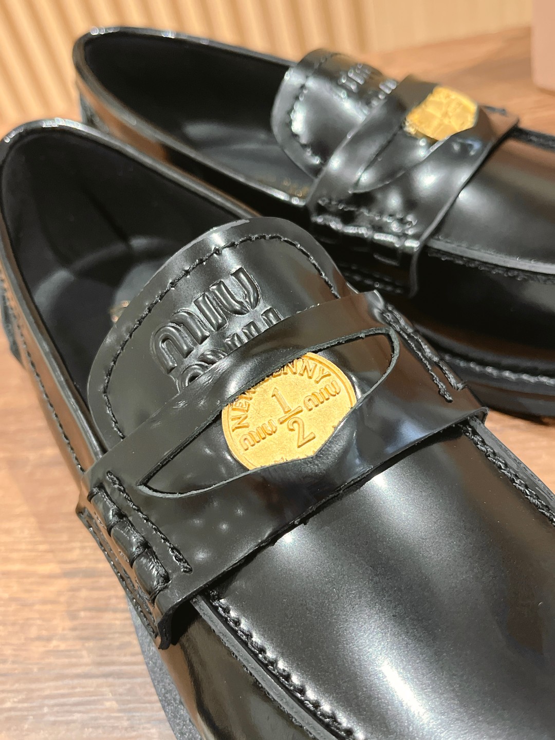 MiuMiu 缪缪爆款金币乐福鞋 Miu女孩们的新色乐福来啦!今年秋冬的复古做旧的新色 麂皮材质!今年Miu爆火的不要不要的!都是那种做旧的皮质 穿上超好看 时尚界的弄潮儿 鞋面:开边珠牛皮/麂皮 大底:原版开模大底