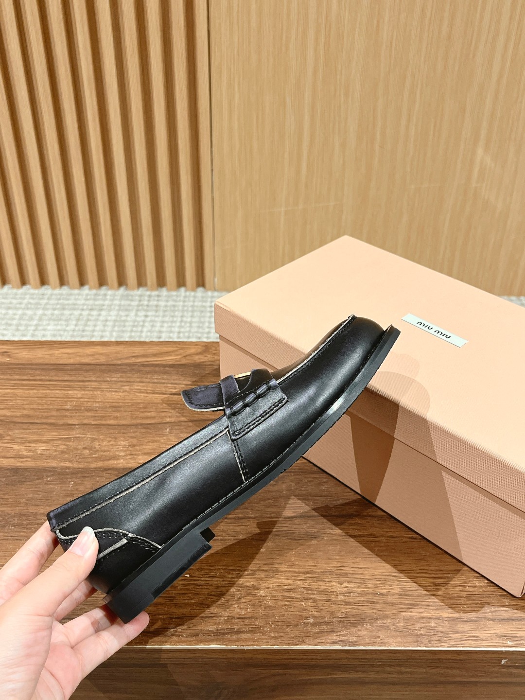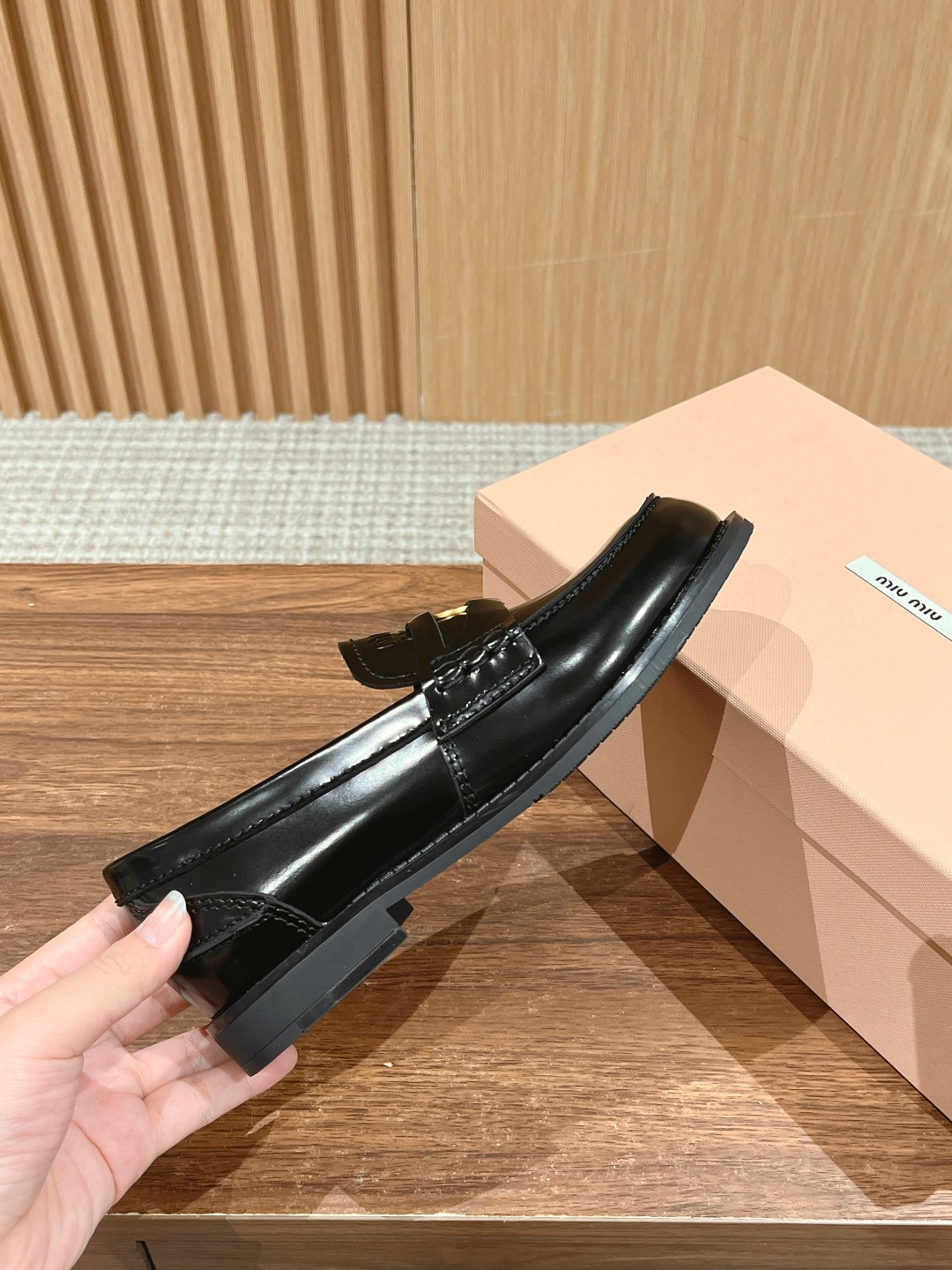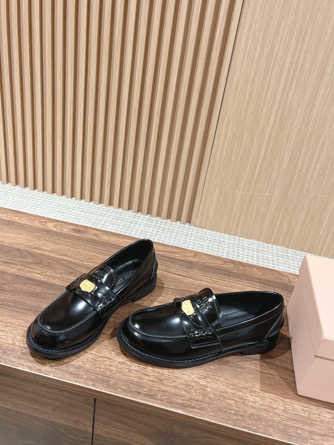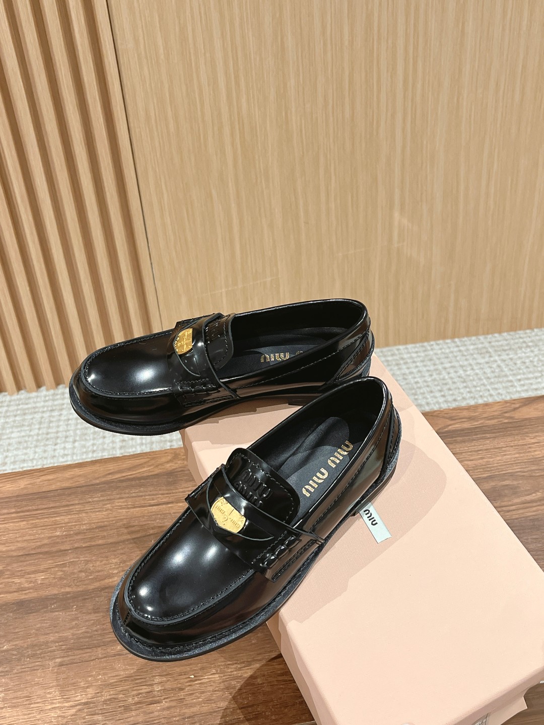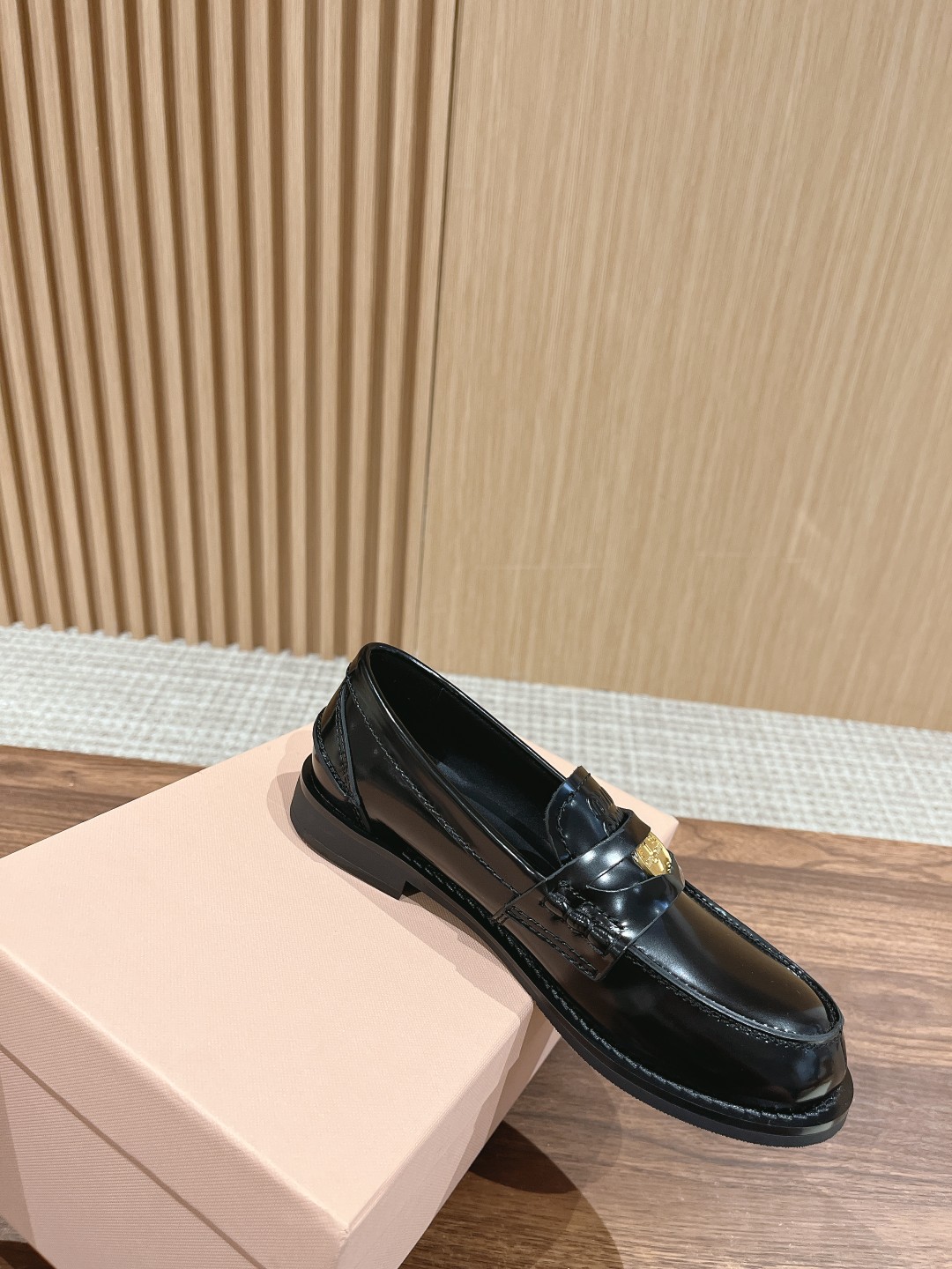 MiuMiu 缪缪爆款金币乐福鞋 Miu女孩们的新色乐福来啦!今年秋冬的复古做旧的新色 麂皮材质!今年Miu爆火的不要不要的!都是那种做旧的皮质 穿上超好看 时尚界的弄潮儿 鞋面:开边珠牛皮/麂皮 大底:原版开模大底