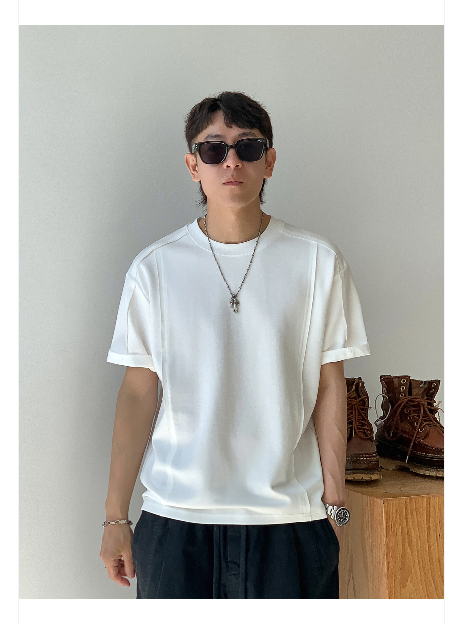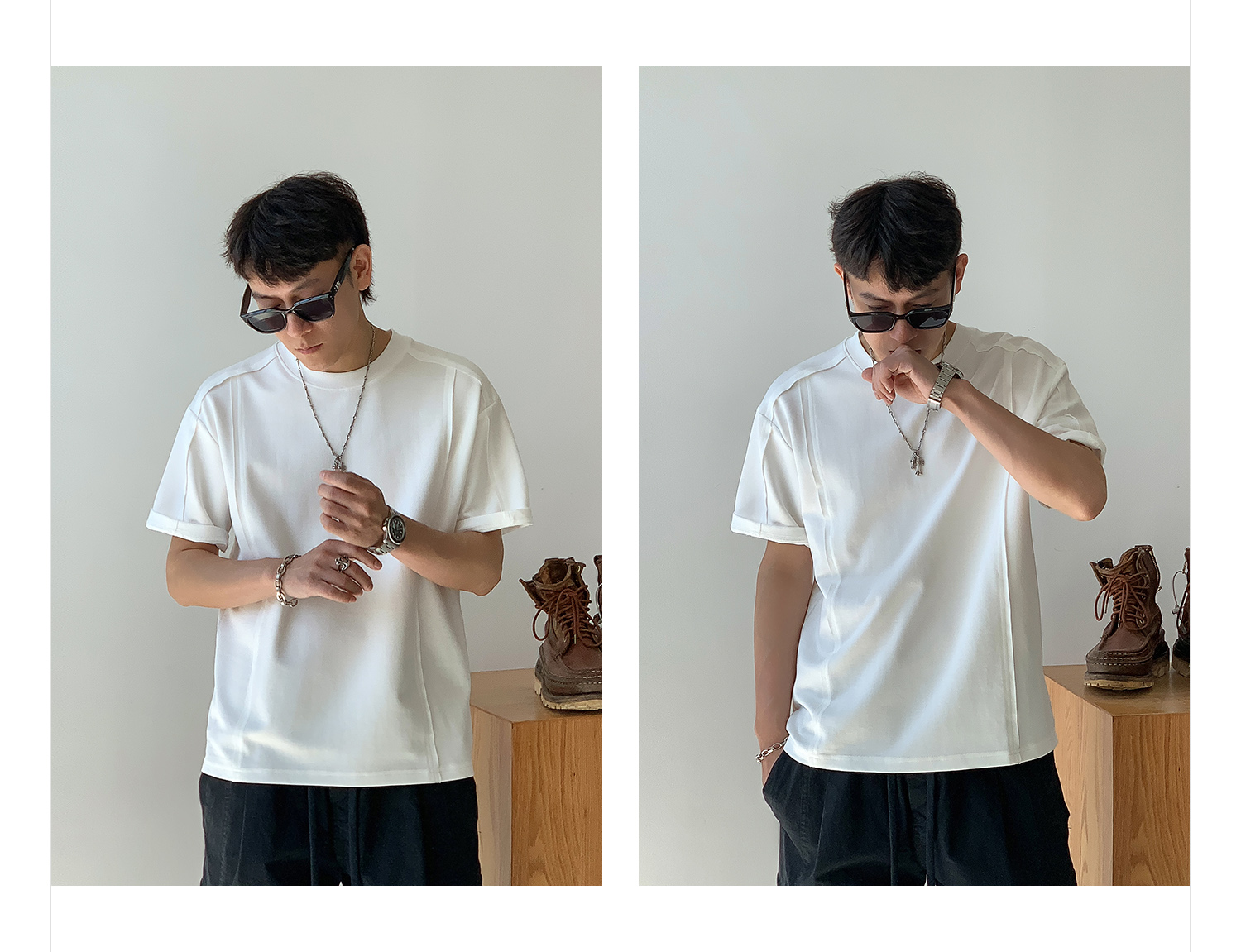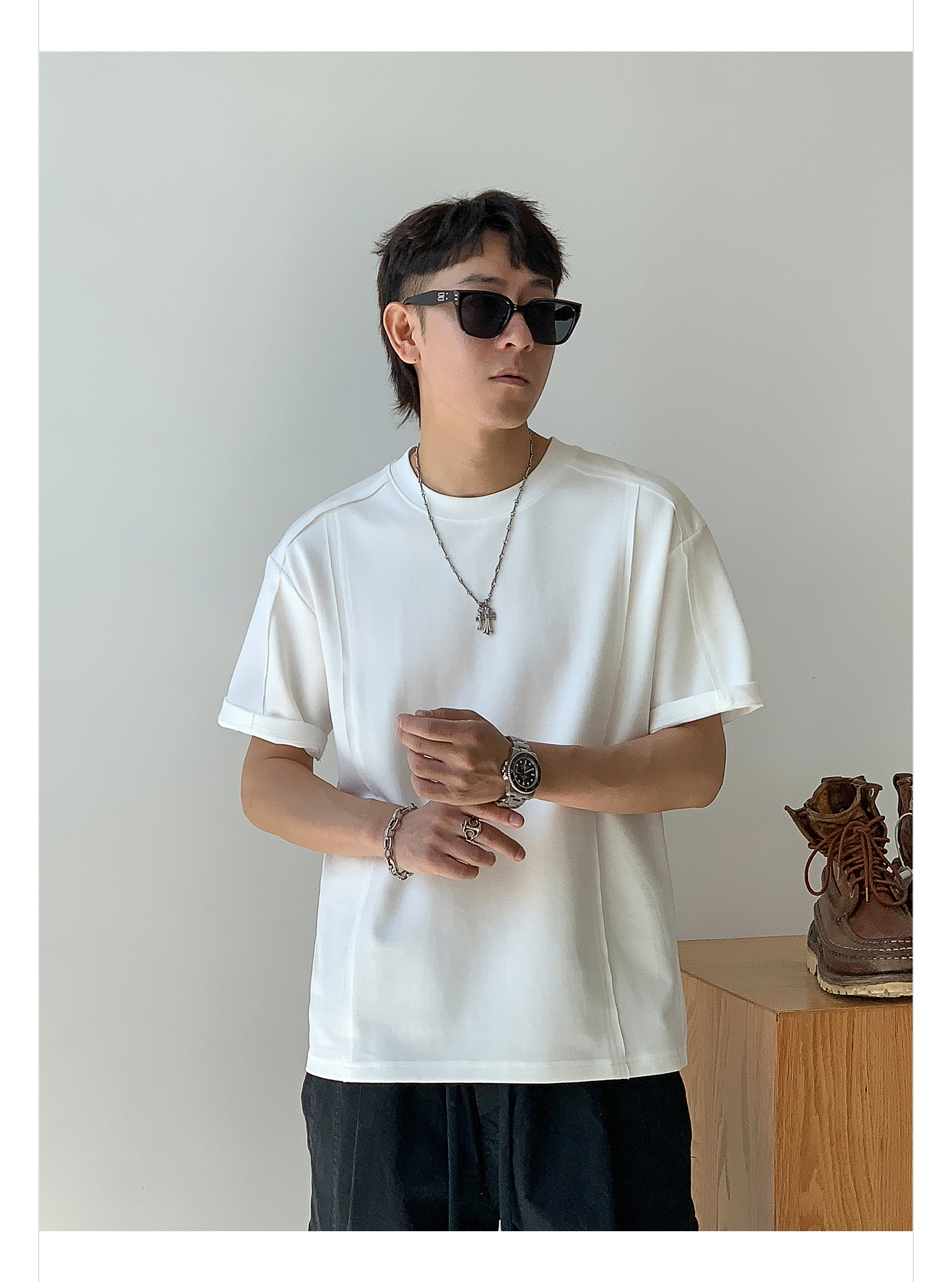 徐太浪缉明线简约纯色短袖T恤男夏季2025新款宽松休闲五分袖上衣