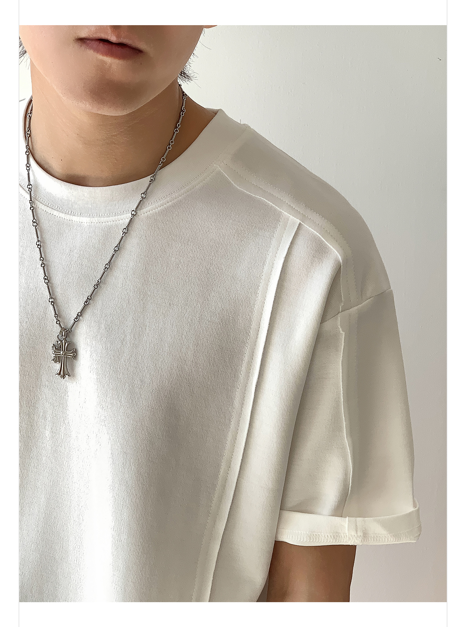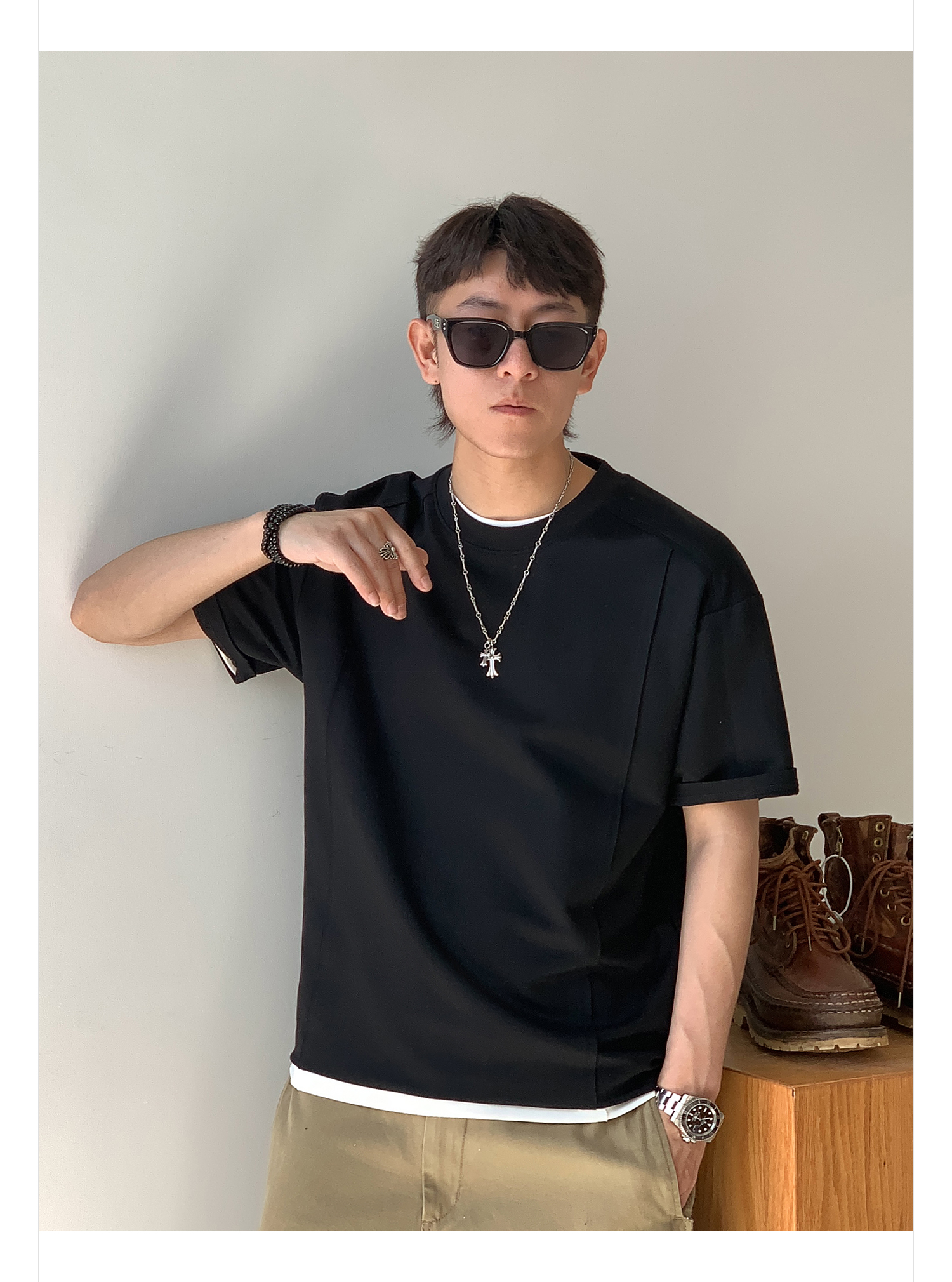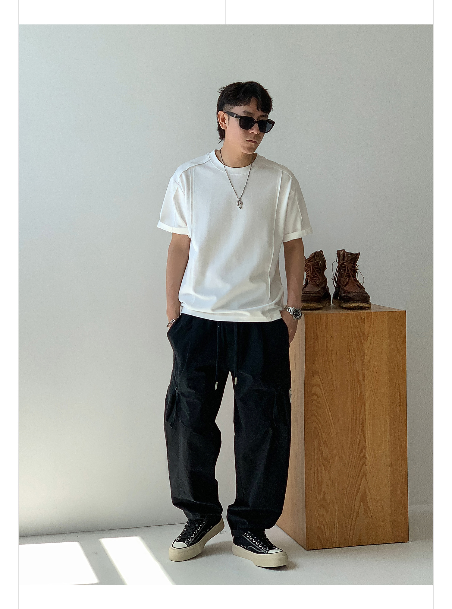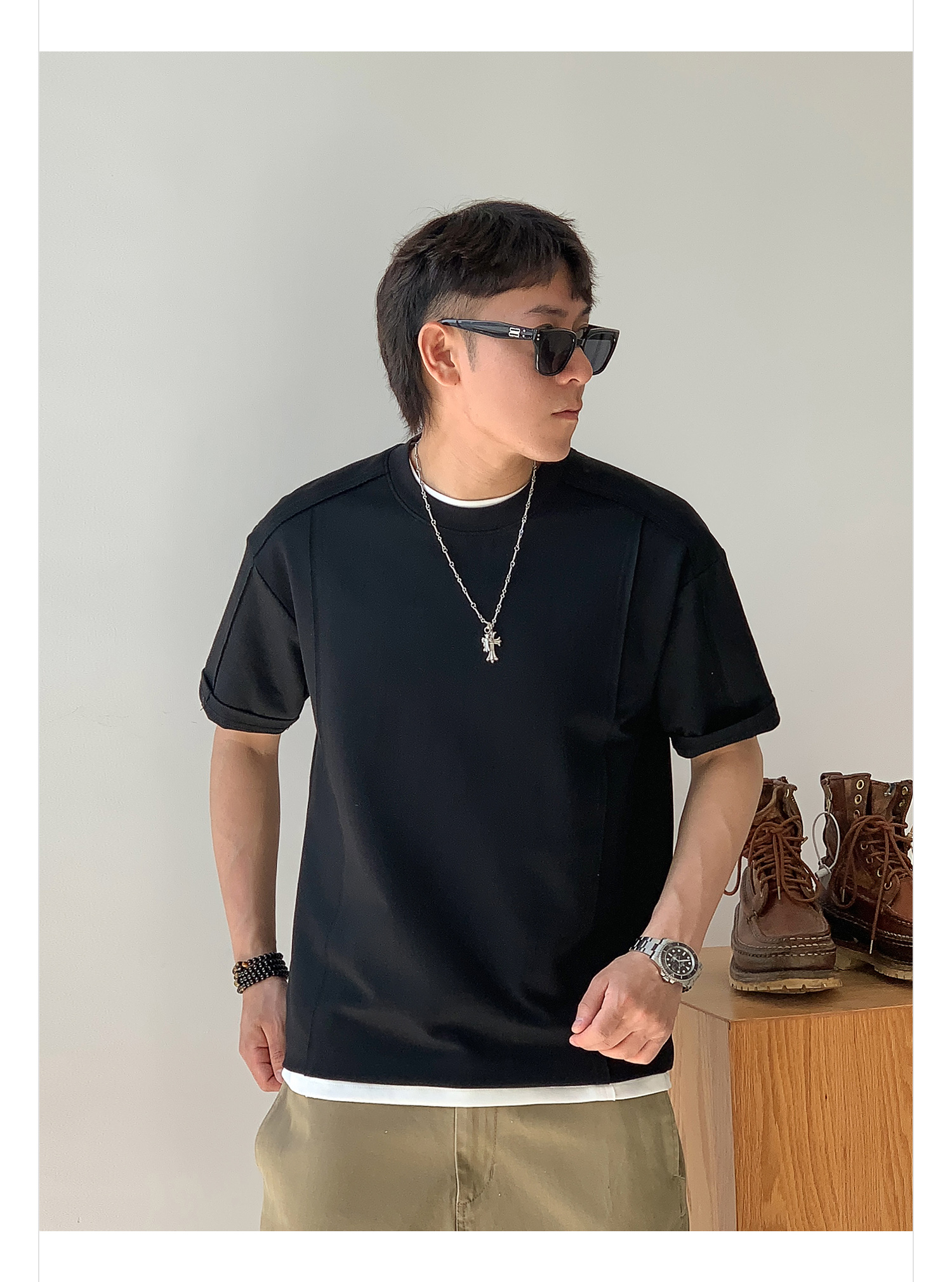徐太浪缉明线简约纯色短袖T恤男夏季2025新款宽松休闲五分袖上衣