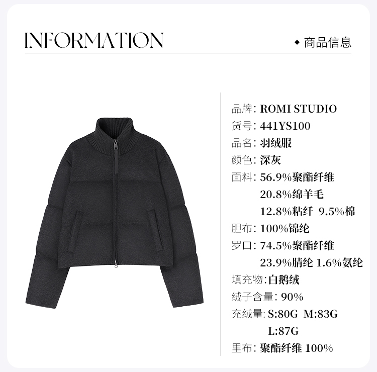 ROMI STUDIO“温暖如初”90白鹅绒澳洲进口绵羊毛混纺外套 441YS100