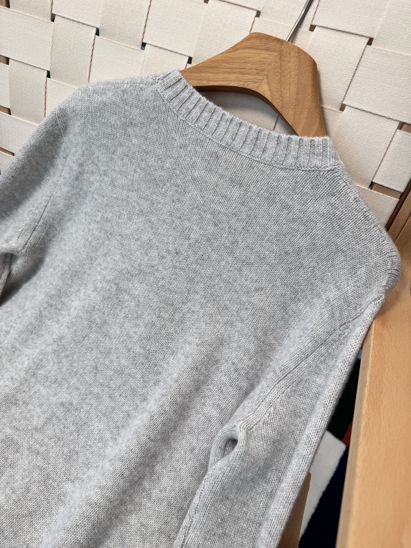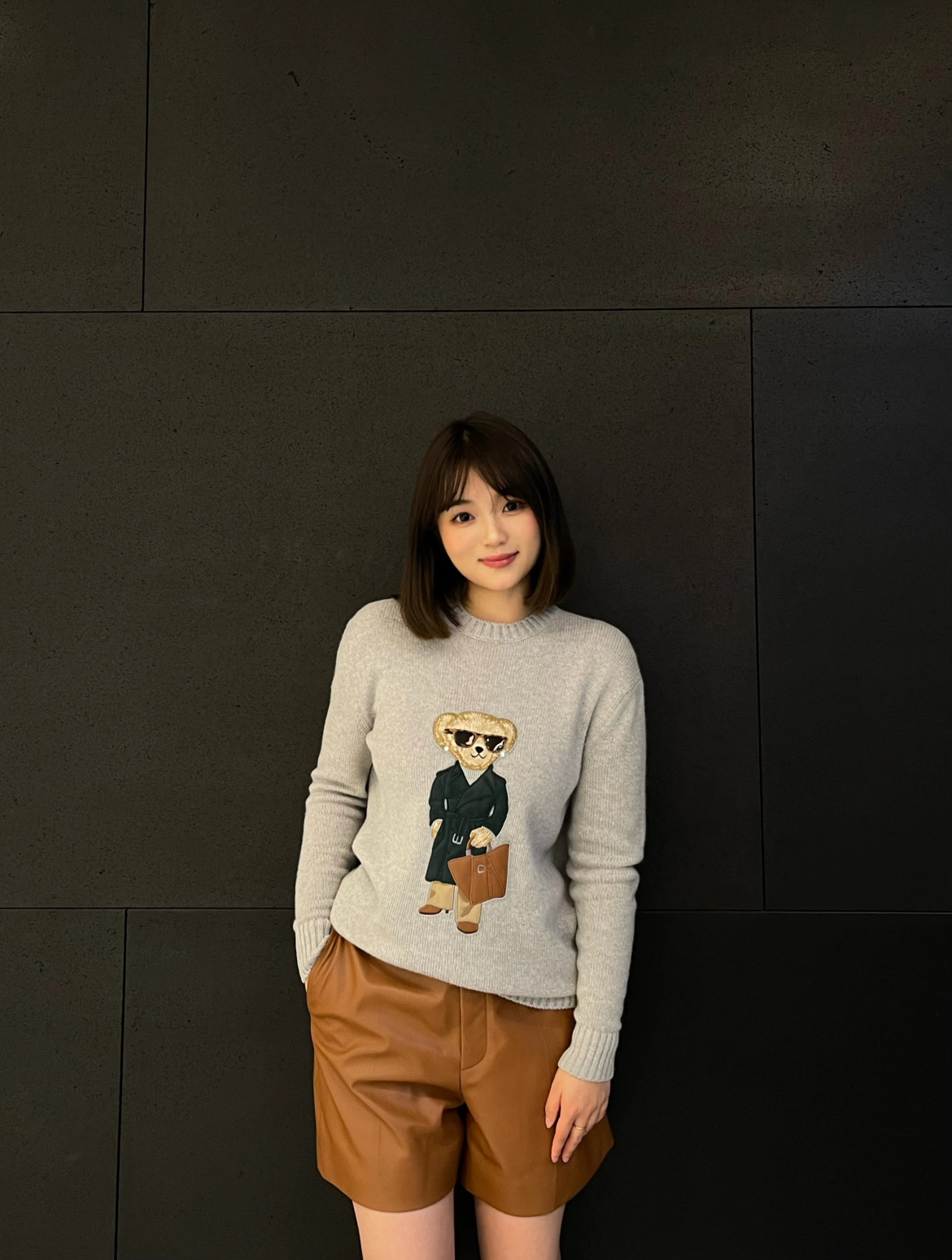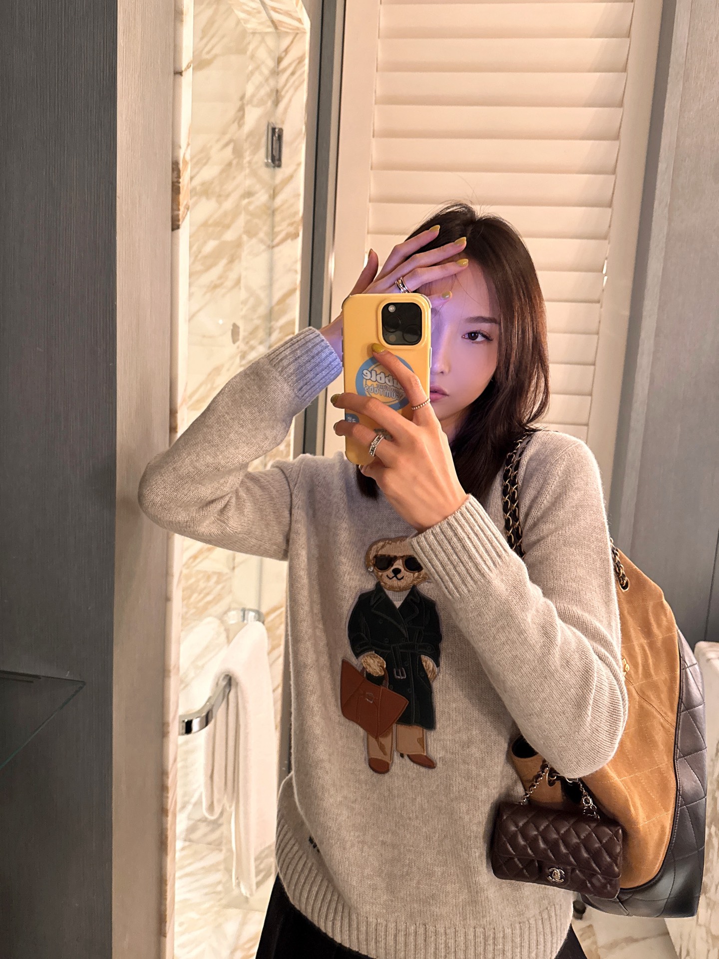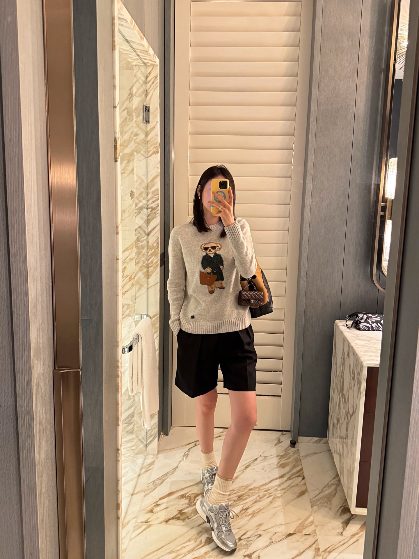 25年秋冬紫标系列最新款,灰色墨镜小熊针织衫✨真的很高级,满满的舒适松弛感,经典永不过时〰️采用进口德国机出品🔜 织造的成衣软糯而细腻,手感让人爱不释手, 贴身穿都很舒服,独家定制小熊刺绣贴!秋冬穿也非常有氛围感,很精致,显气质,一件几乎可搭配衣橱任何下装,随性又耐看, 这个冬天不能没有拉夫熊,码数SML