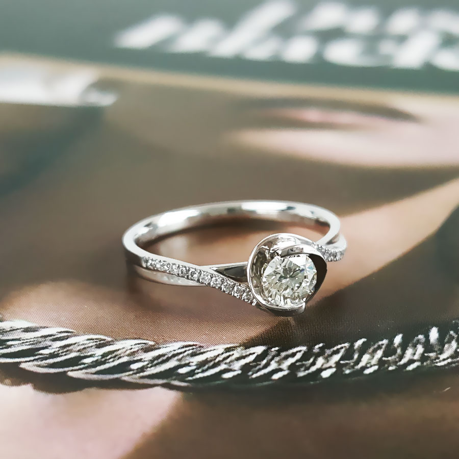 款式 | PT950铂金经典简约花朵造型0.302克拉钻石戒指 |