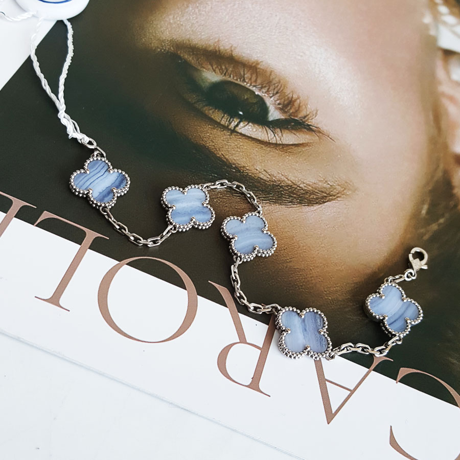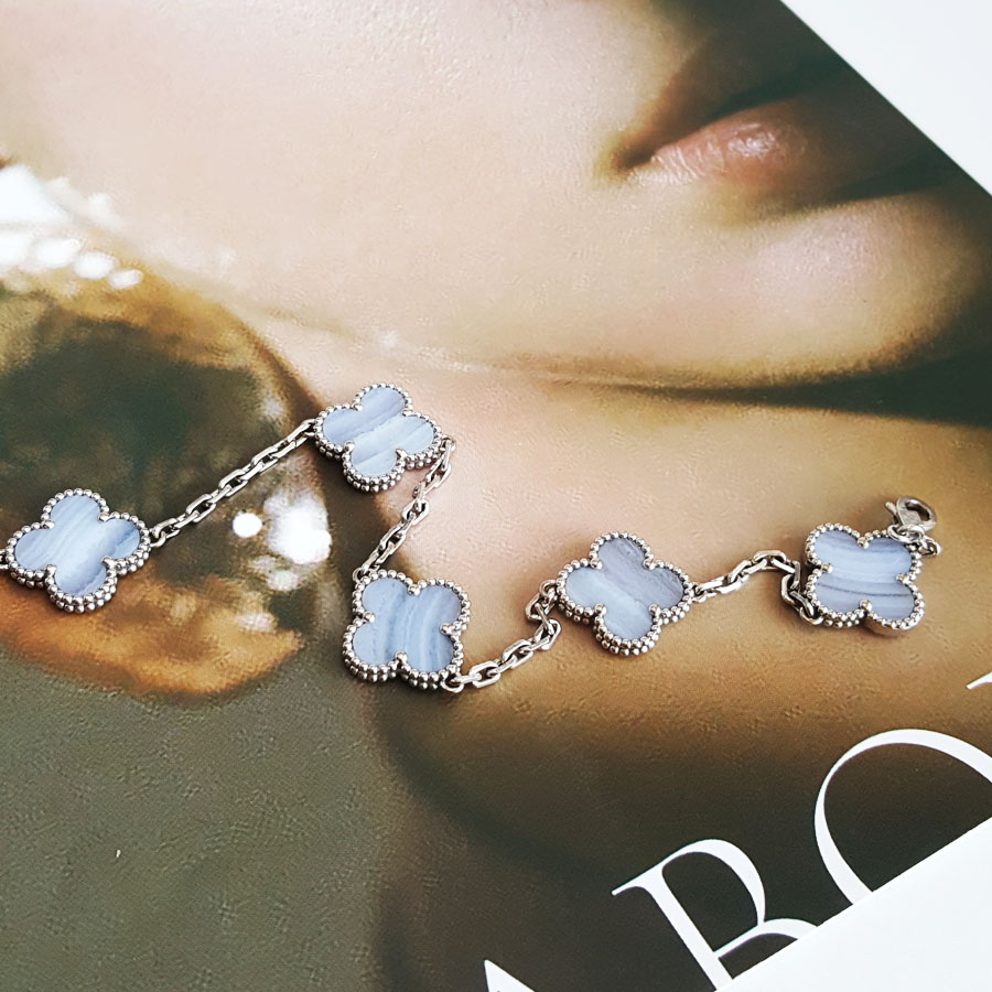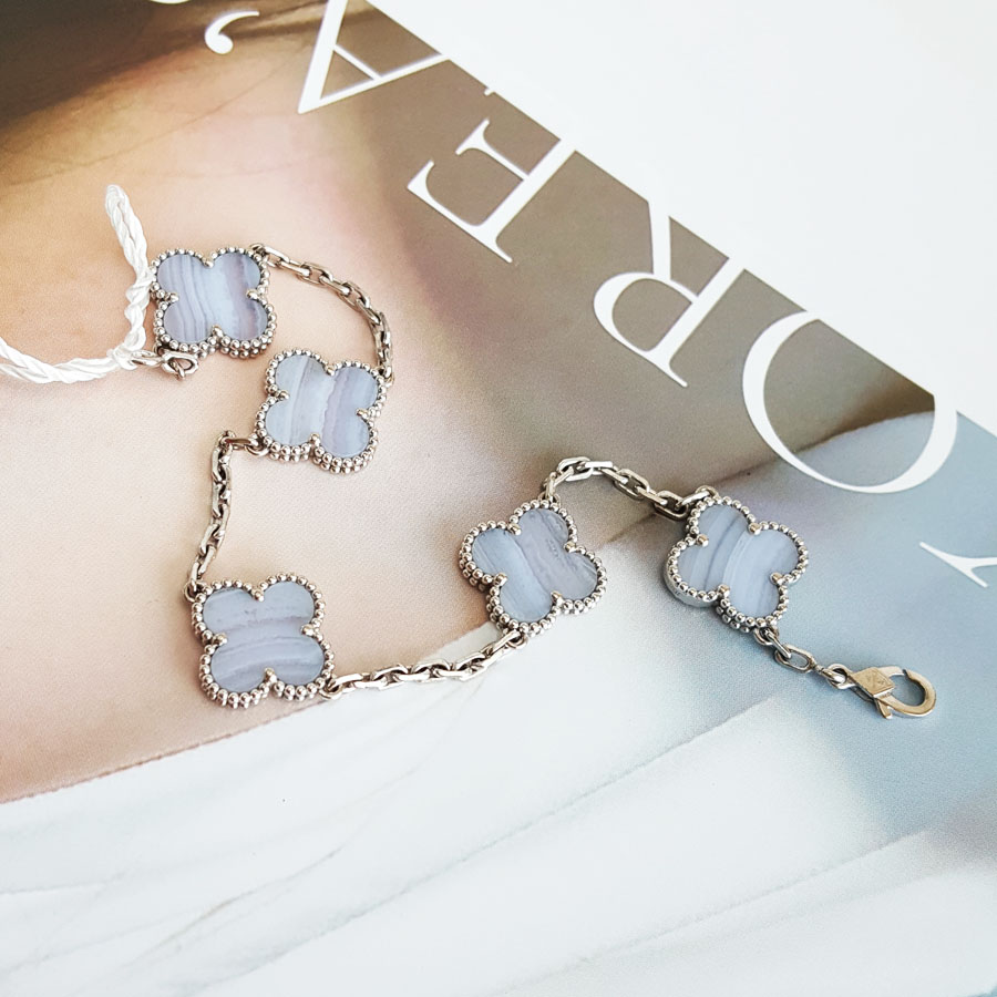 款式 | 18K白金镶紫玉髓四叶草五花手链 |