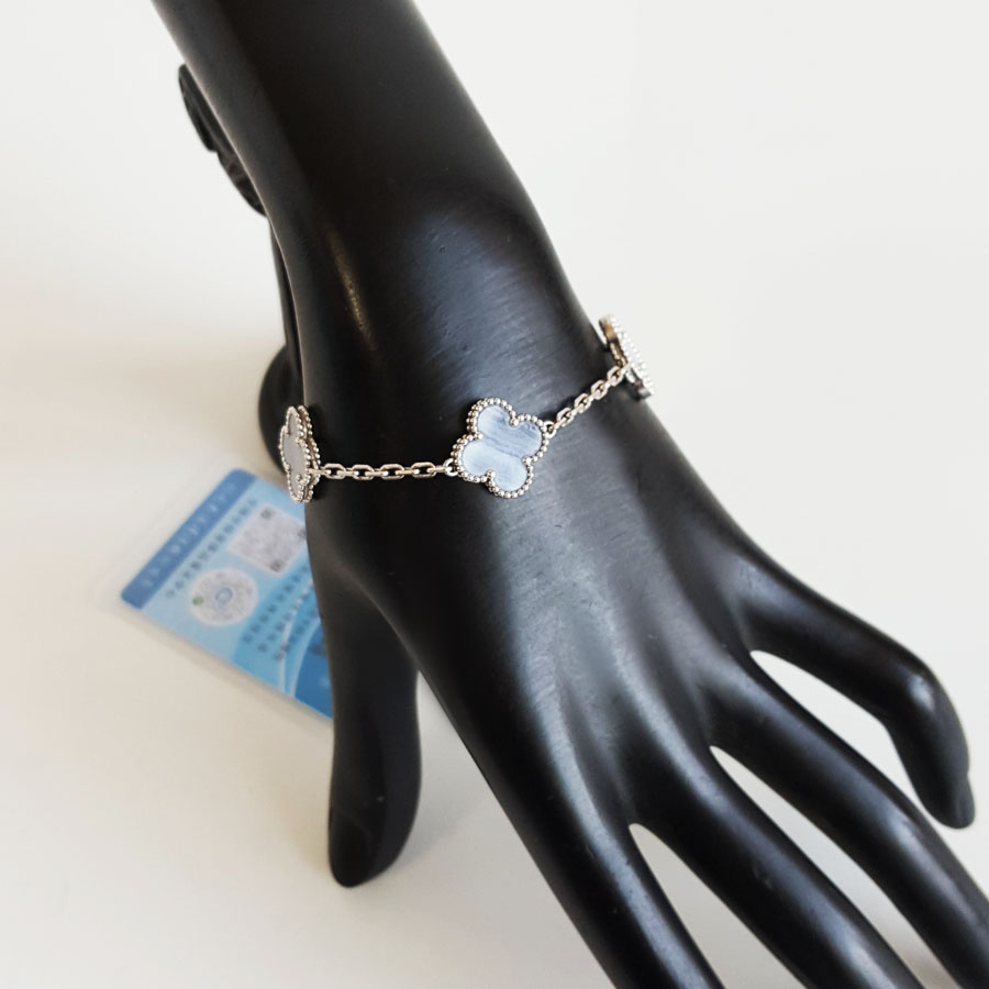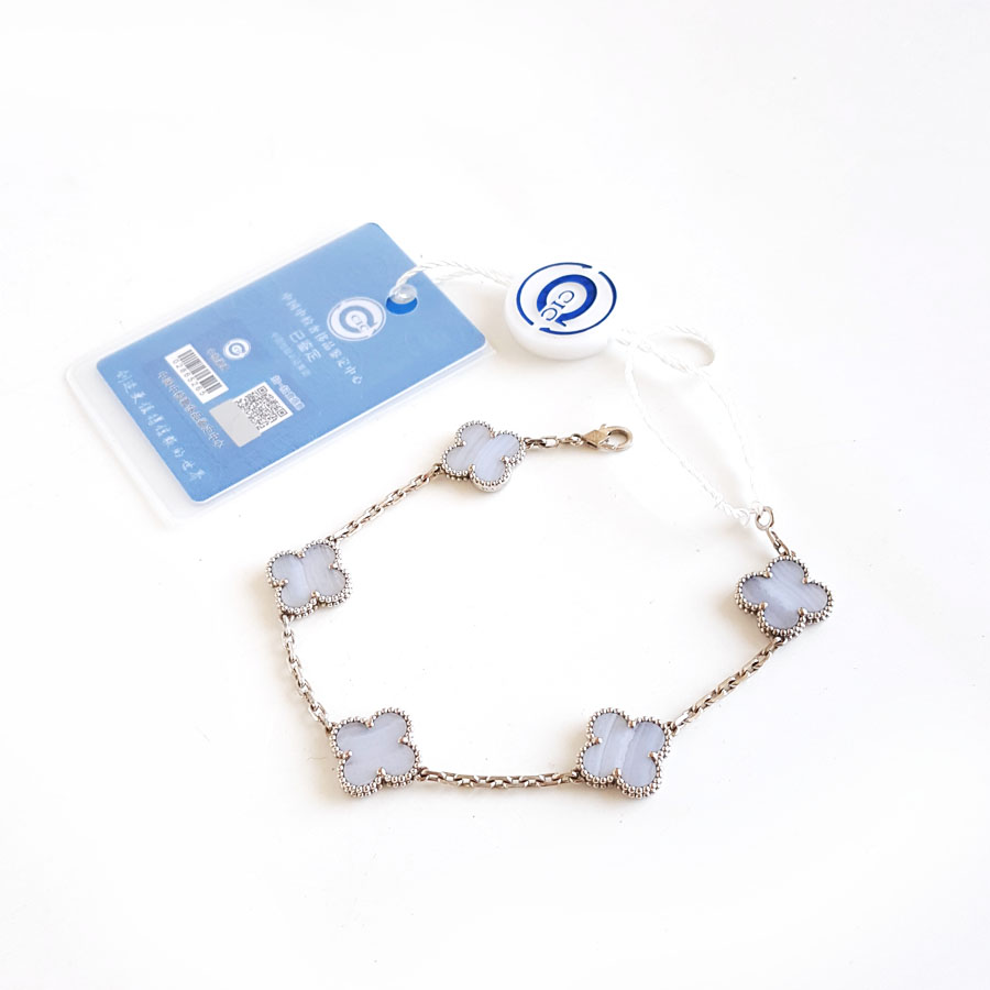 【95新】VCA梵克雅宝Vintage Alhambra系列VCARD3470018K白金镶紫玉髓四叶草五花手链 链长约19cm女士200326NJS16