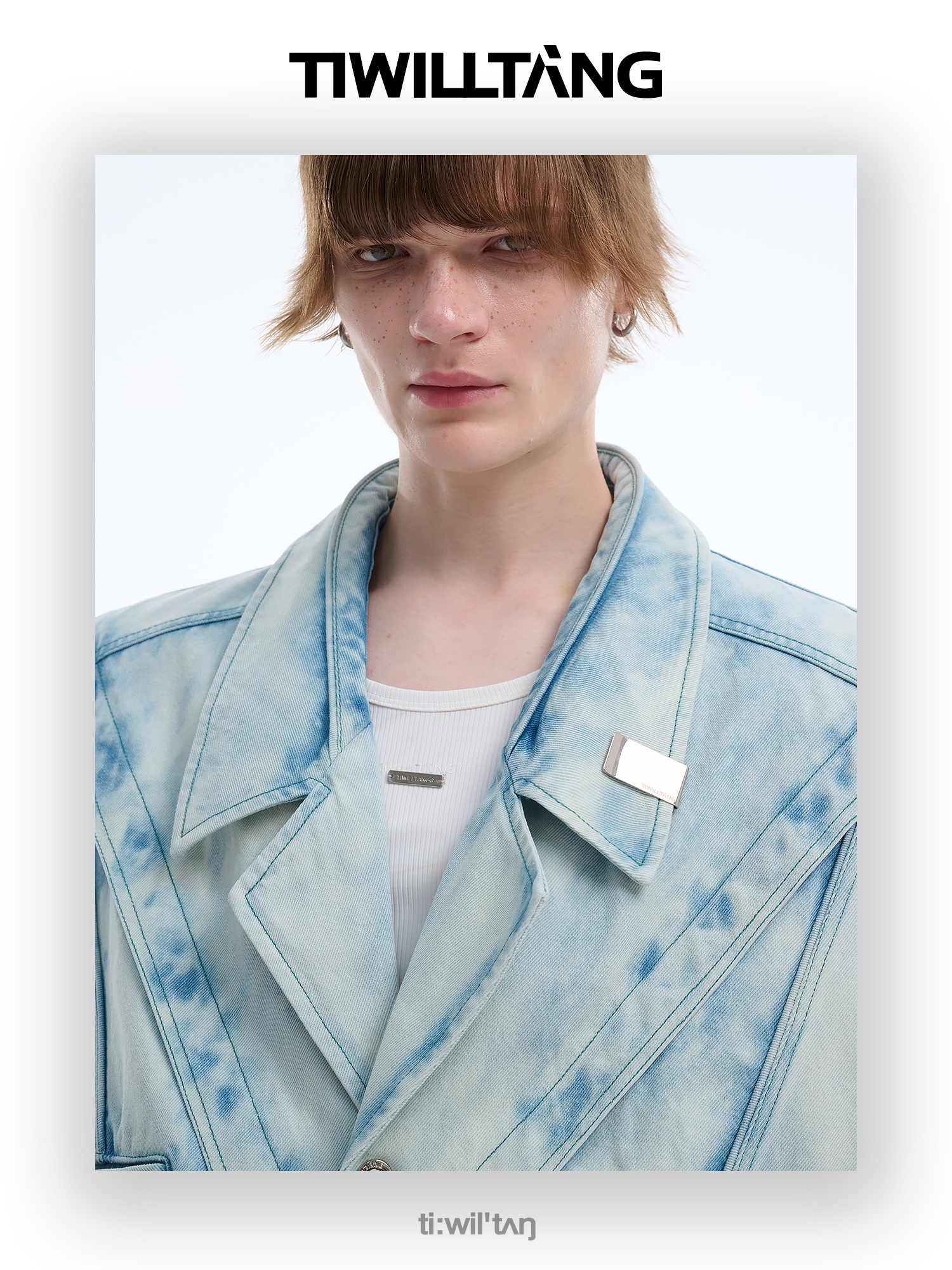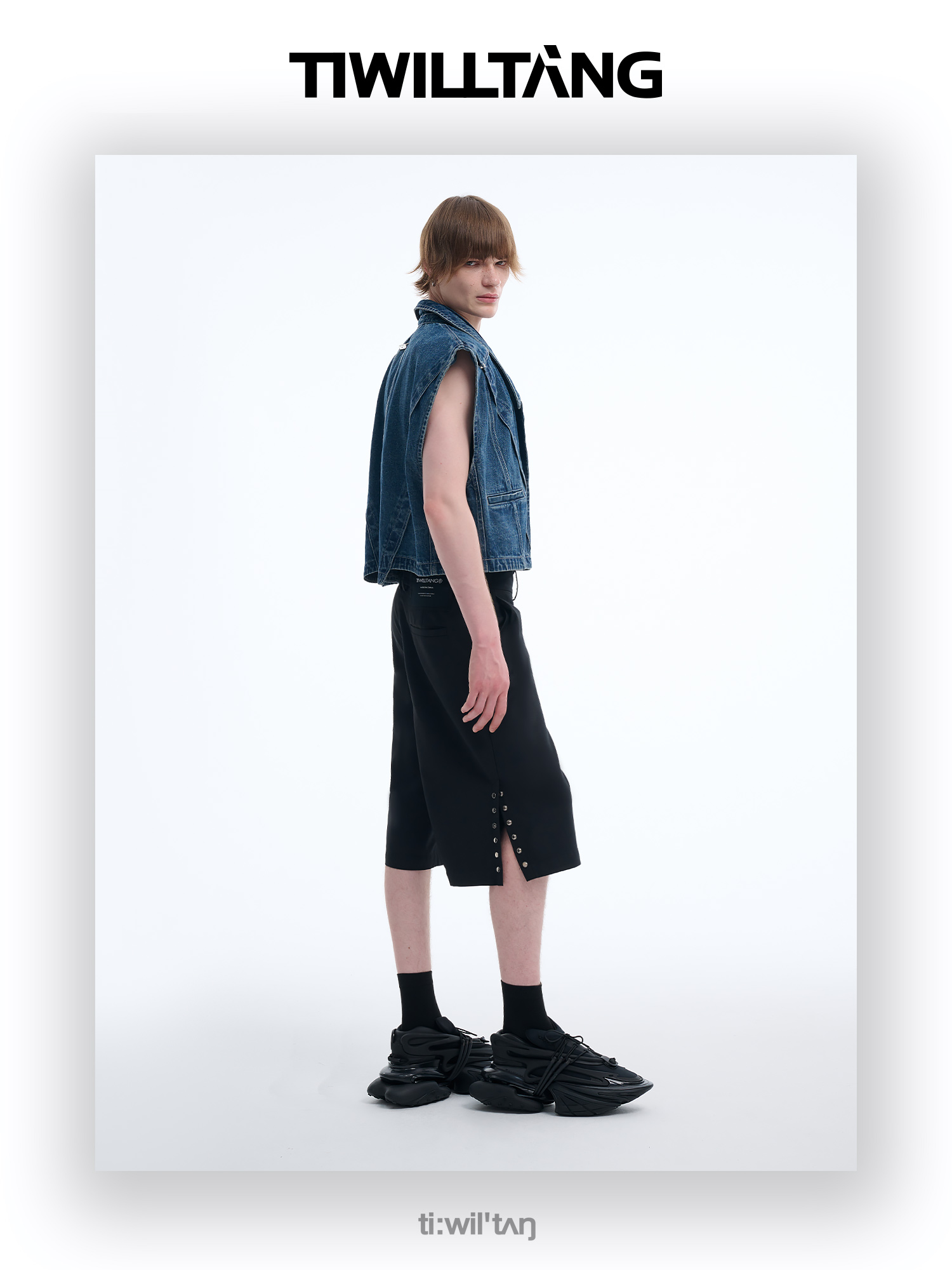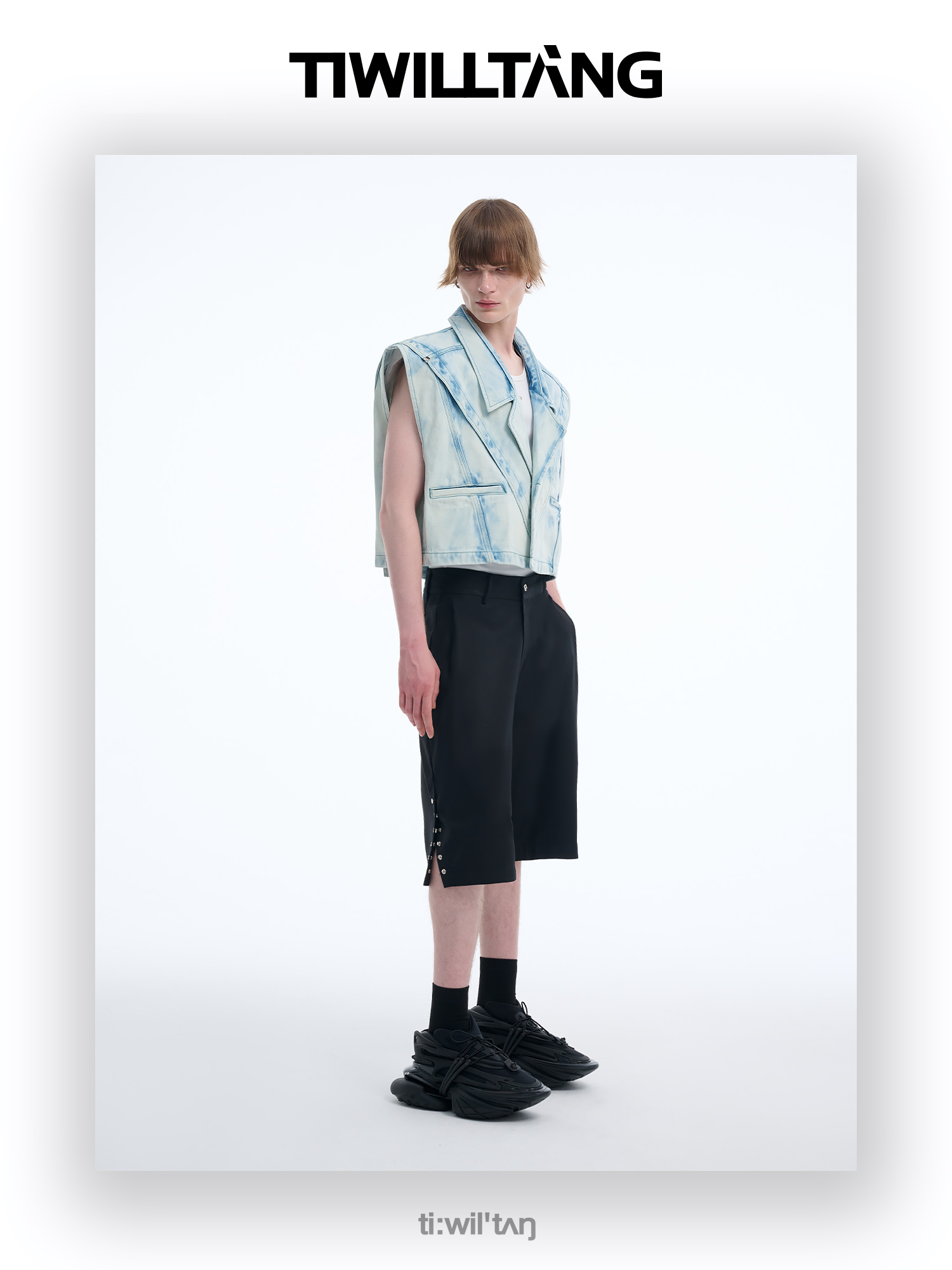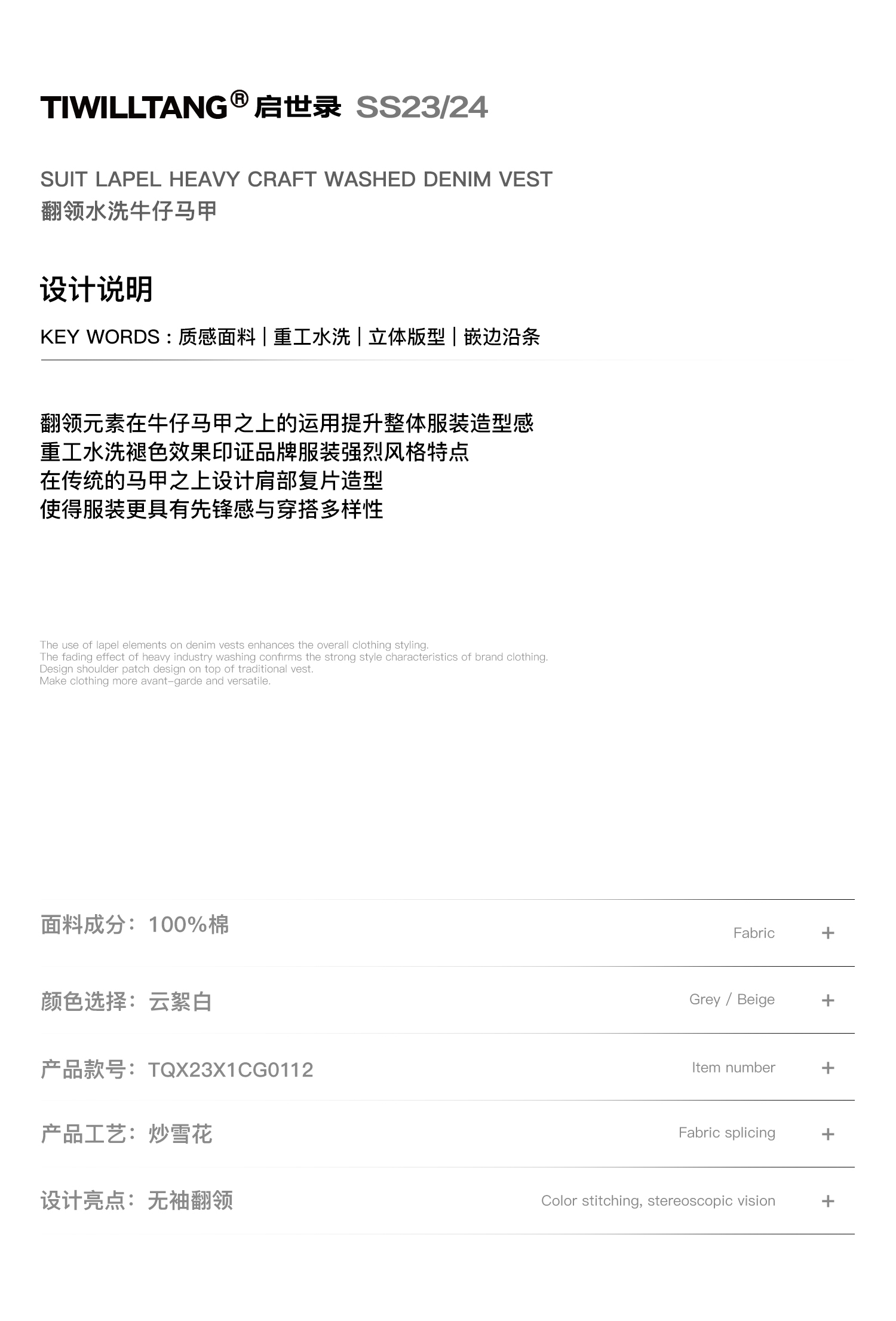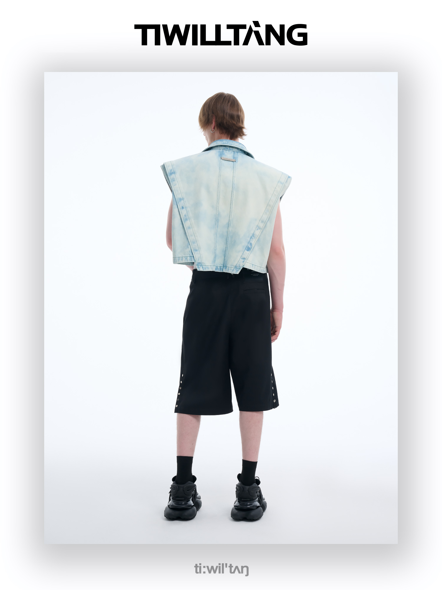 TIWILLTANG 启世录“恬狭”夏季短款设计感翻领水洗牛仔马甲夹克