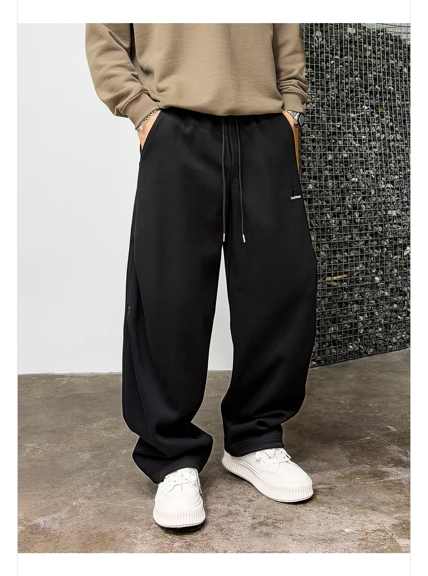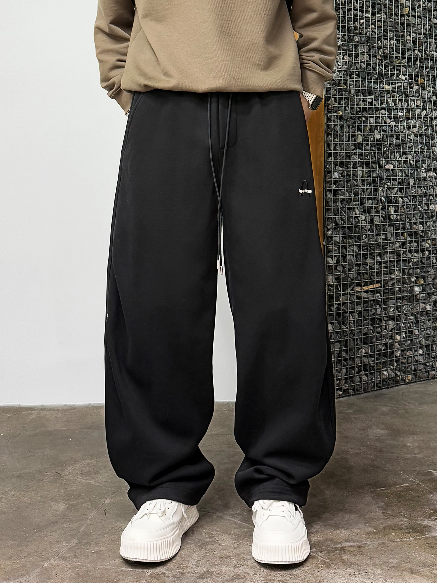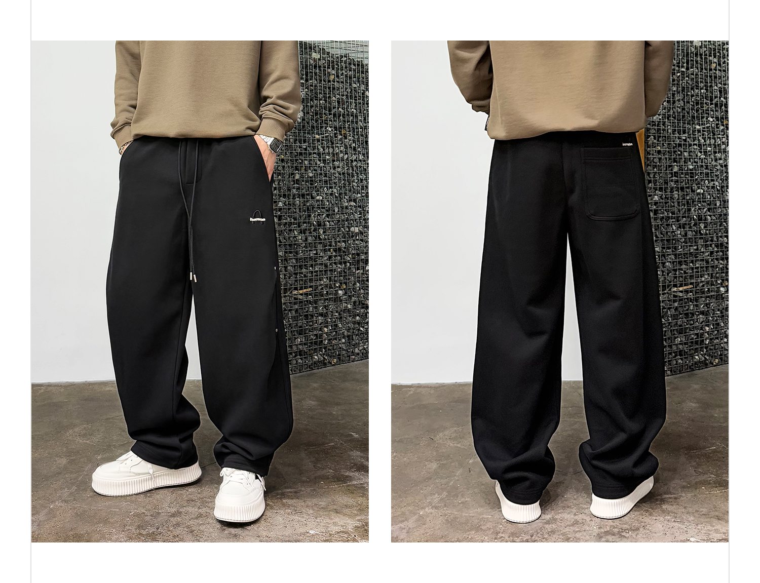 徐太浪【时尚刺绣 松紧腰】黑色休闲裤男秋冬宽松直筒大码运动裤