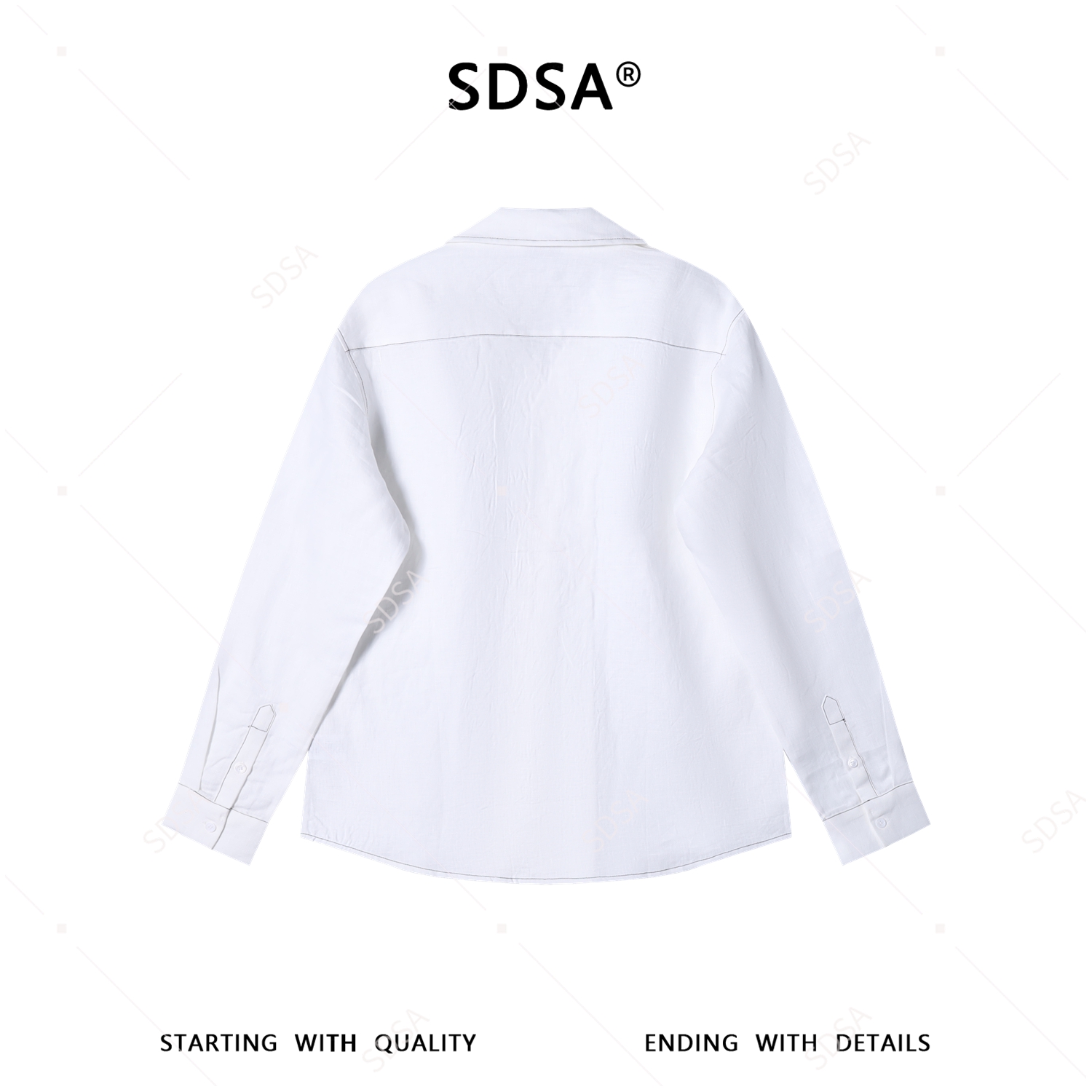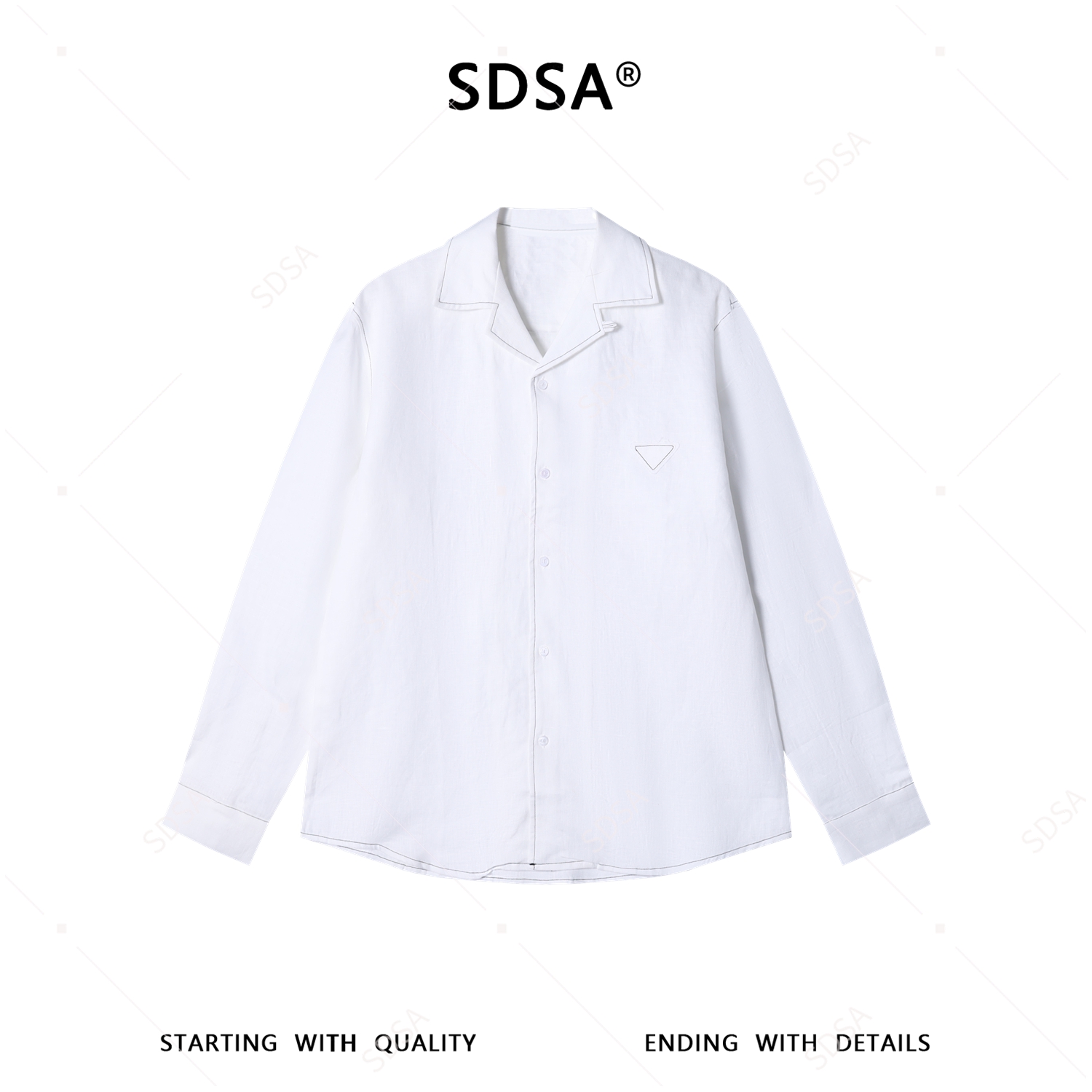 SDSA男装2026新款高贵轻奢时尚简约明线倒三角长袖衬衫百搭宽松