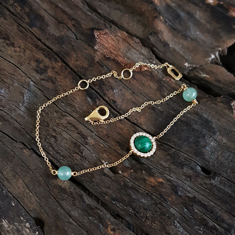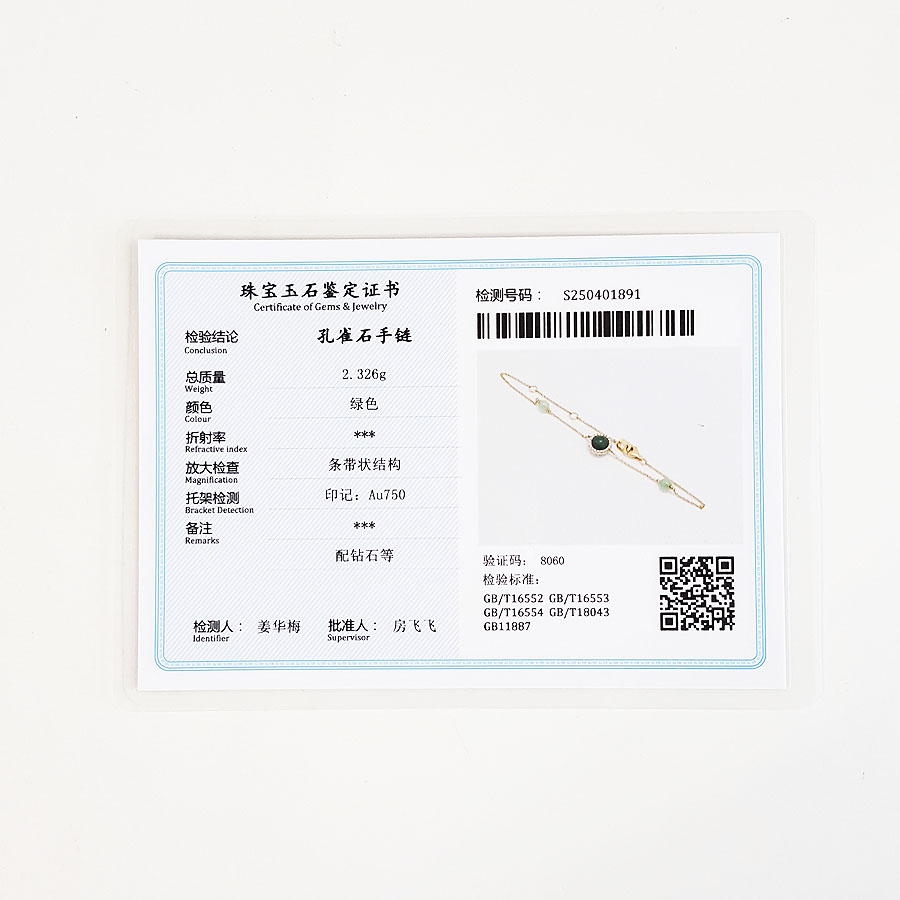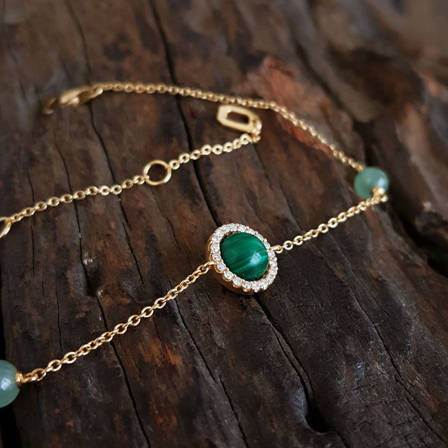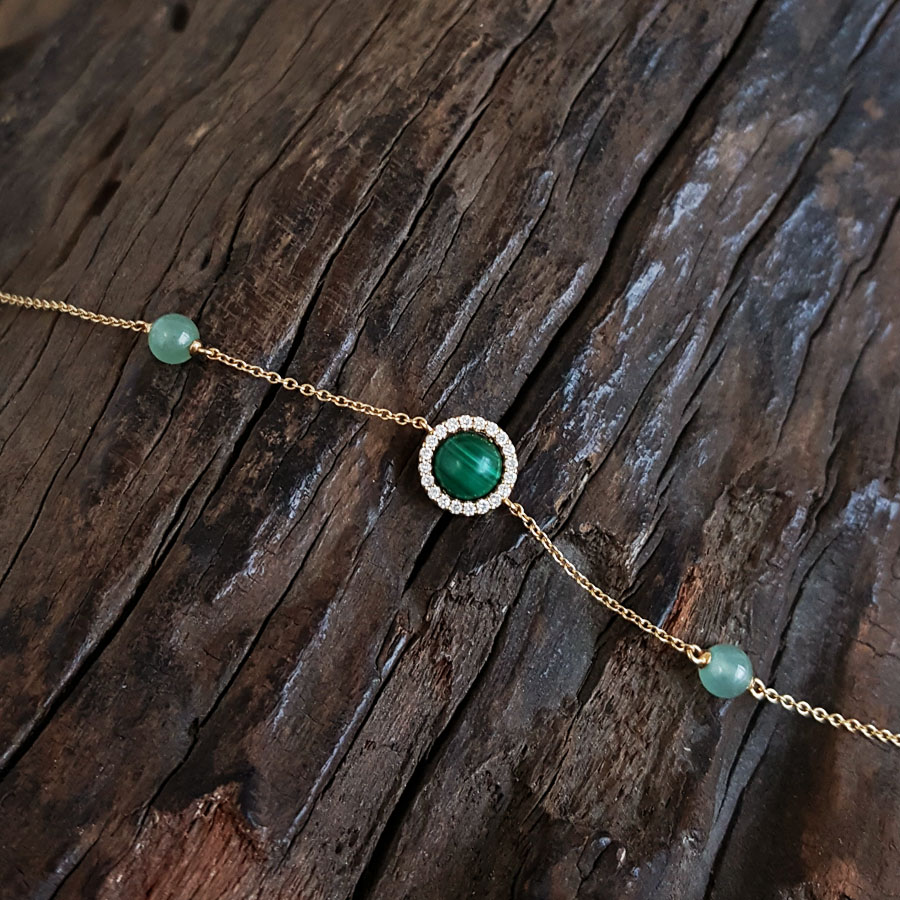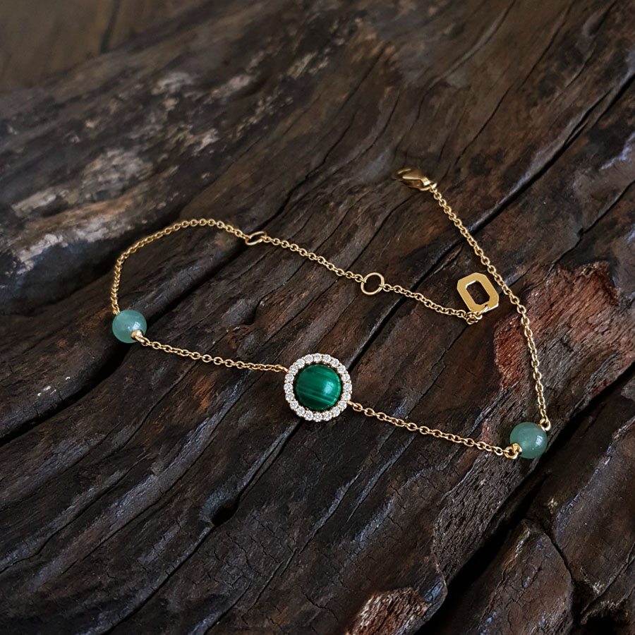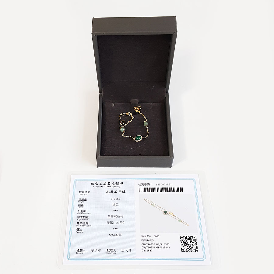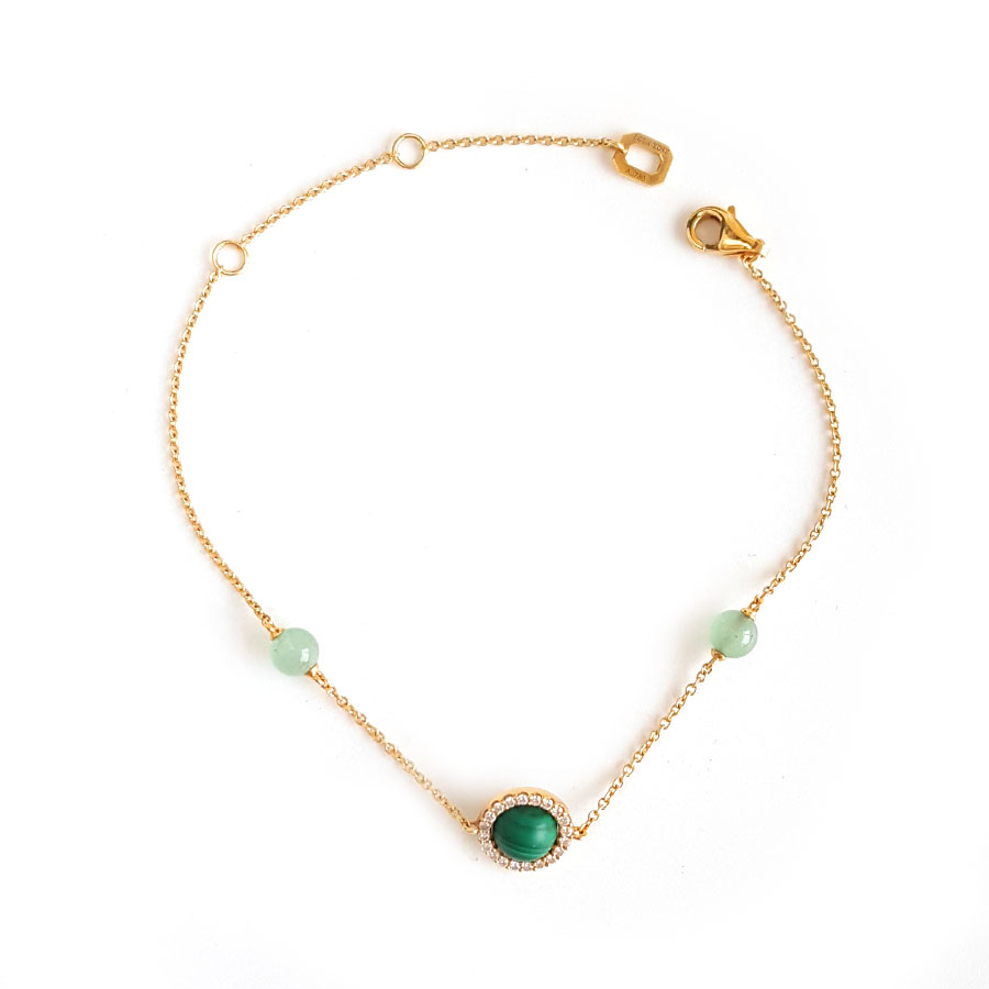 款式 | AU750黄金时尚经典款孔雀石钻石手链 |