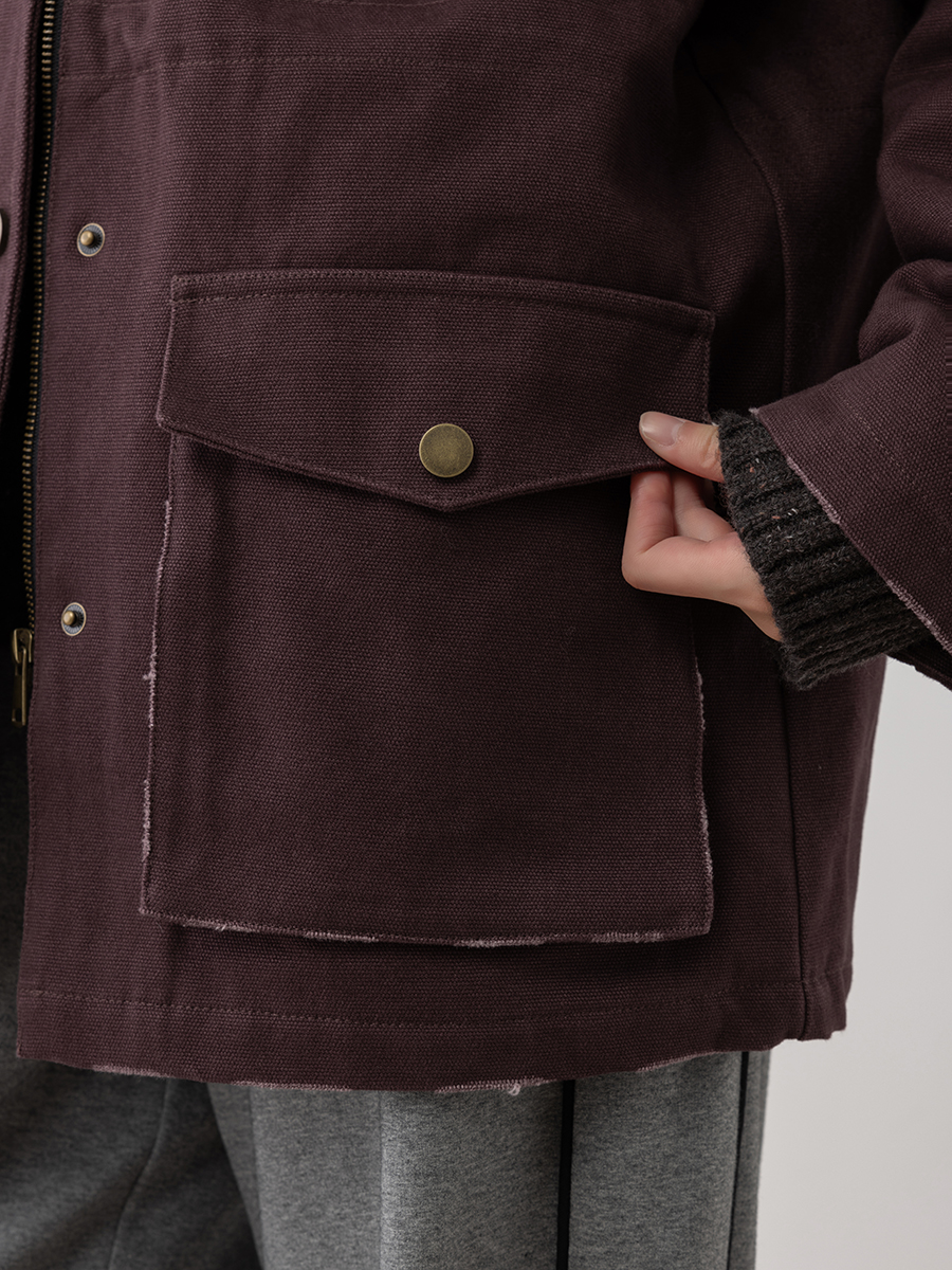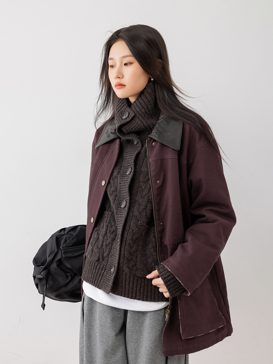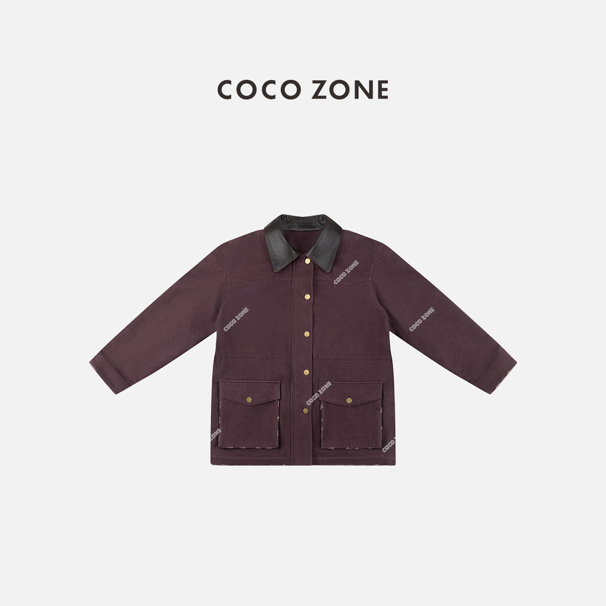 COCO ZONE 设计感翻领拼接外套复古百搭拉链上衣CC1C2118