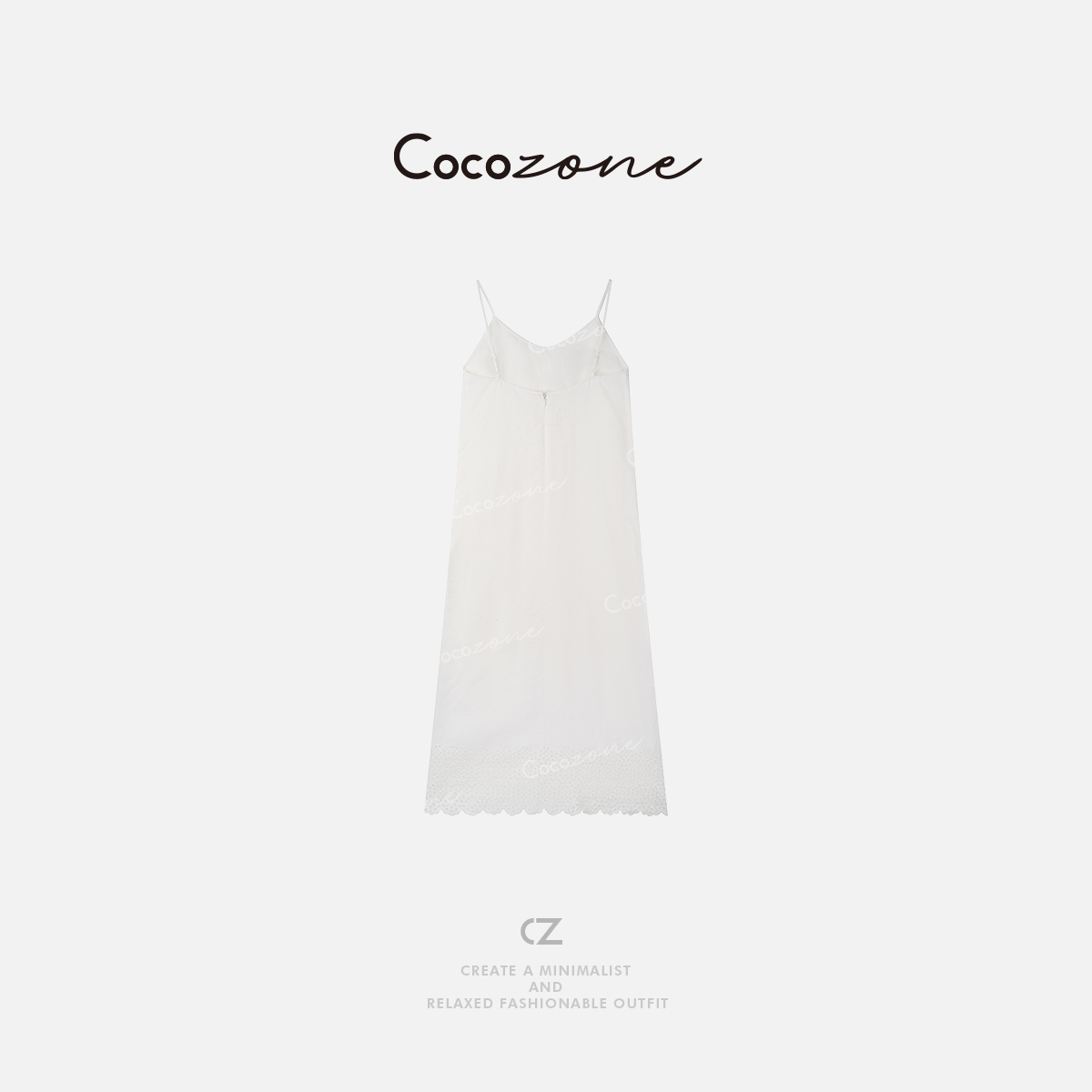 COCO ZONE 100亚麻设计感下摆镂空显瘦吊带连衣裙CD1A0323