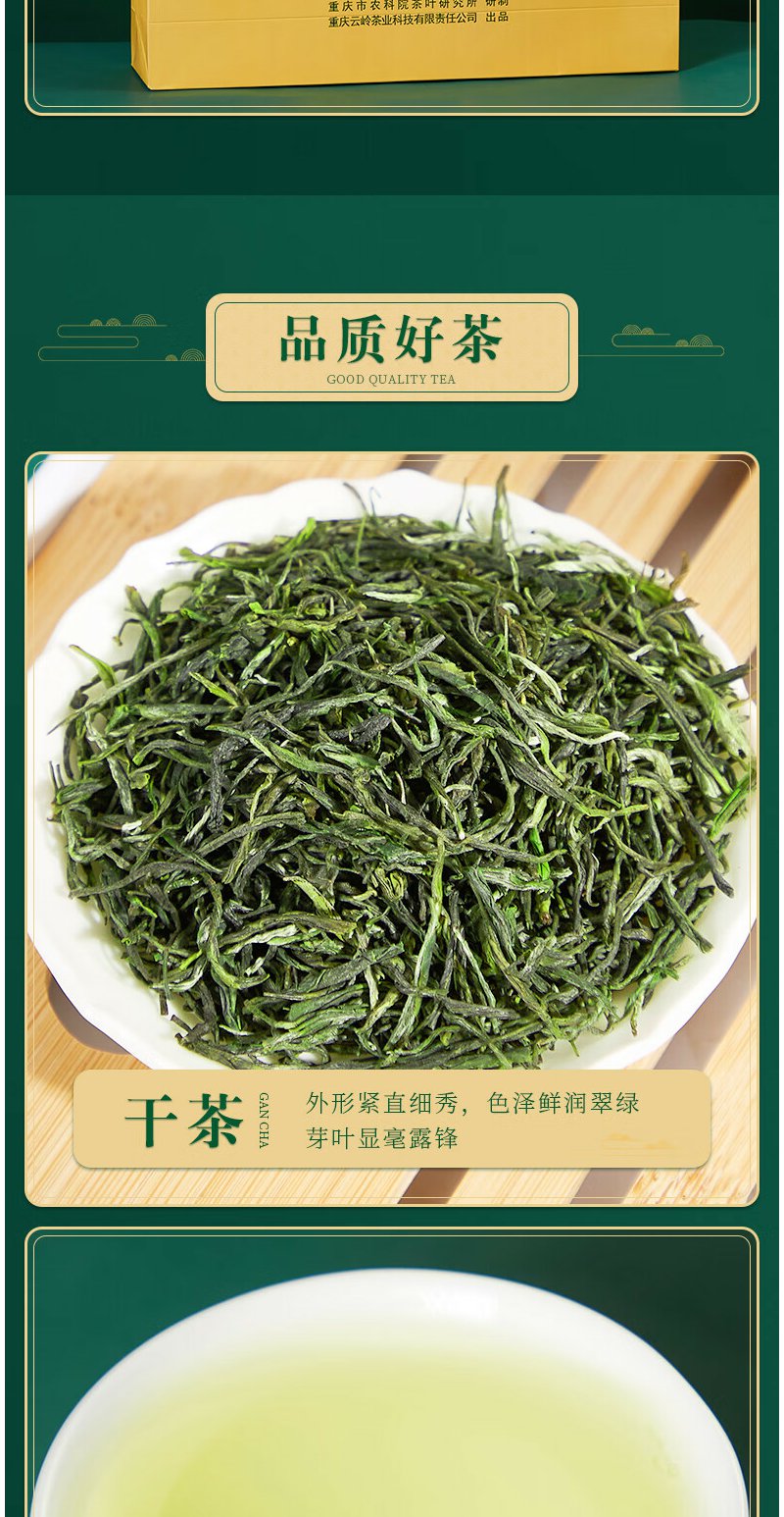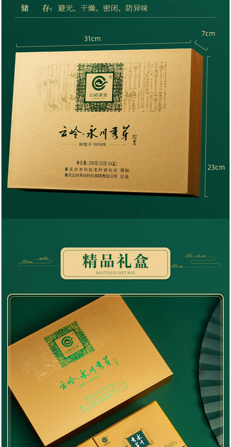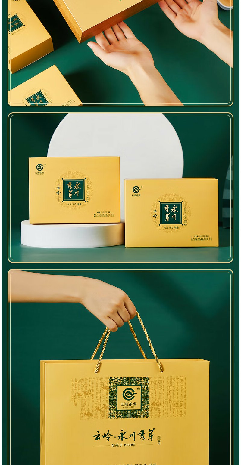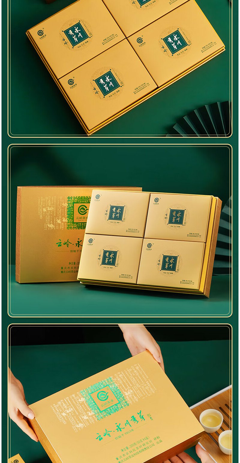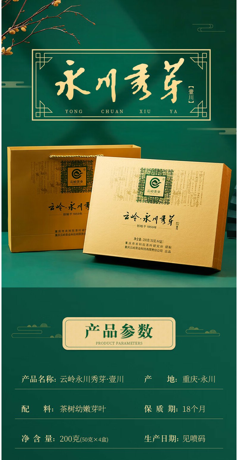 云岭茶业永川秀芽2024新茶茶叶 高端绿茶茶叶礼盒装一川重庆特产送客户 金色礼盒200g