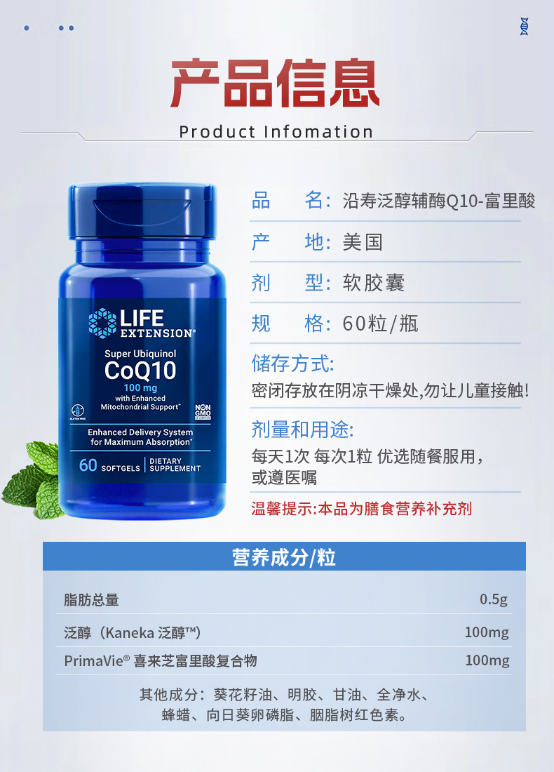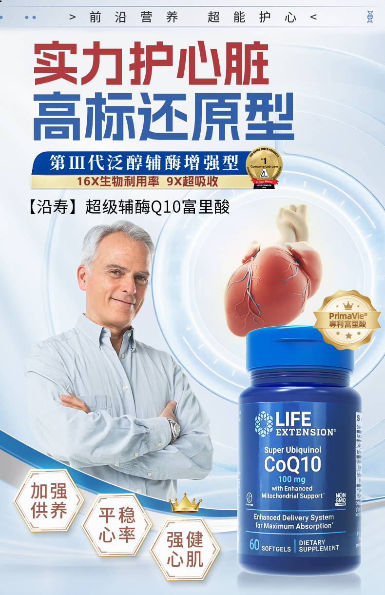 【品牌直发】沿寿LIFE EXTENSION 超级泛醇辅酶q10 30粒