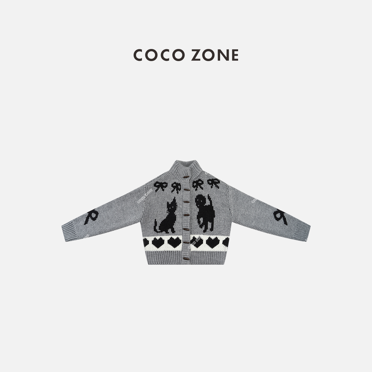 COCO ZONE 秋冬设计感立领针织衫牛角扣开衫上衣CC2C2257