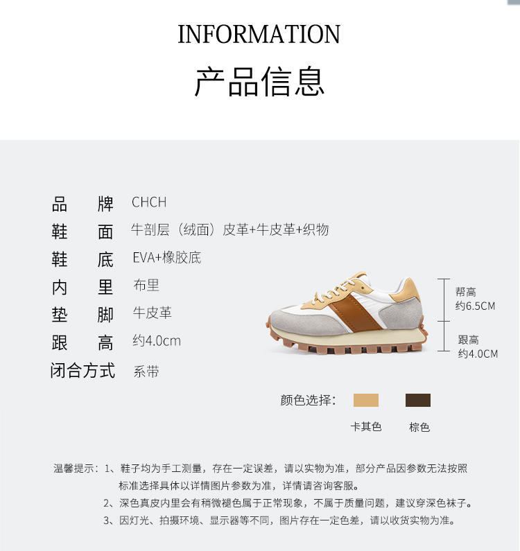 CHCH平衡鞋女鞋系带低帮厚底小白鞋39、40码【无运费险】