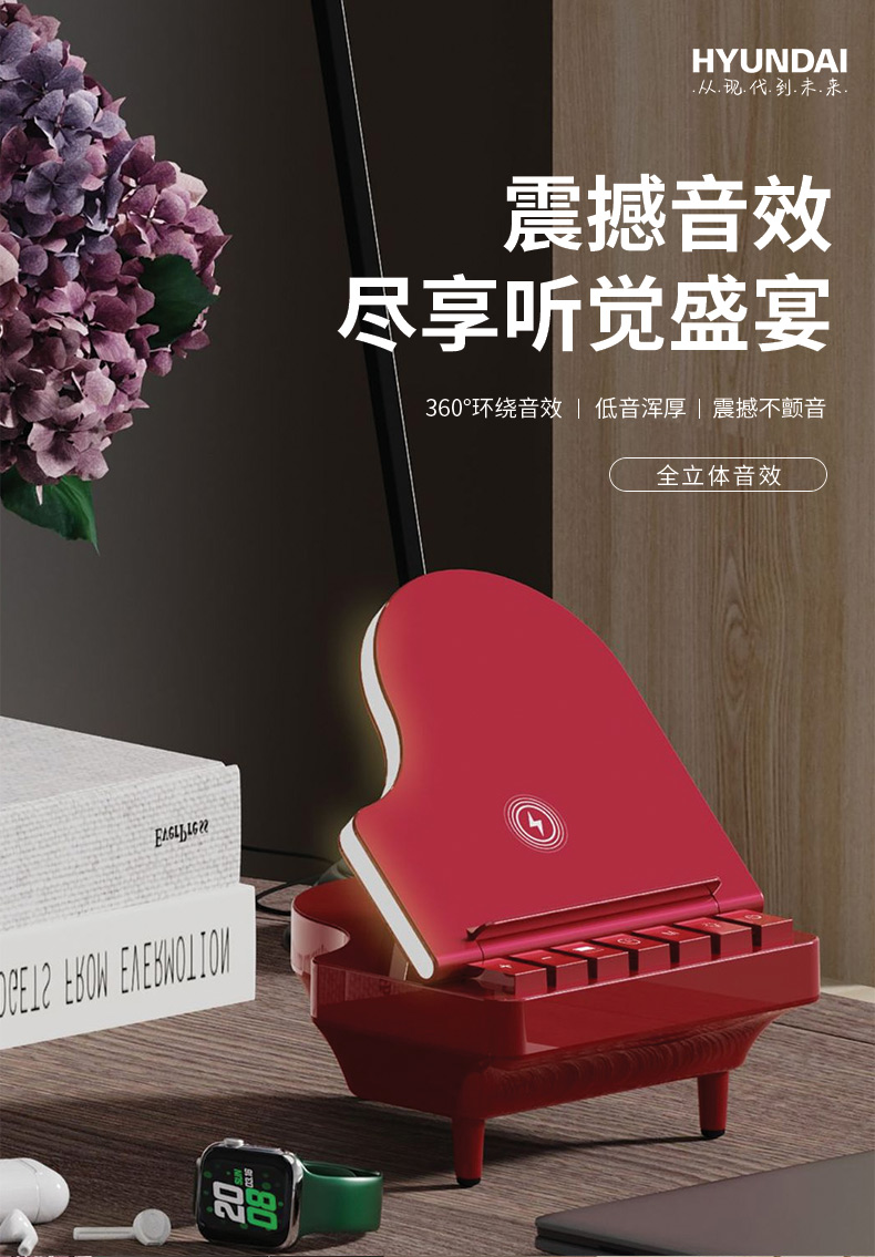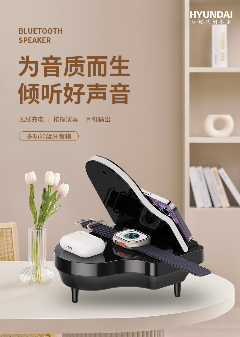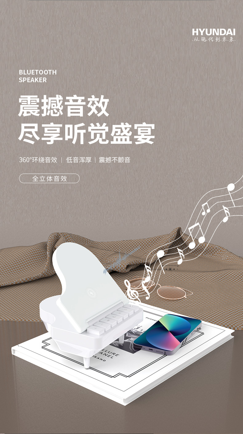 HYUNDAI钢琴蓝牙音箱YH-F023(三个无线充)