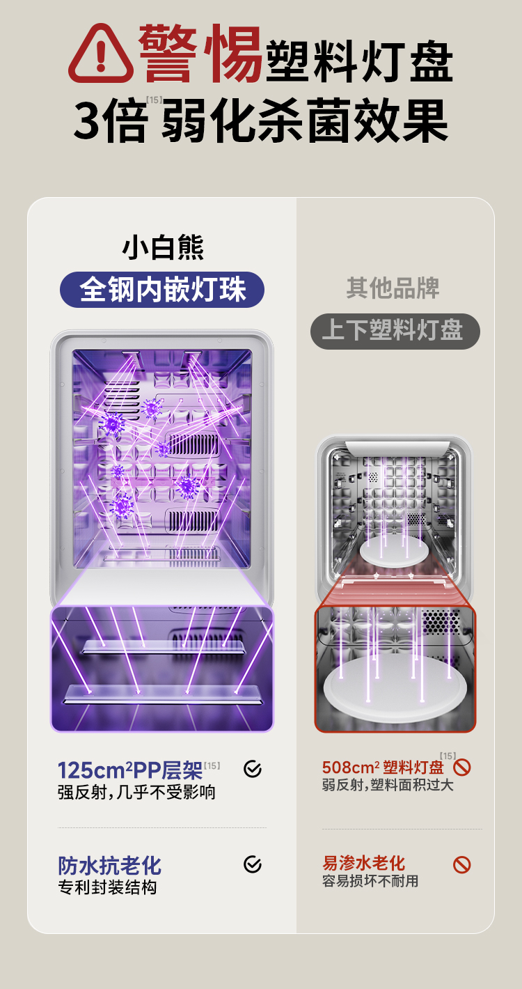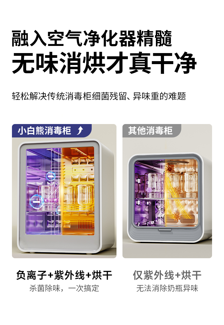 小白熊紫外线消毒烘干器 (25L-银灰色-32颗UVC灯珠-不锈钢网架)