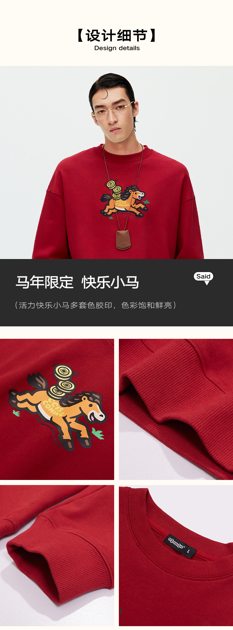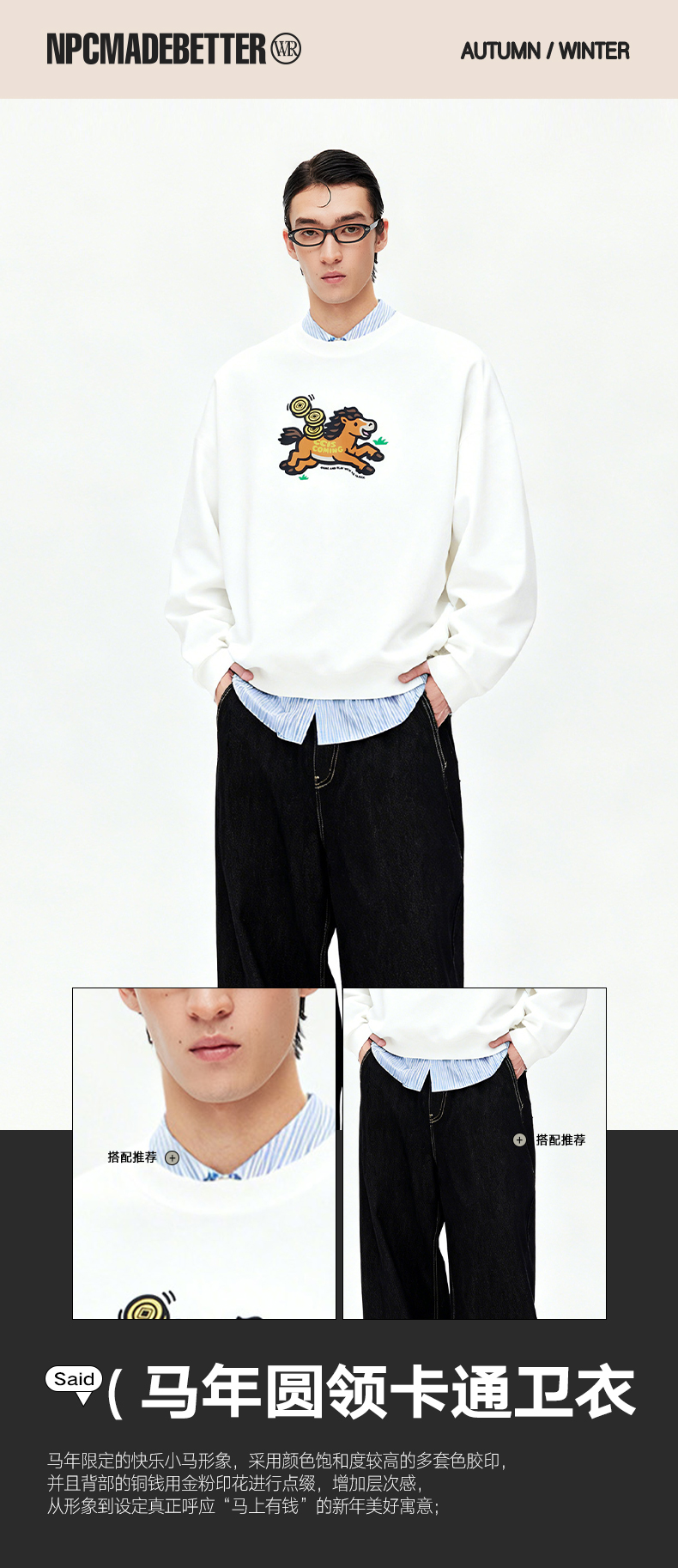 NPC潮牌CC马年限定马上来财胸前印花卫衣舒温暖皮抑菌冬CC5CST02