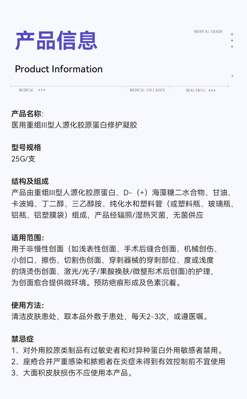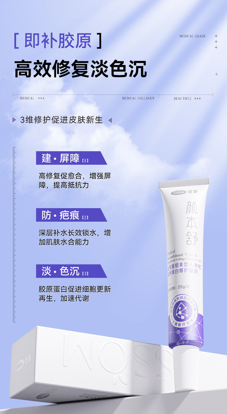 可孚颜本舒医用重组三型人源化胶原蛋白修复凝胶透明质酸钠护肤品