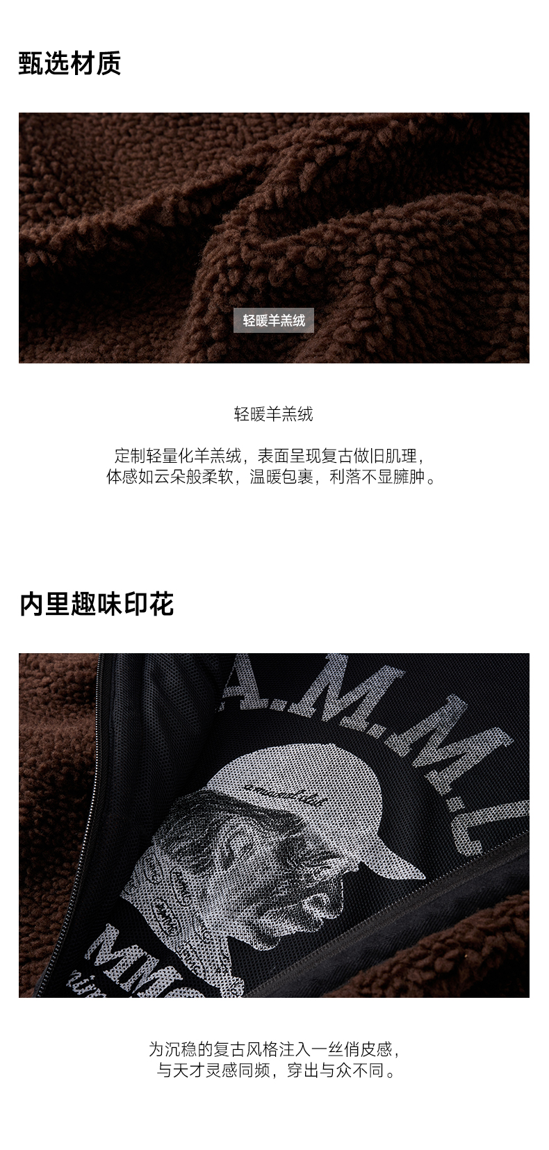 a minimal club复古仿羊羔绒立领夹克内里趣味印花轻暖冬AM5BTJ02