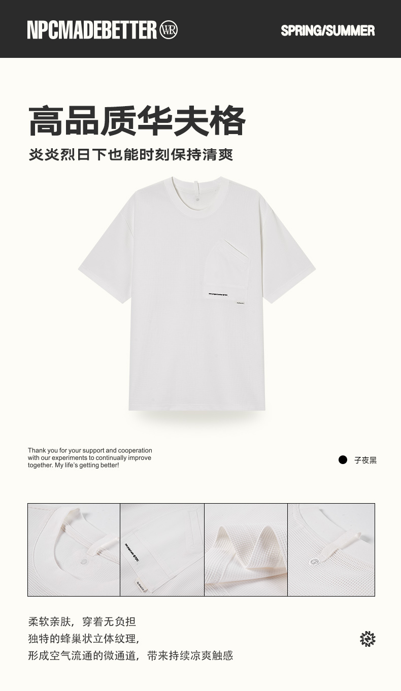 NPC潮牌前胸不对称口袋【华夫格】圆领短袖T恤休闲男NP55TE58