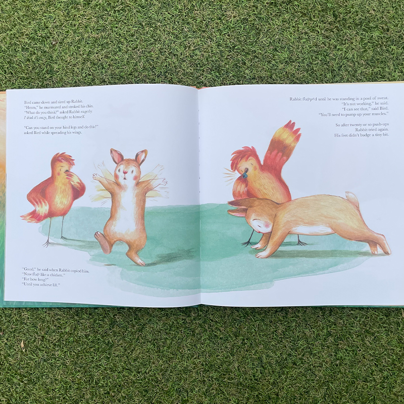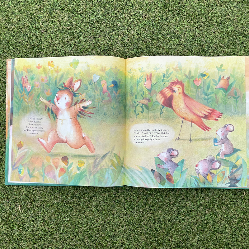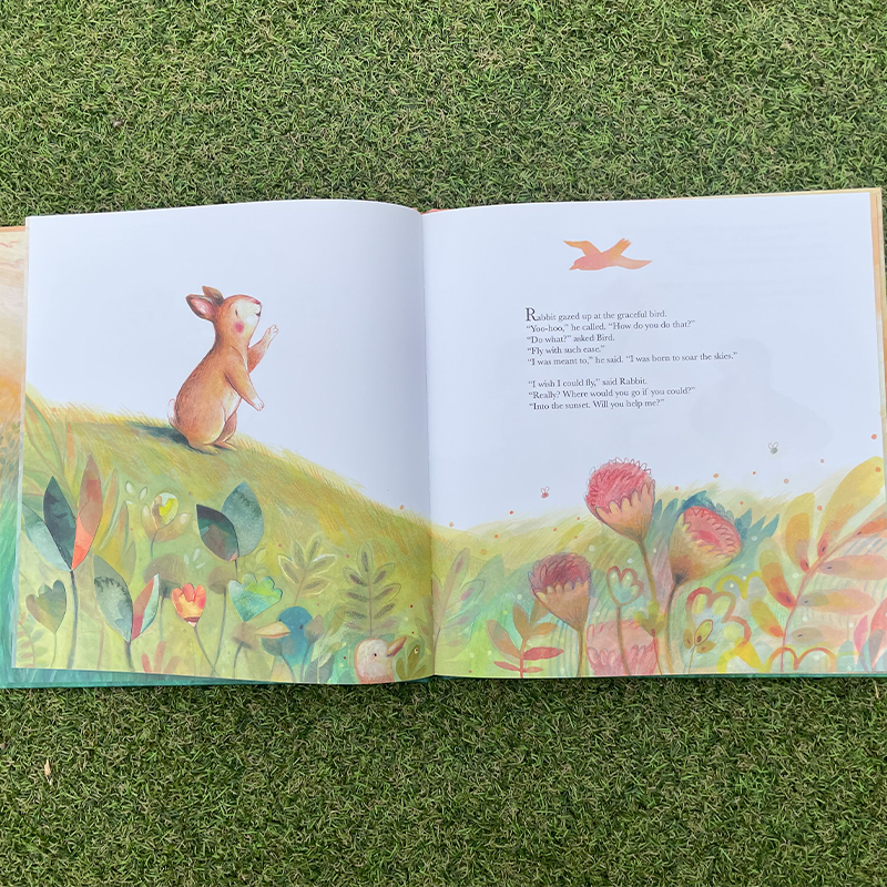 小兔子非常羡慕小鸟可以自由飞翔。我也可以像你这样飞吗?小鸟耐心的陪伴并询问:“为什么你想要飞翔呢?”小兔子回答想要看到最美的风景。小鸟用自己的经验给出了很多的建议,还是无法真正飞向天空。不过他们实现了欣赏美景的愿望!当然,小兔子能做的,引起了小鸟的好奇,你怎么可以做到挖洞的呢!发现自己的特长最重要!