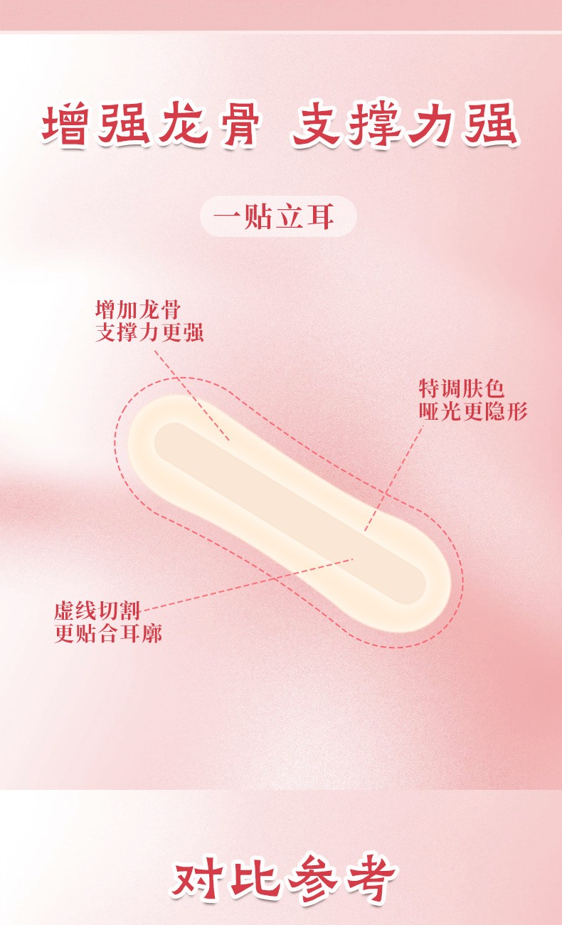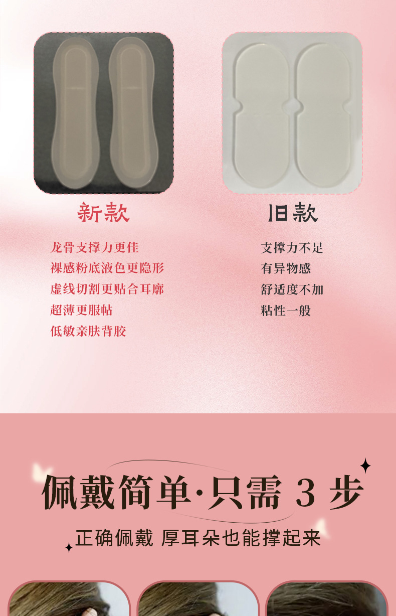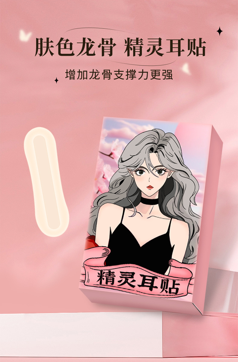 升级精灵肤色子弹龙骨耳贴 蝴蝶款12贴大脸隐形神器哑光定型硅胶贴面支撑直播