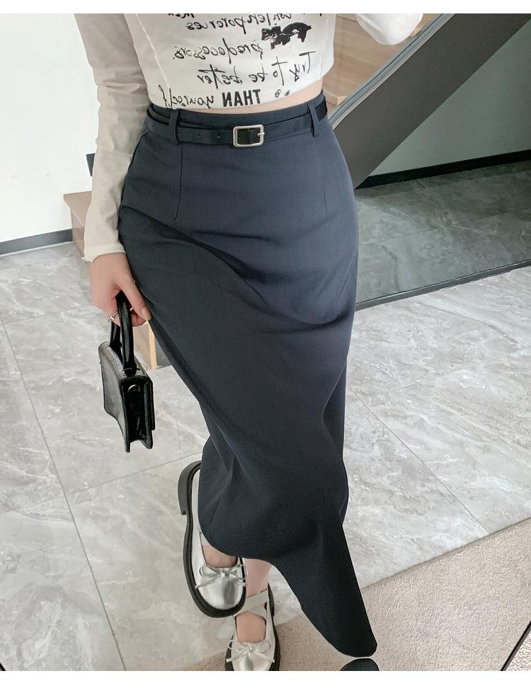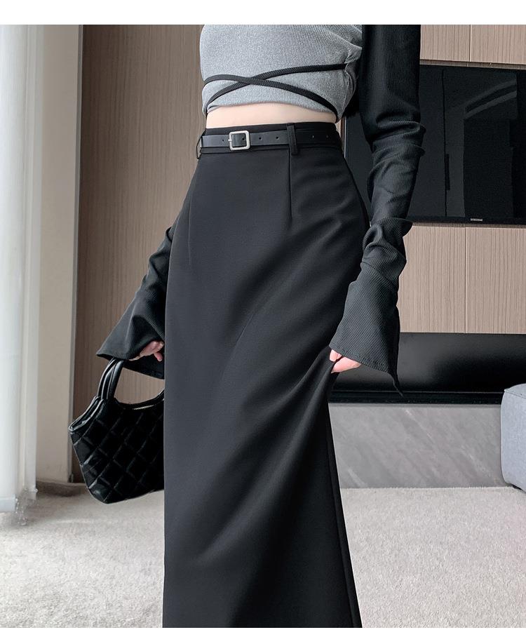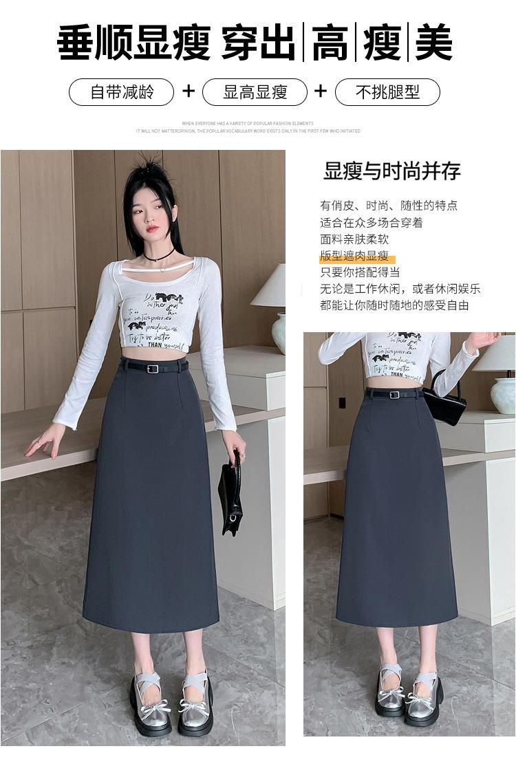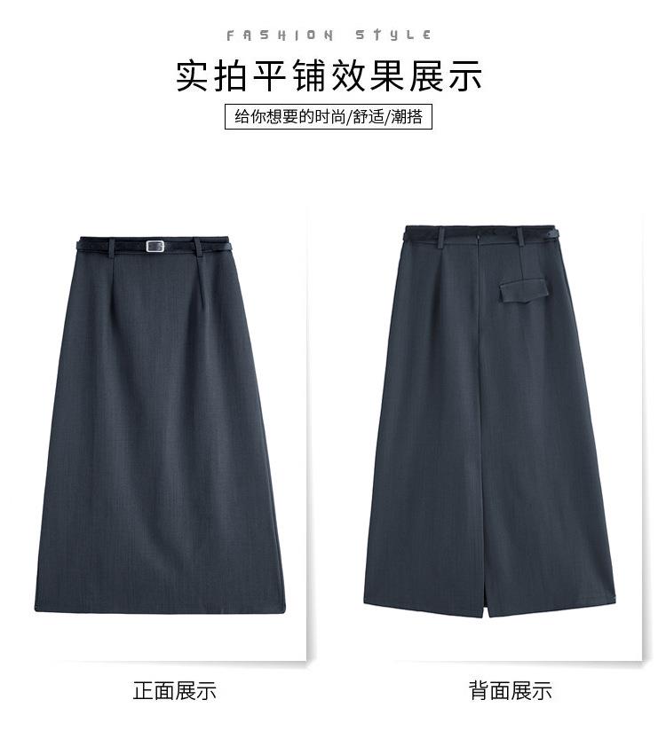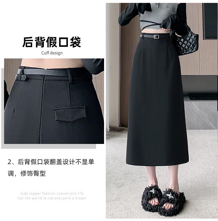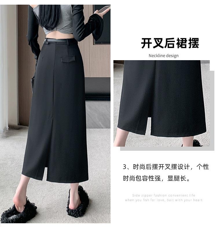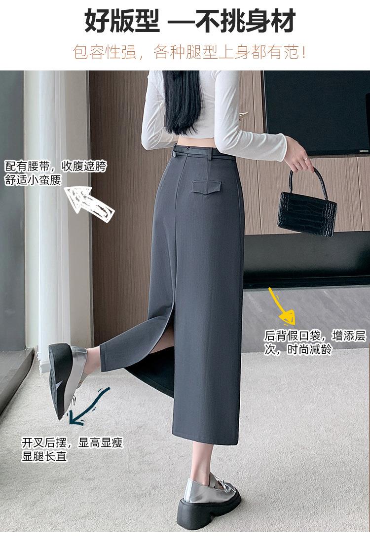 简约西装直筒包臀裙2024秋季新款修身开叉A字半身裙配腰带中长裙💕