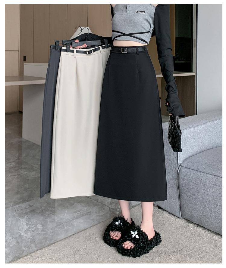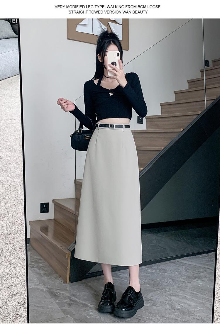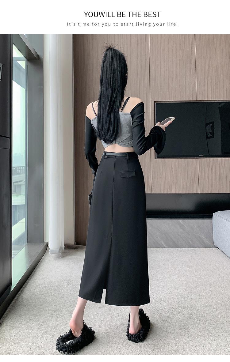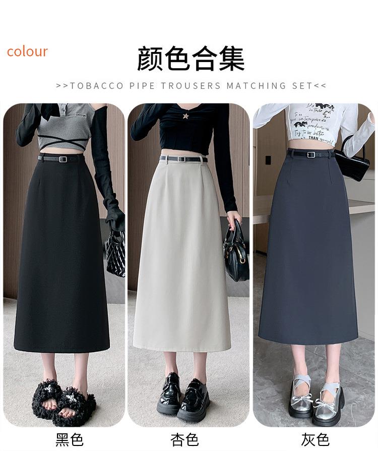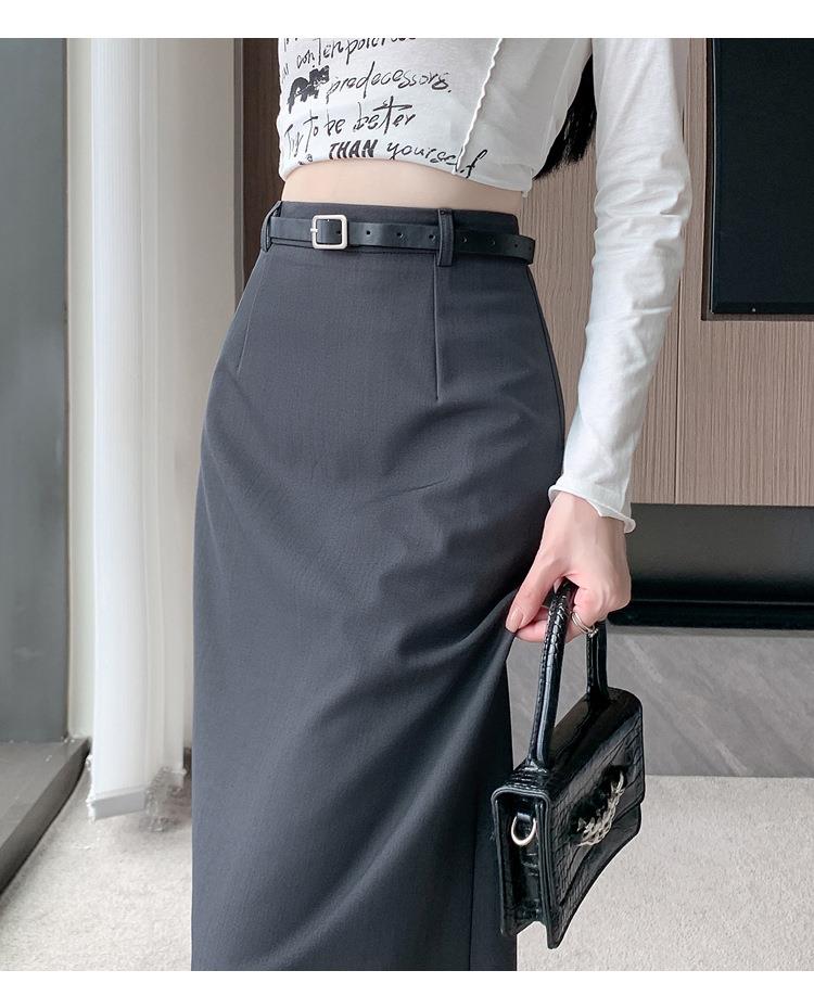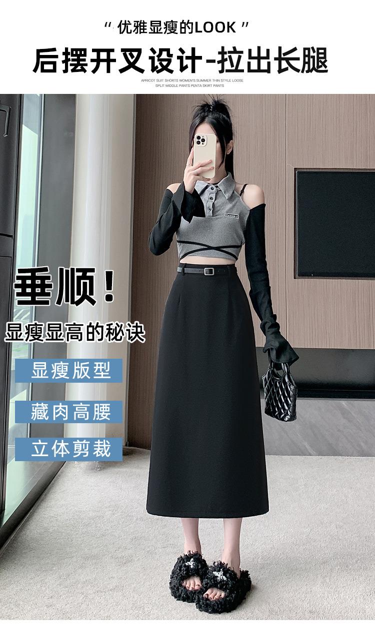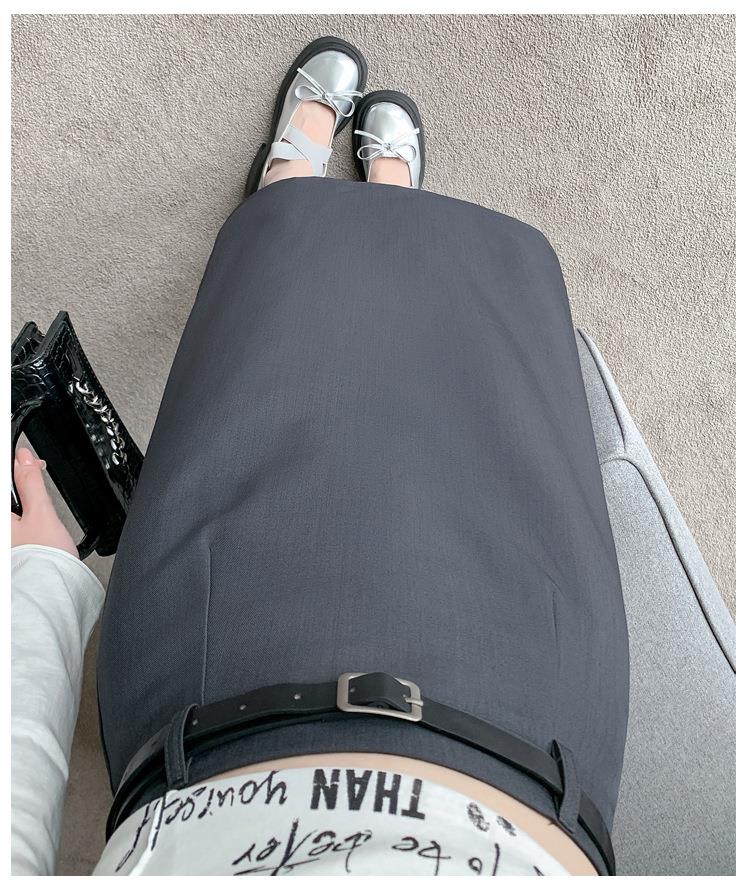 简约西装直筒包臀裙2024秋季新款修身开叉A字半身裙配腰带中长裙💕