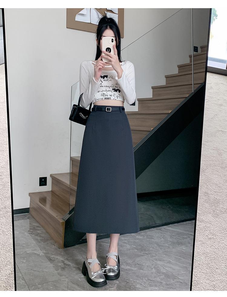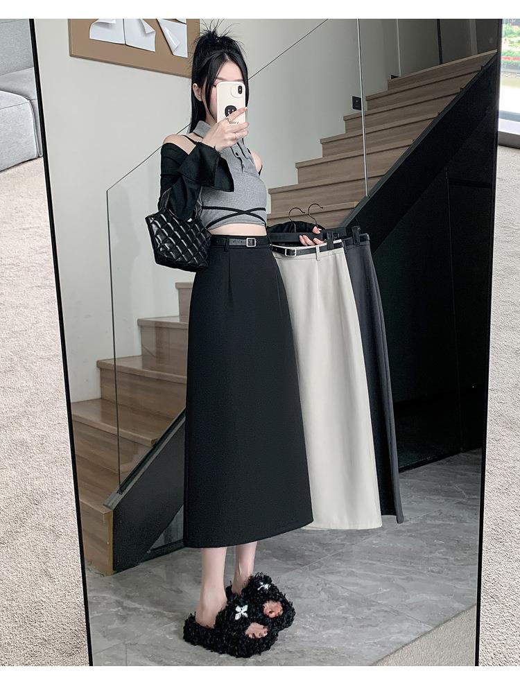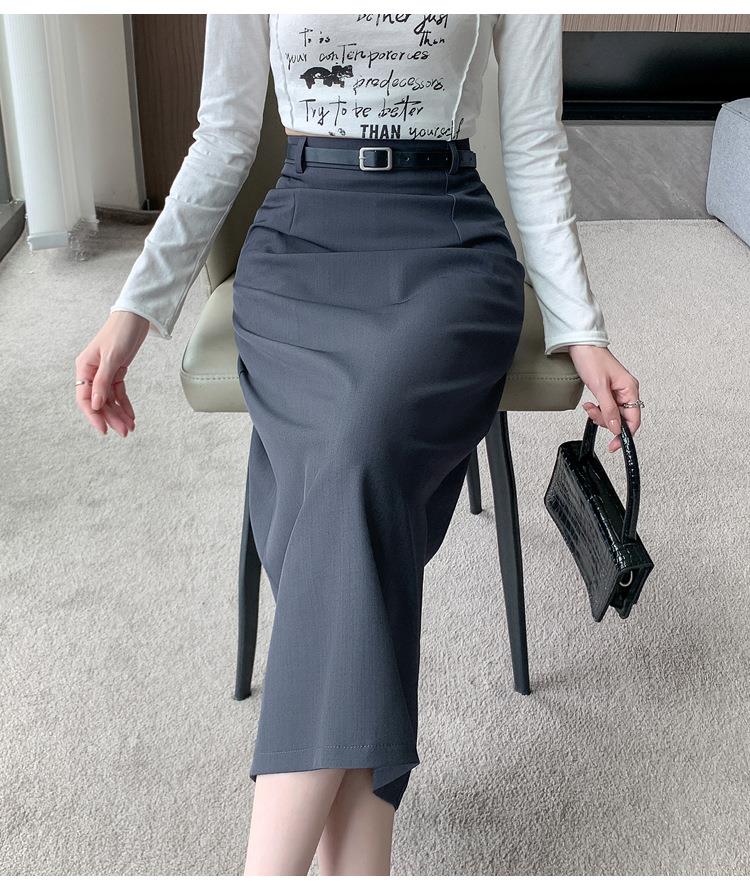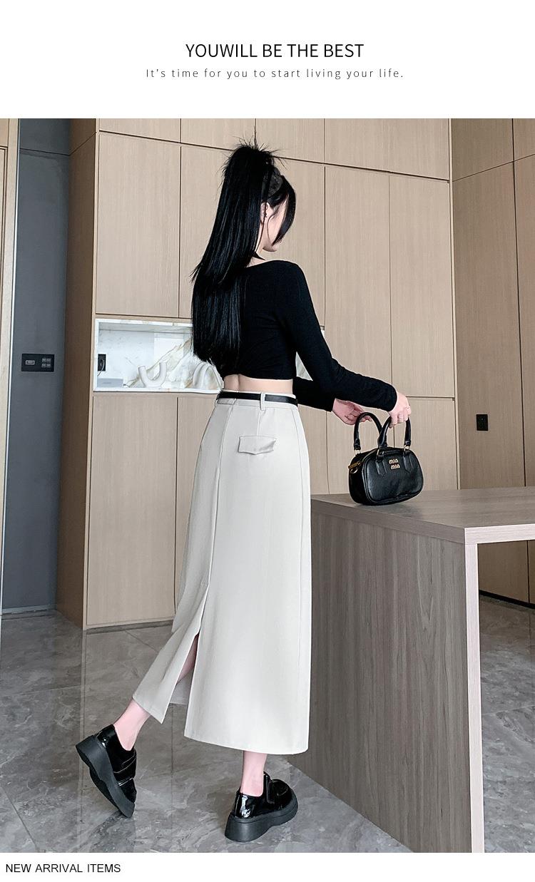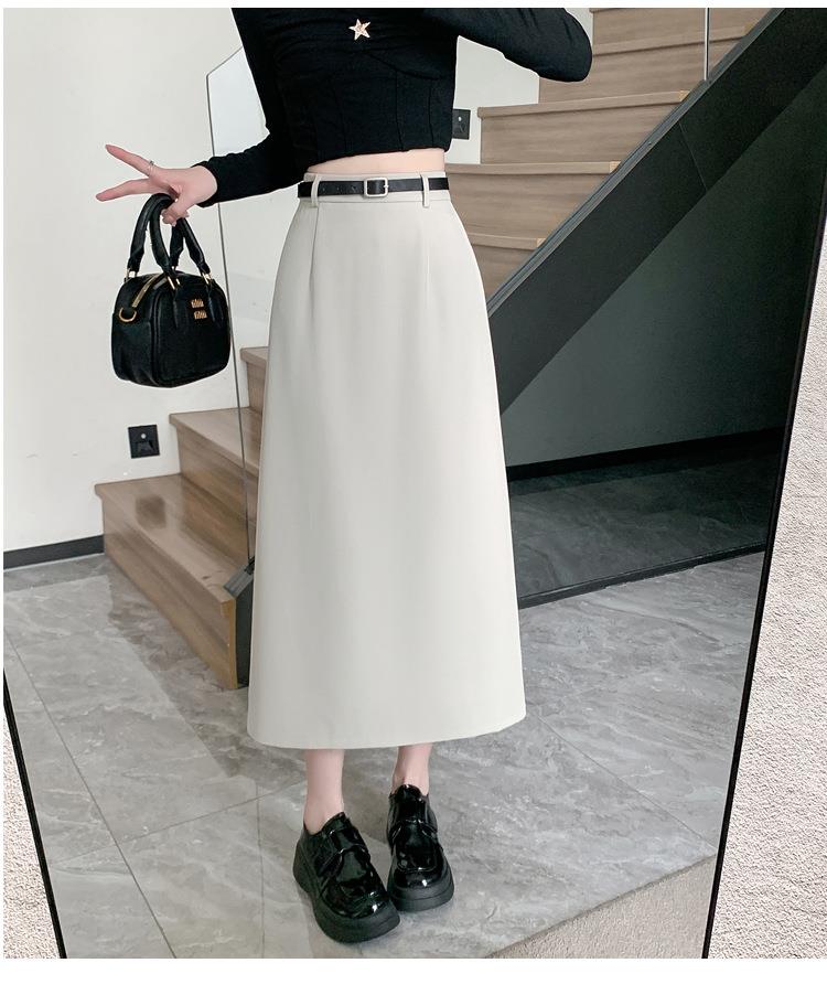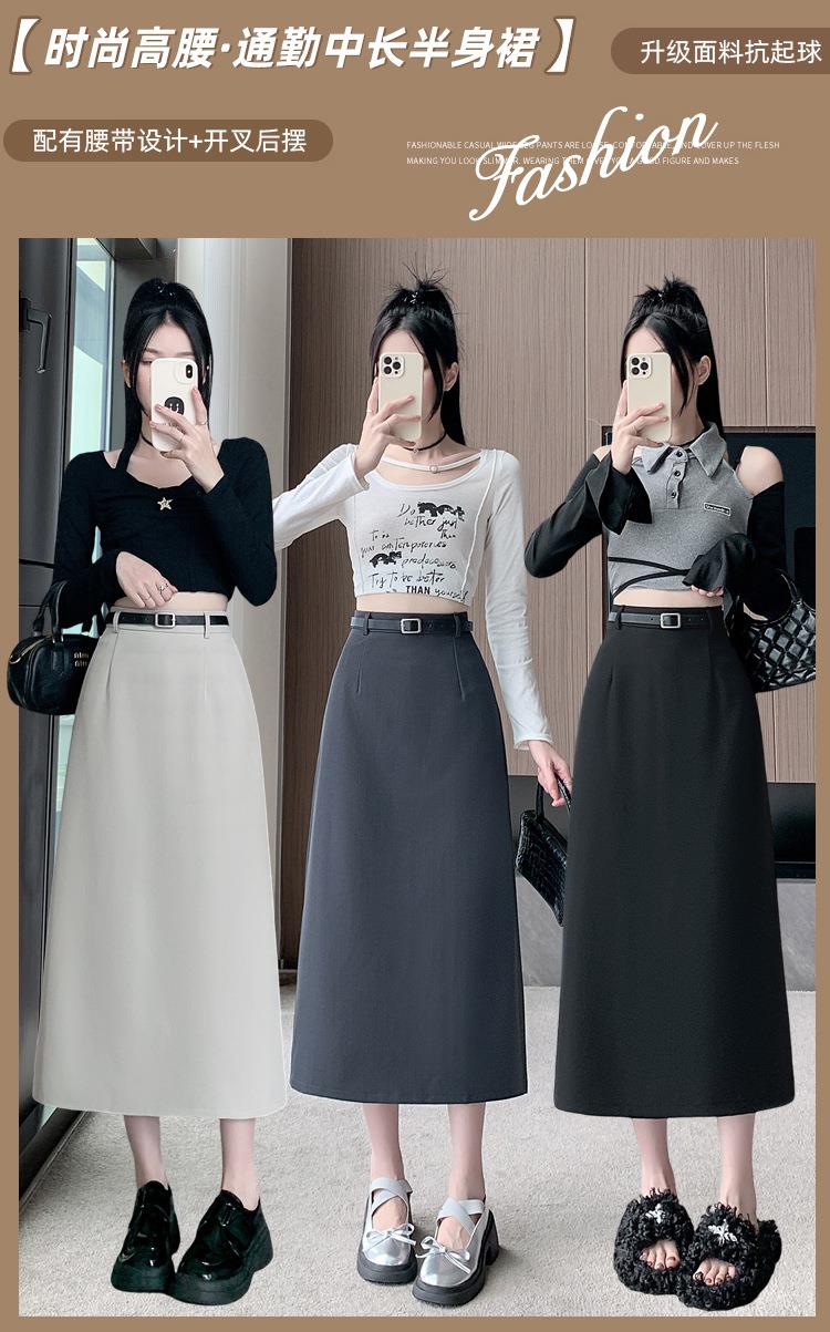 简约西装直筒包臀裙2024秋季新款修身开叉A字半身裙配腰带中长裙💕