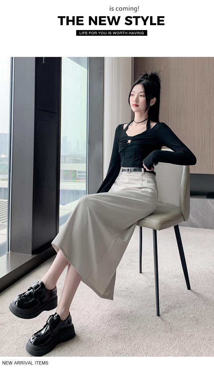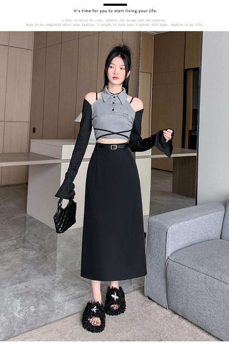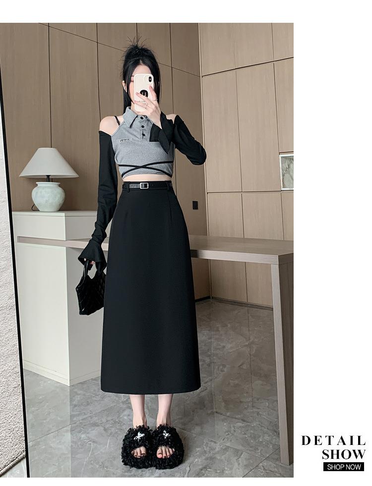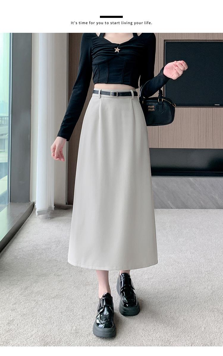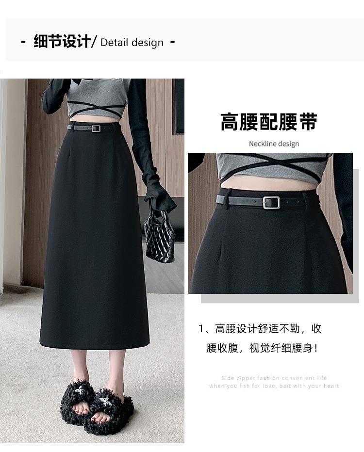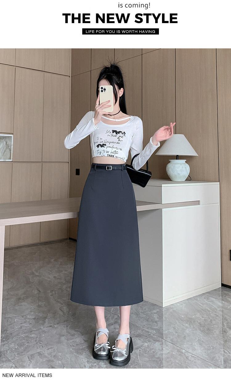 简约西装直筒包臀裙2024秋季新款修身开叉A字半身裙配腰带中长裙💕
