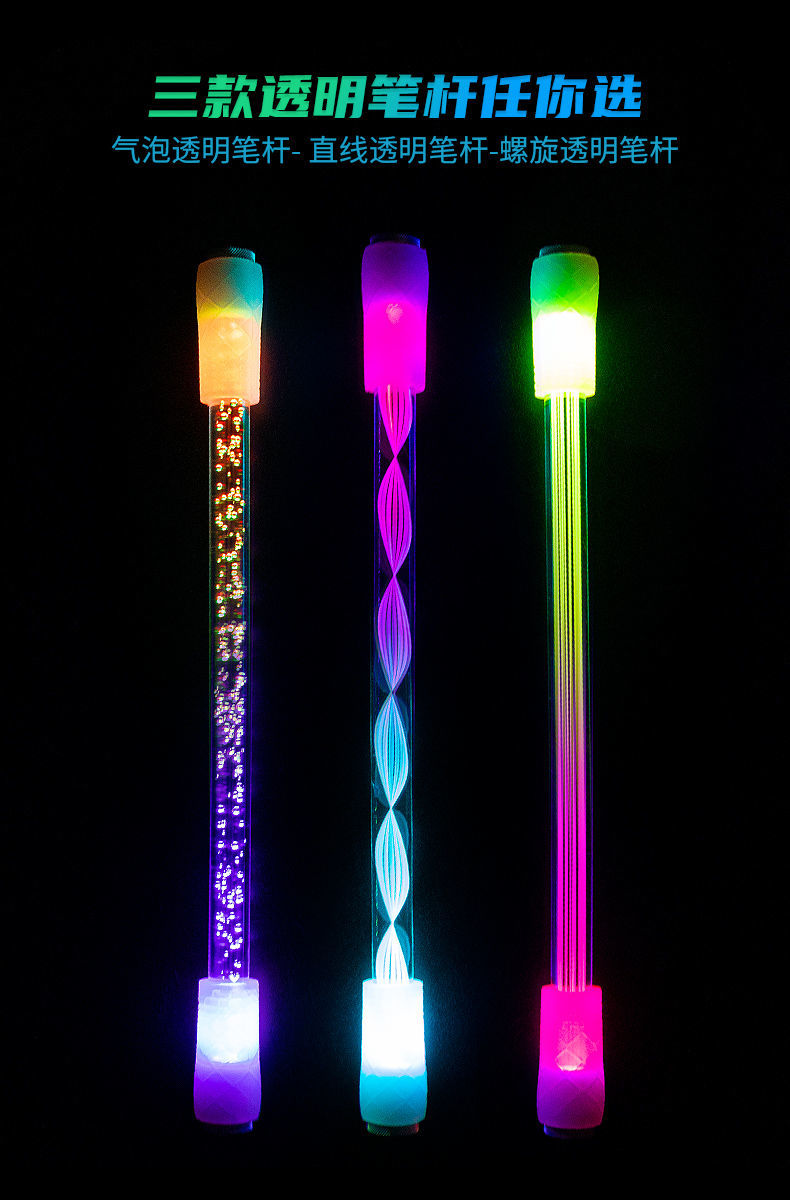 转笔者发光转转笔亚克力高透笔杆七彩LED芯片灯专业炫酷减压转笔