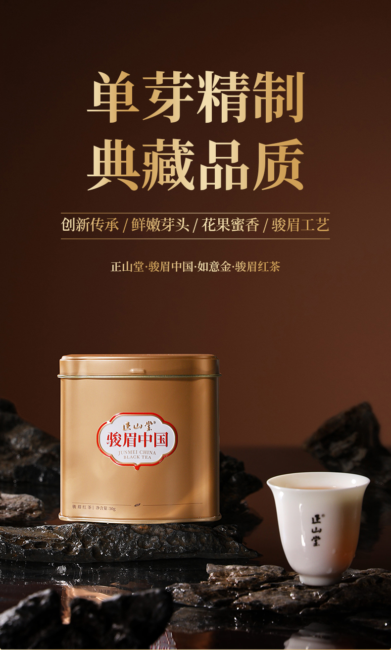 正山堂骏眉中国 如意金 特级红茶十大产区茶叶正宗单芽正品罐装50g