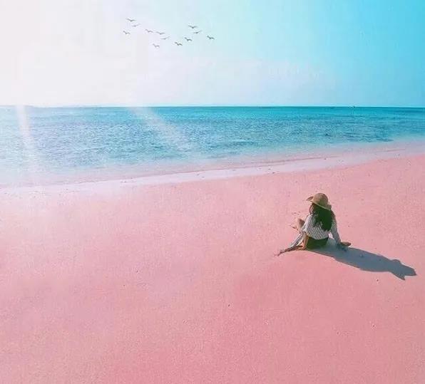 梦幻的粉色沙滩可以让人打开内心的沉重枷锁,暂时告别生活的纷扰和忧虑,