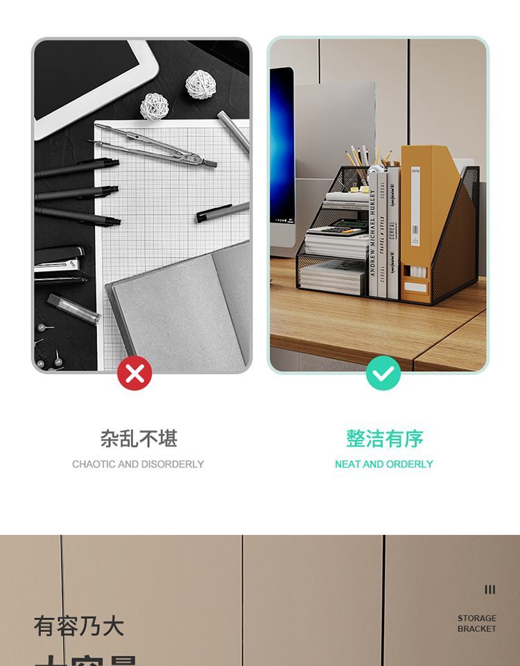 桌面办公a4文件收纳架档案书立资料架整理框文具书本多功能分类栏