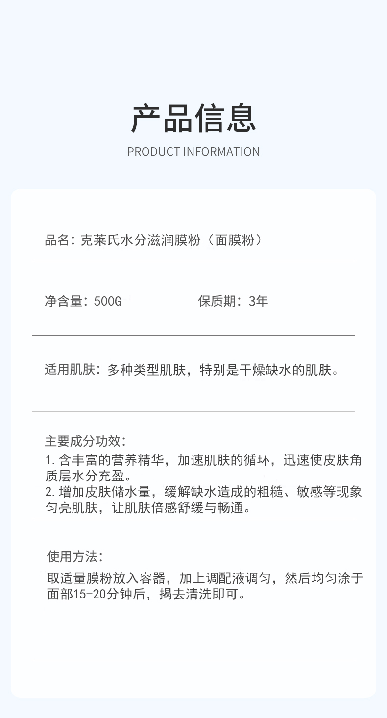 克莱氏水分滋润膜粉500g软膜粉涂抹面膜