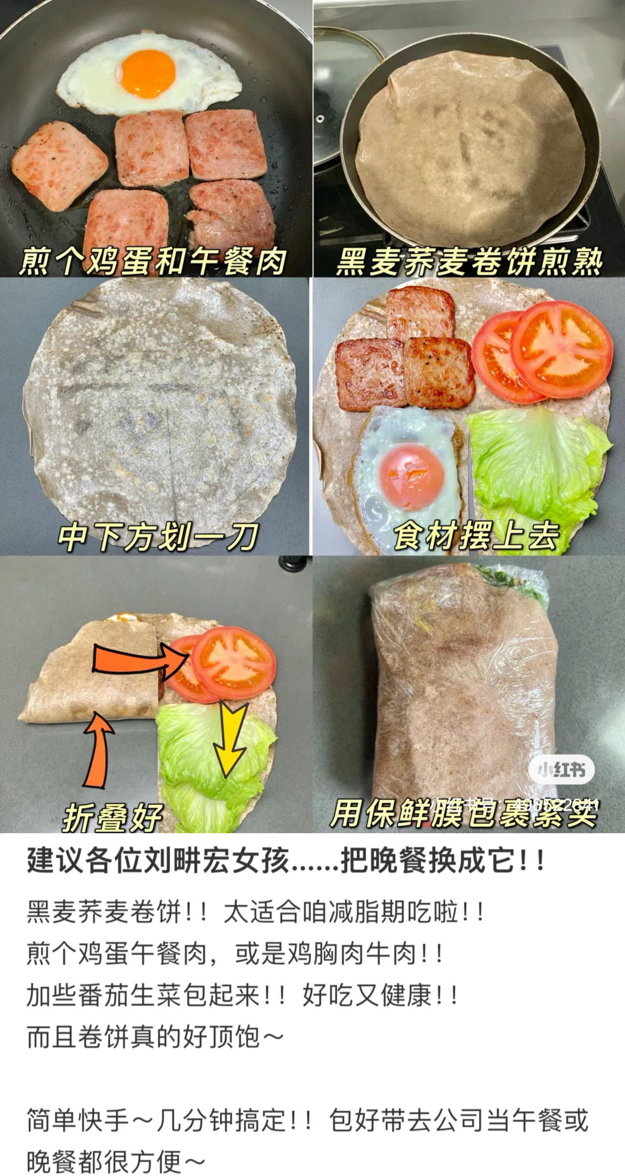 吃法也是多种多样,稍微加热直接吃,满口都是粗粮本身的甜味!当然,最推荐的当然是卷万物了,番茄、胡萝卜丝、鸡胸、肥牛、鸡蛋,或者是前一天的剩菜,一卷,干净快手的主食就完成了!因为是全粗粮,担心血糖的朋友也可以放心吃,也可以和荞麦刀削面、藏血麦面、红海米饭,这些换着吃,保证好吃不单调!当然,不减脂的甜口人也可以卷上红糖、芝麻、红豆泥、奶酪或各种果酱,也相当可以!