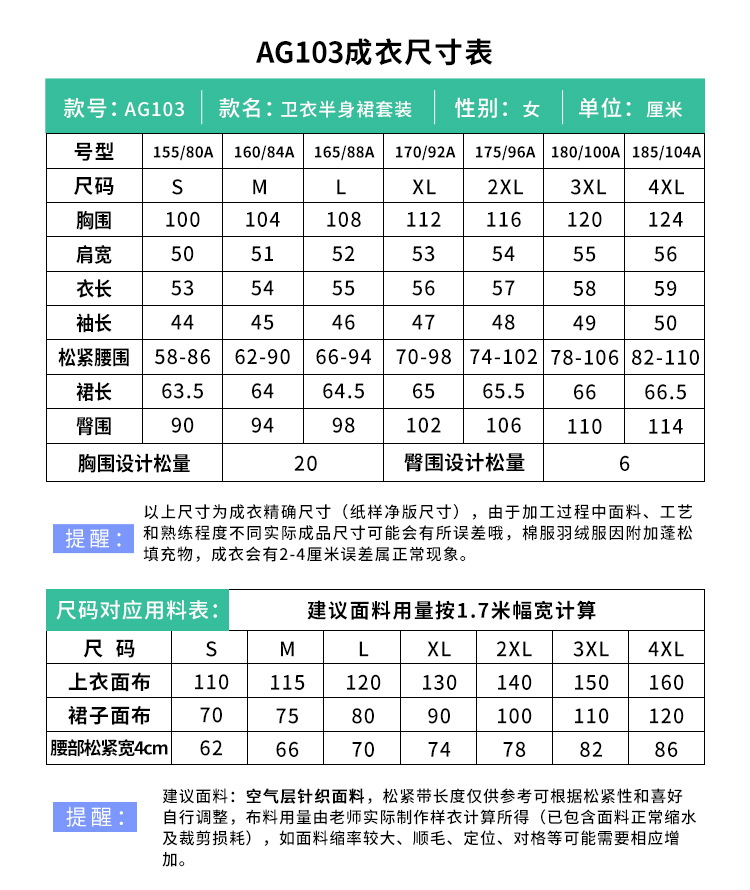裁缝学苑 AG103卫衣纸样套装半身裙女装衣服装制版打版样板裁剪图