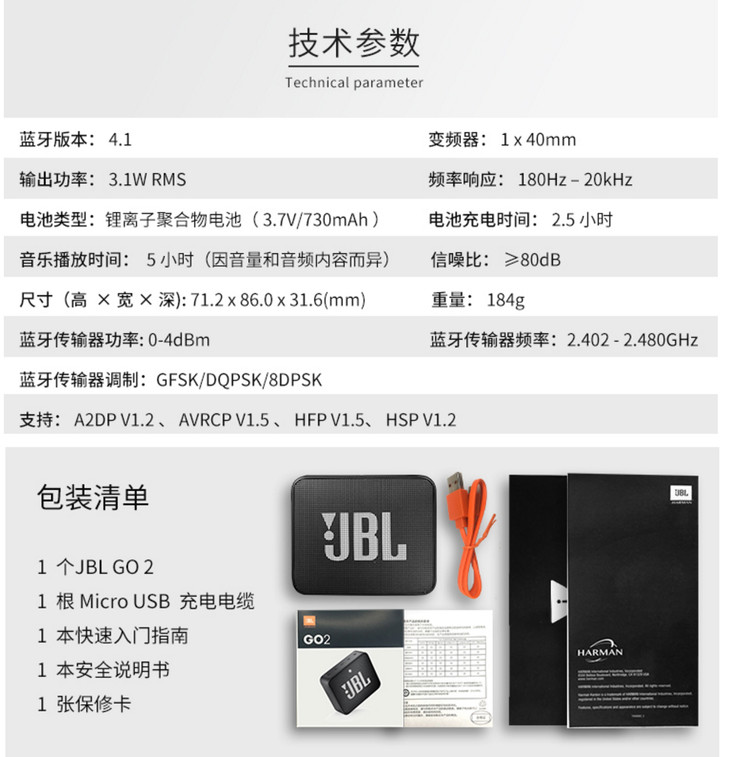 【正品国行 分期付款】JBL GO2 音乐金砖二代 蓝牙音箱 低音炮 户外便携音响 迷你小音箱 可免提通话 防水设计