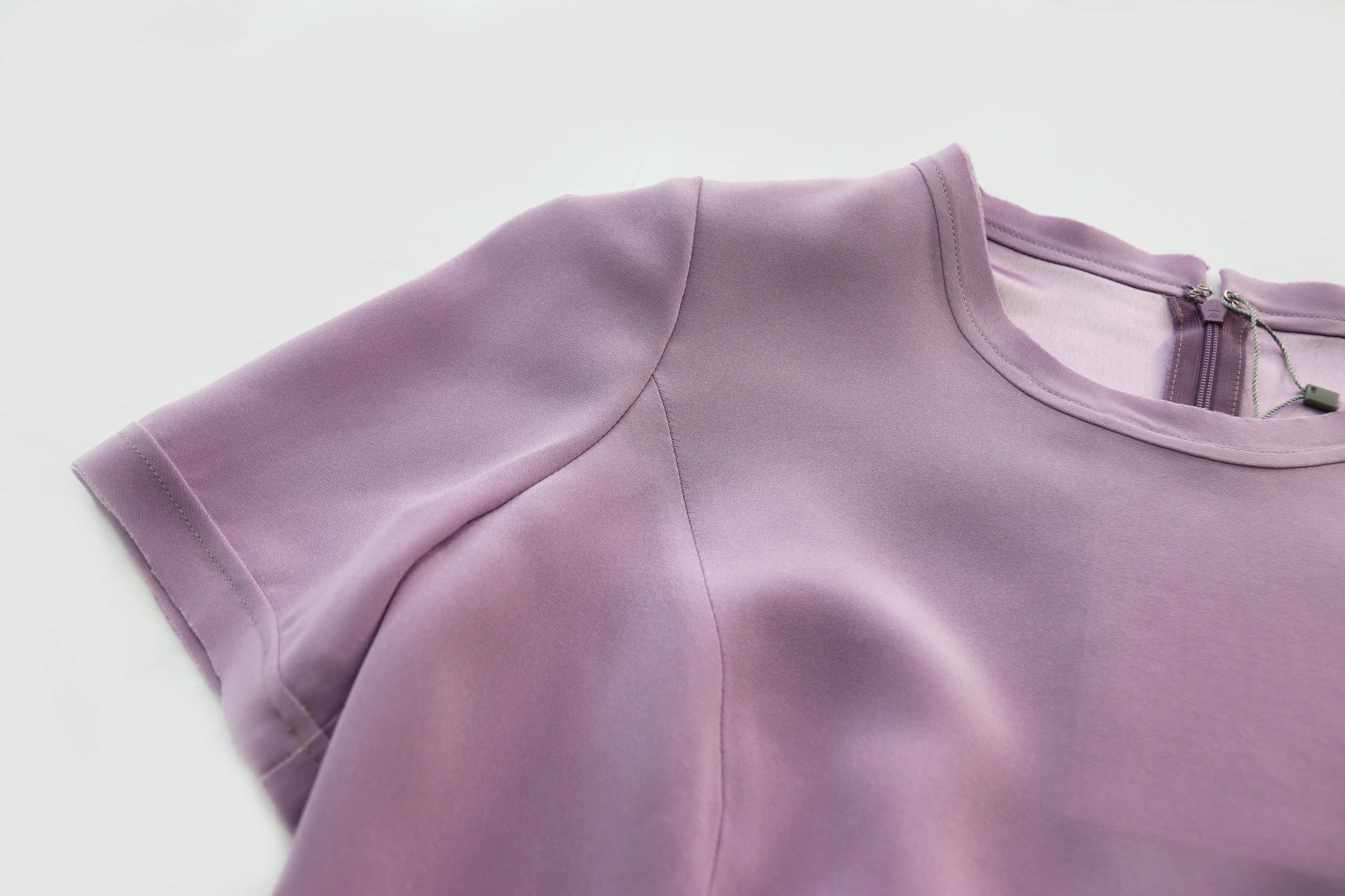 春夏时尚-圆领短袖荷叶摆修身女士通勤 纯色短款上衣套衫 1802018
