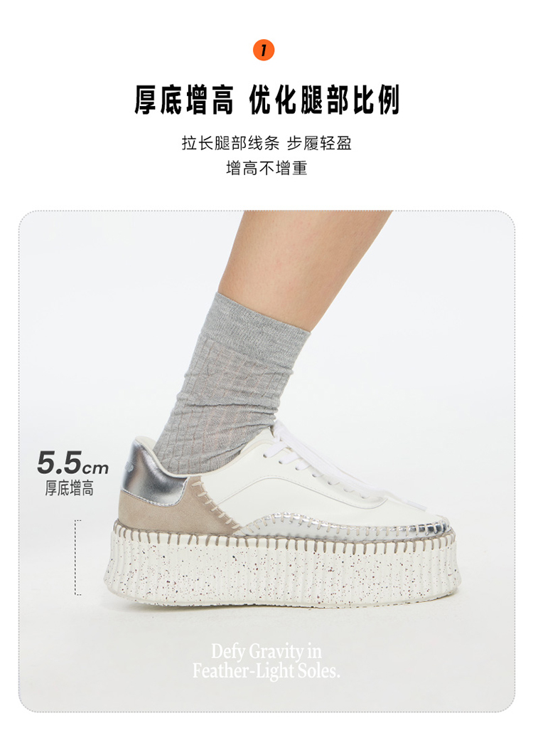 COOLCHAP 重奏系列-5.5cm吐司厚底小白鞋——5.5cm增高不增重,妥妥小个子救星!