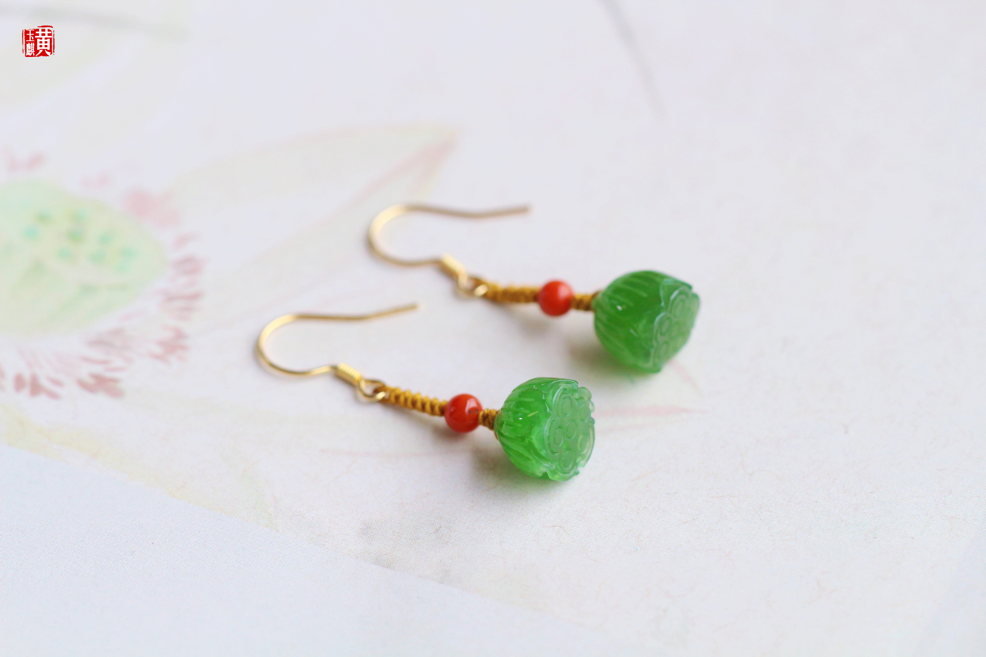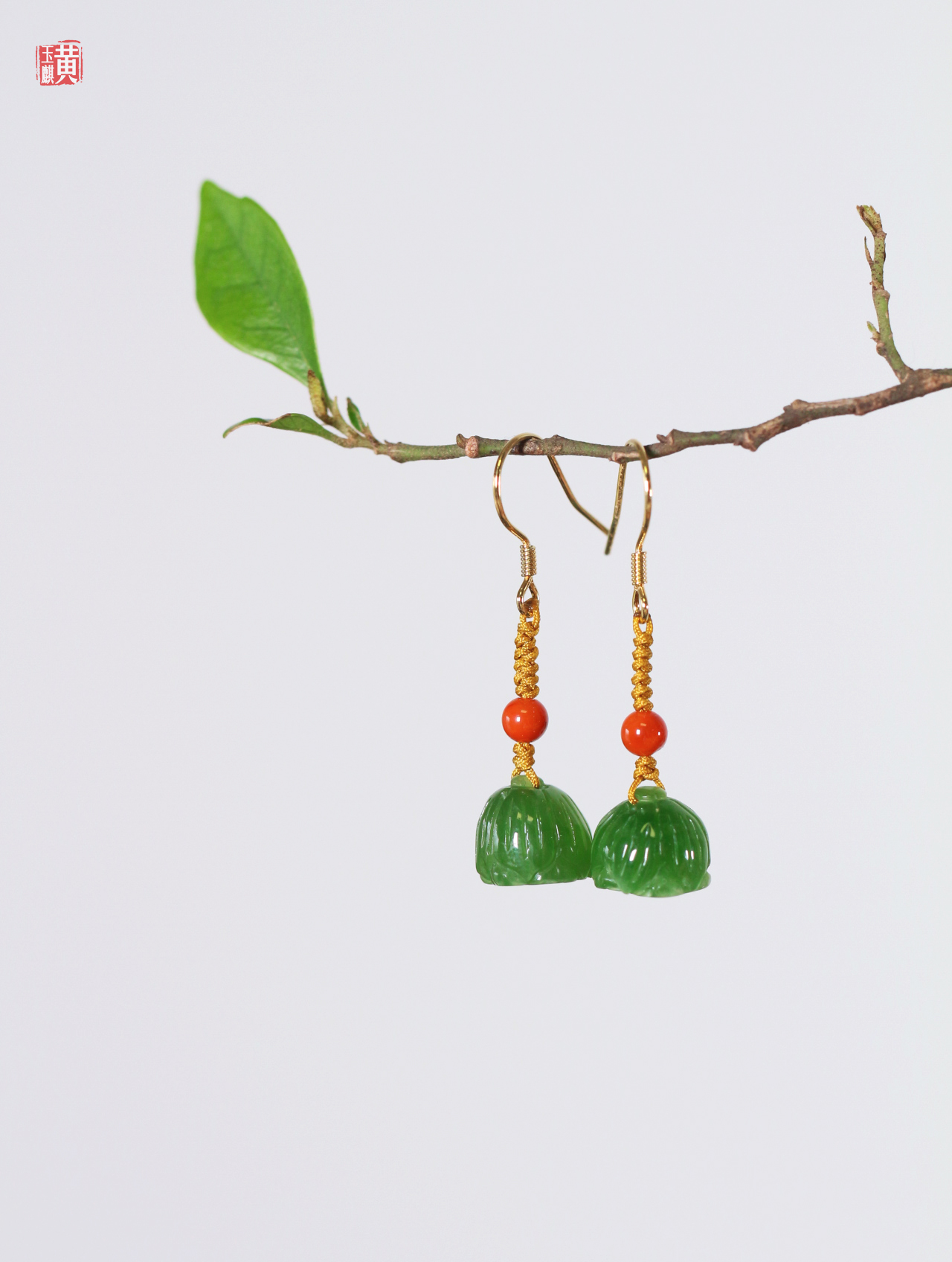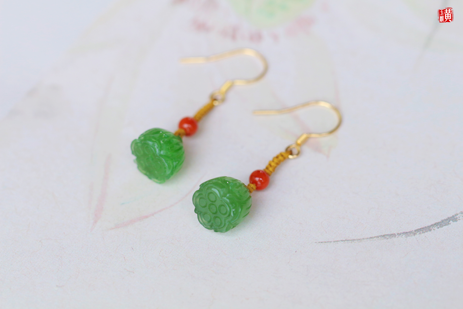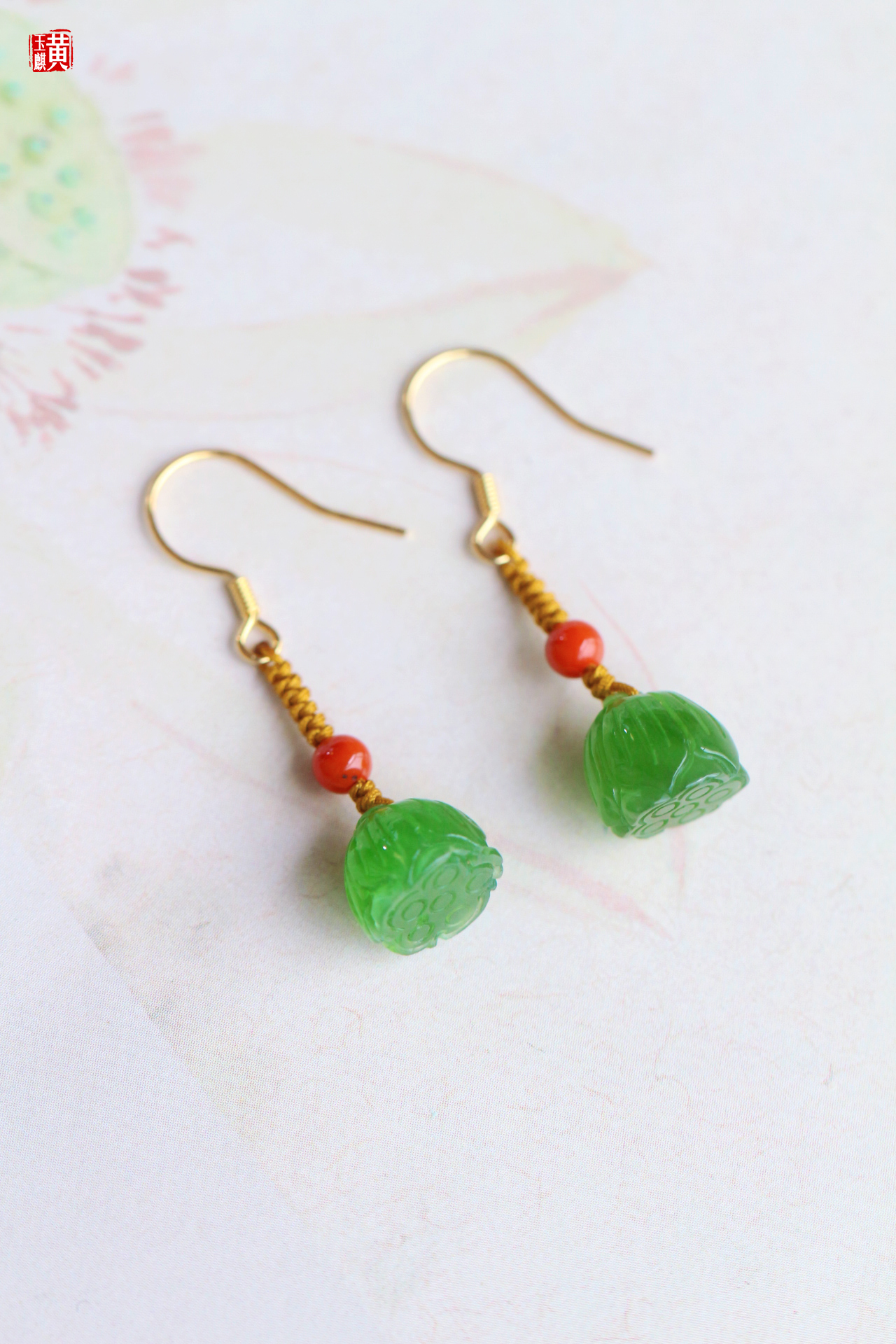 [ 清欢系列 ] 碧玉莲蓬设计款耳饰 | 925银镶、搭配南红