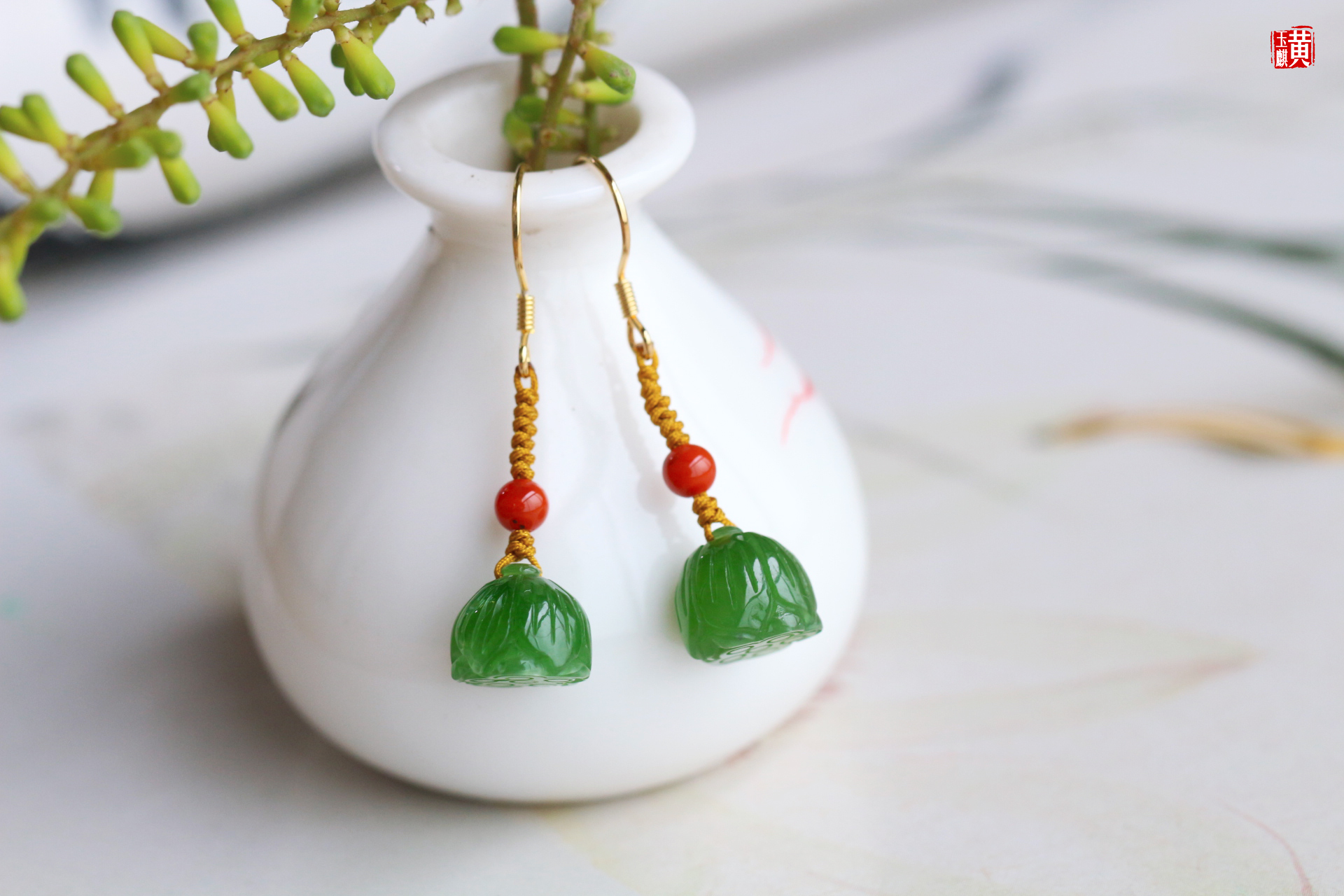 材质:和田碧玉 / 925银镶 / 南红珠子