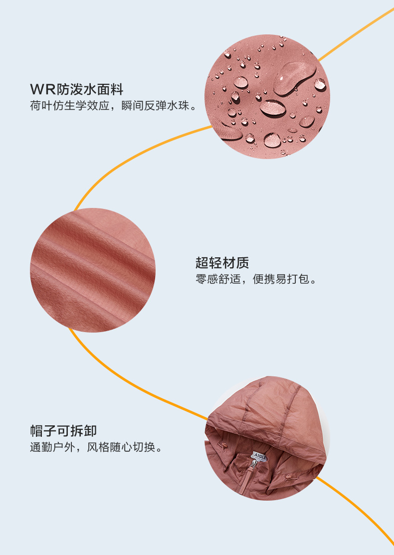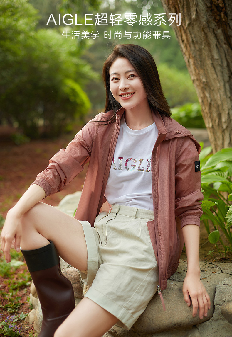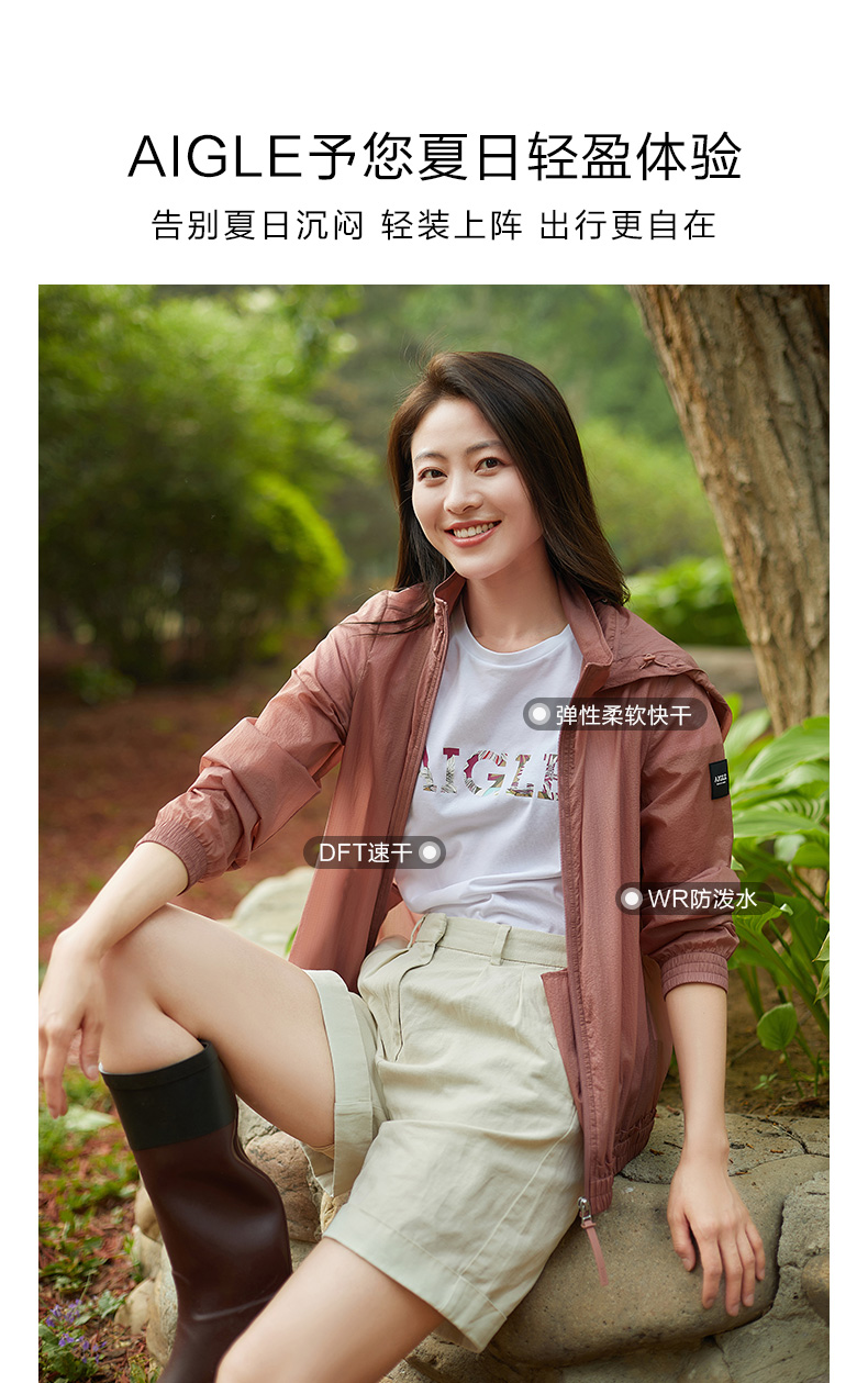 【4F】AIGLE艾高春夏新品CATHRYN女士轻量防泼水易打包夹克户外皮肤衣