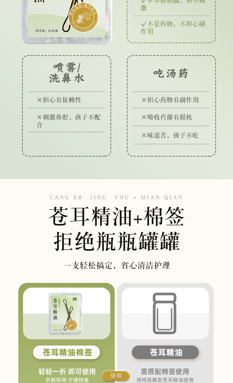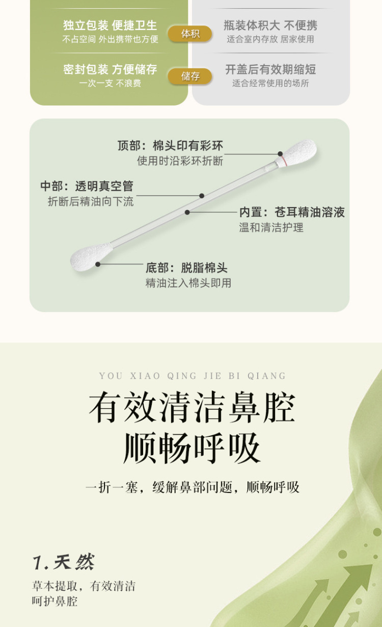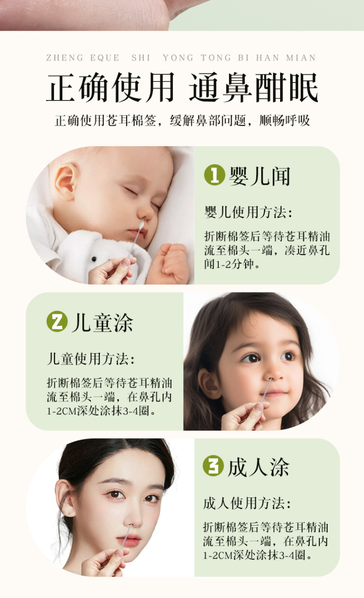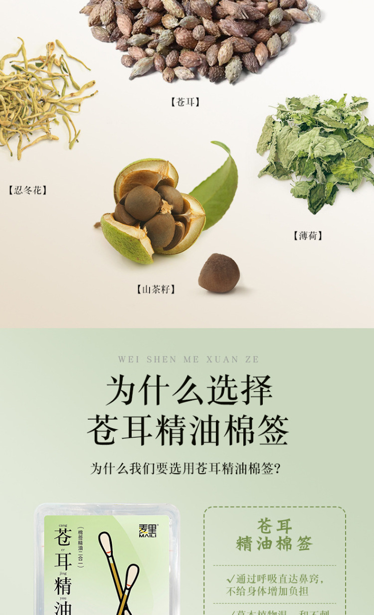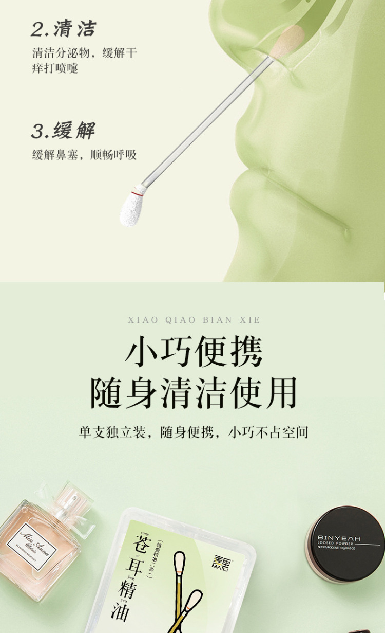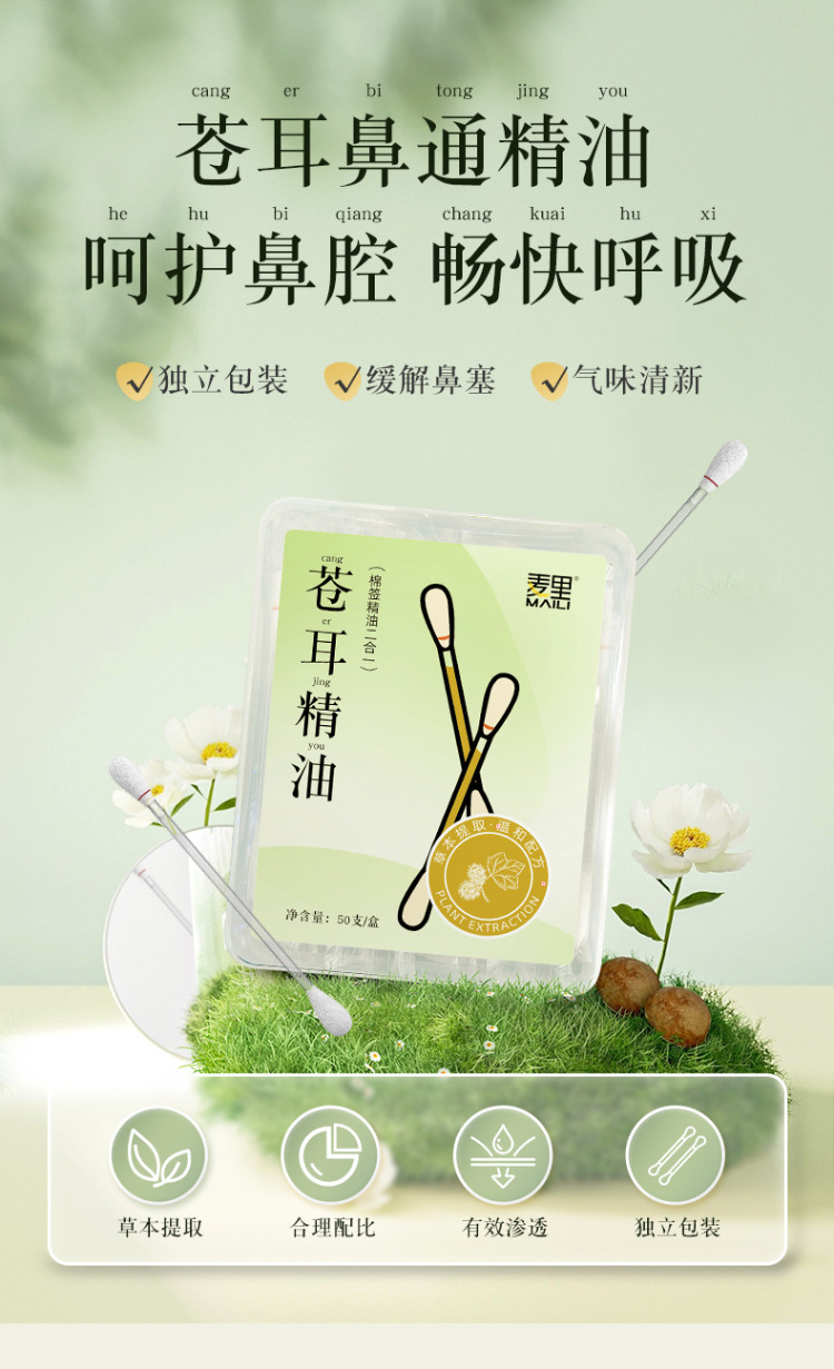 麦里 苍耳子精油棉棒鼻油鼻通精油棉签独立包装便携装儿童鼻腔舒缓棉签 24支/盒