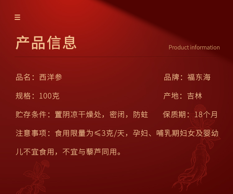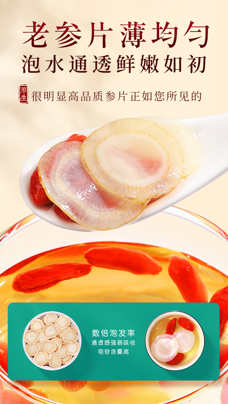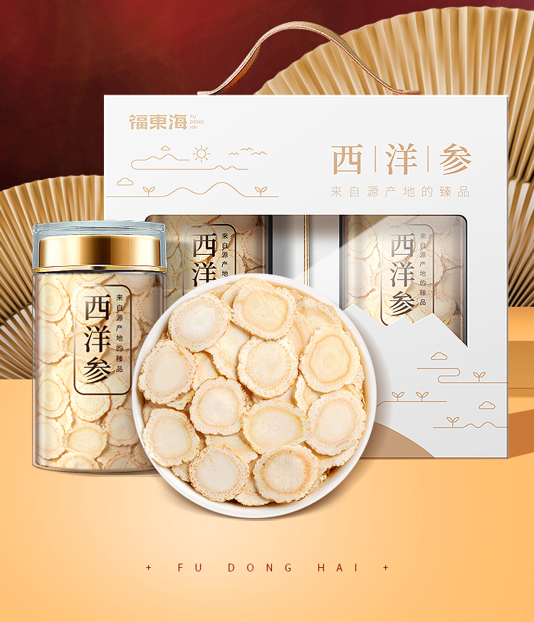 福东海 西洋参切片100克(50*2)1.2cm-1.4cm大片 精挑无黑片花旗参含片 送礼佳品